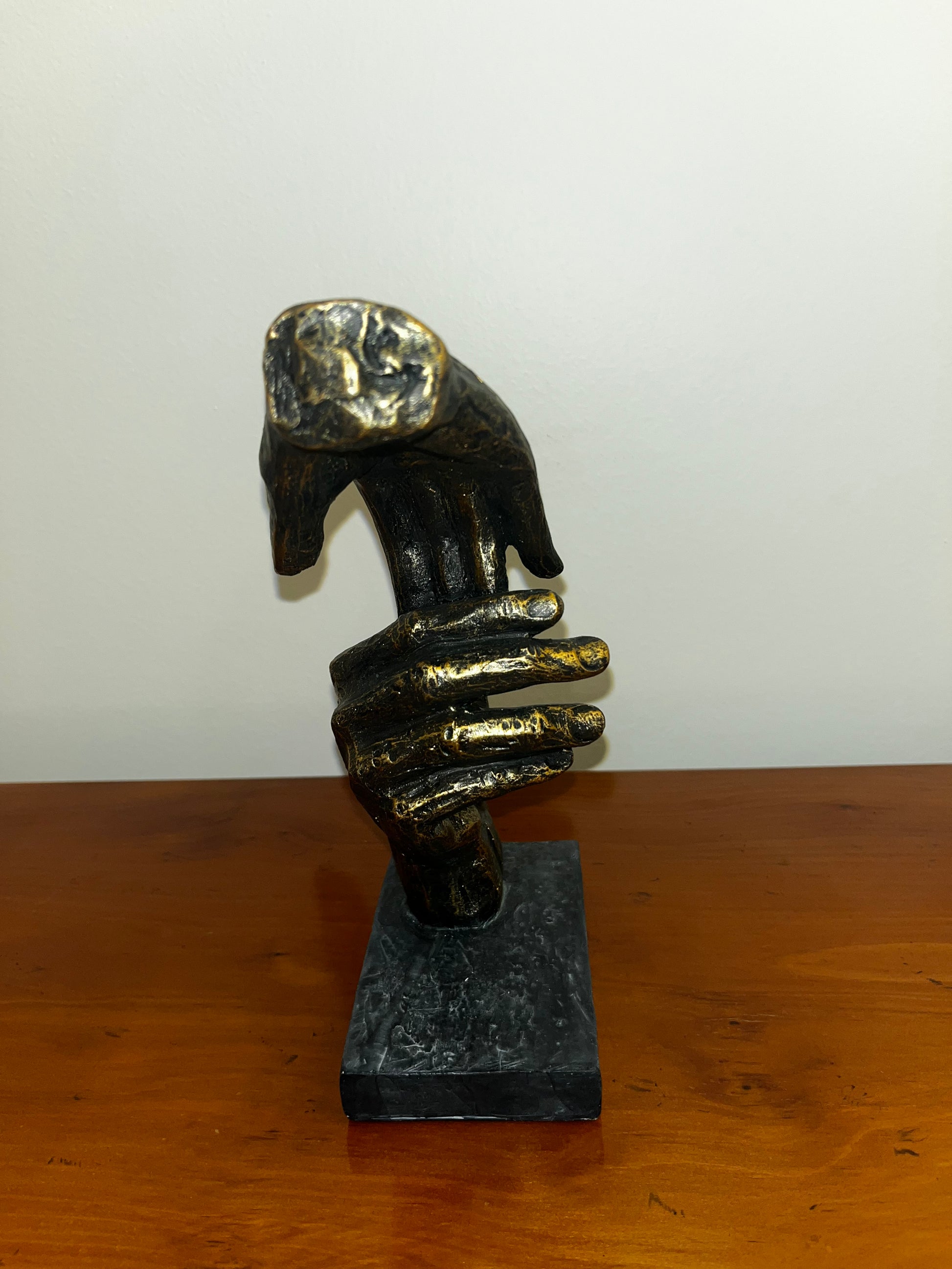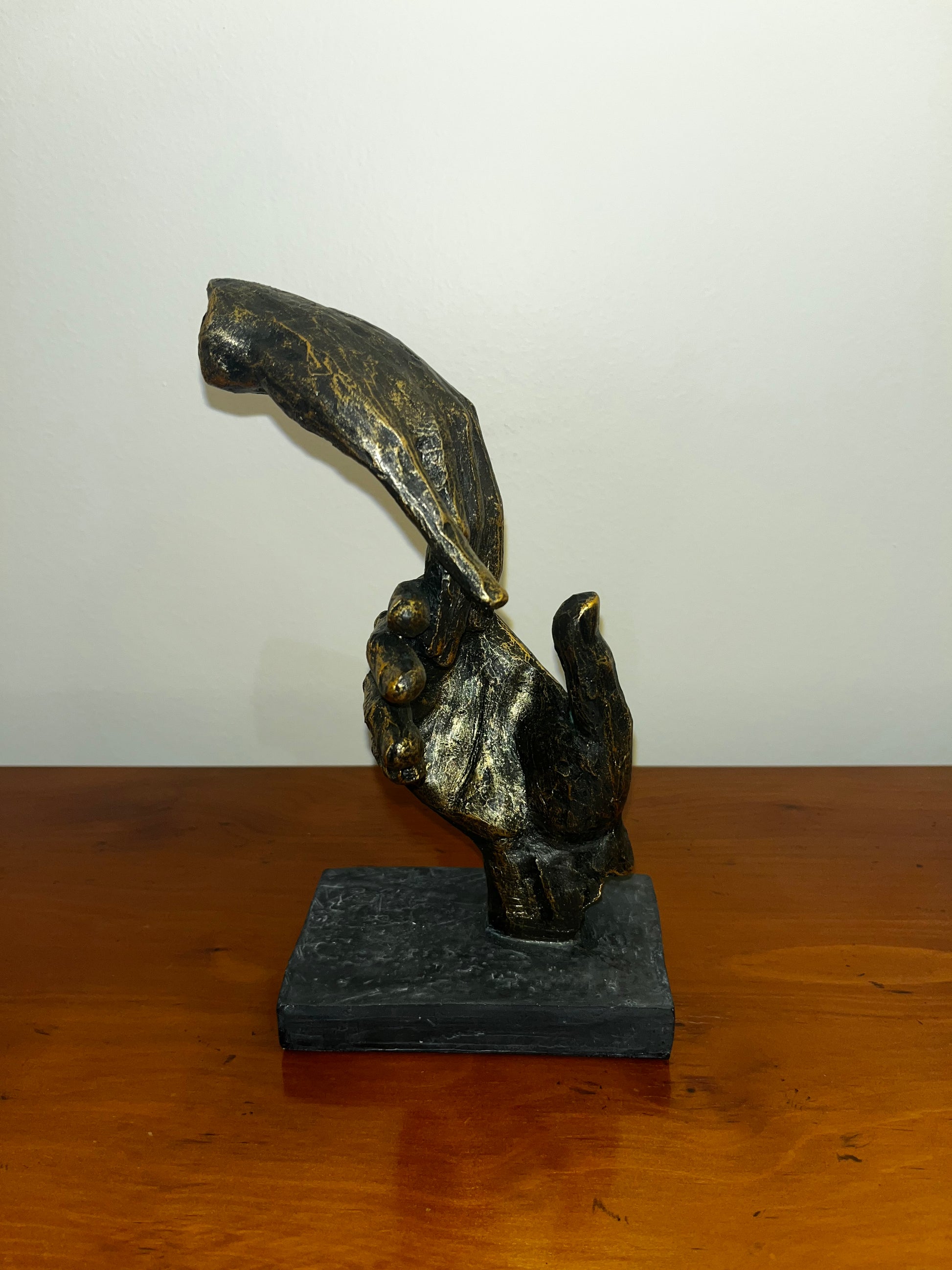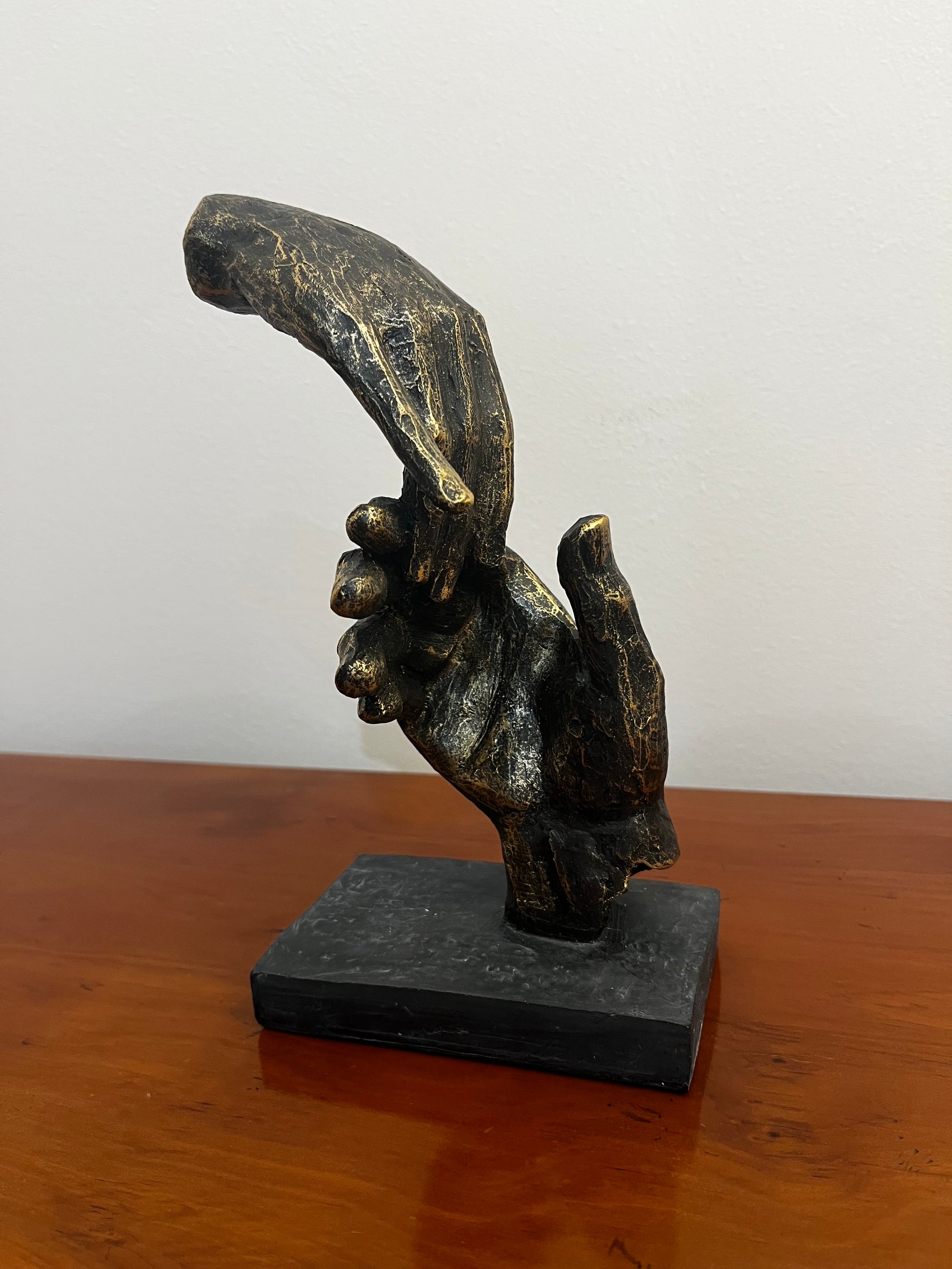 La sculpture "Deux mains" en résine de couleur bronze est un véritable accroche-regard pour tout intérieur. Avec des dimensions de 7 cm x 13 cm x 21 cm et la forme de deux mains, il s'intègre parfaitement dans différents concepts d'espace. La couleur d'accent gris donne à la sculpture une touche particulière et en fait une pièce décorative unique. Que ce soit dans le salon, la chambre ou le bureau, la sculpture met partout des accents élégants. La finition de qualité supérieure et le design détaillé en font un point fort dans n'importe quelle pièce. Offrez-vous ou faites plaisir à vos proches cette œuvre d'art unique et apportez une touche d'élégance à votre intérieur.