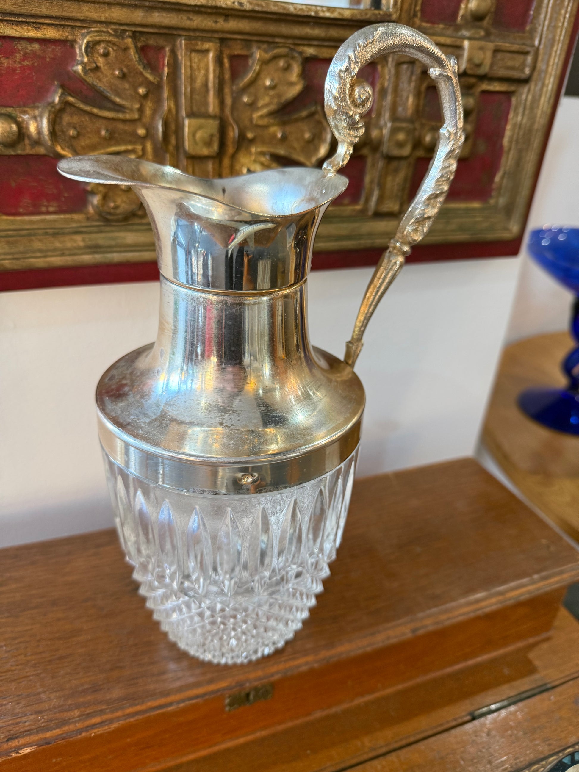 Aiguière en Cristal Taillé & Monture Métal Argenté – Travail Vintage
