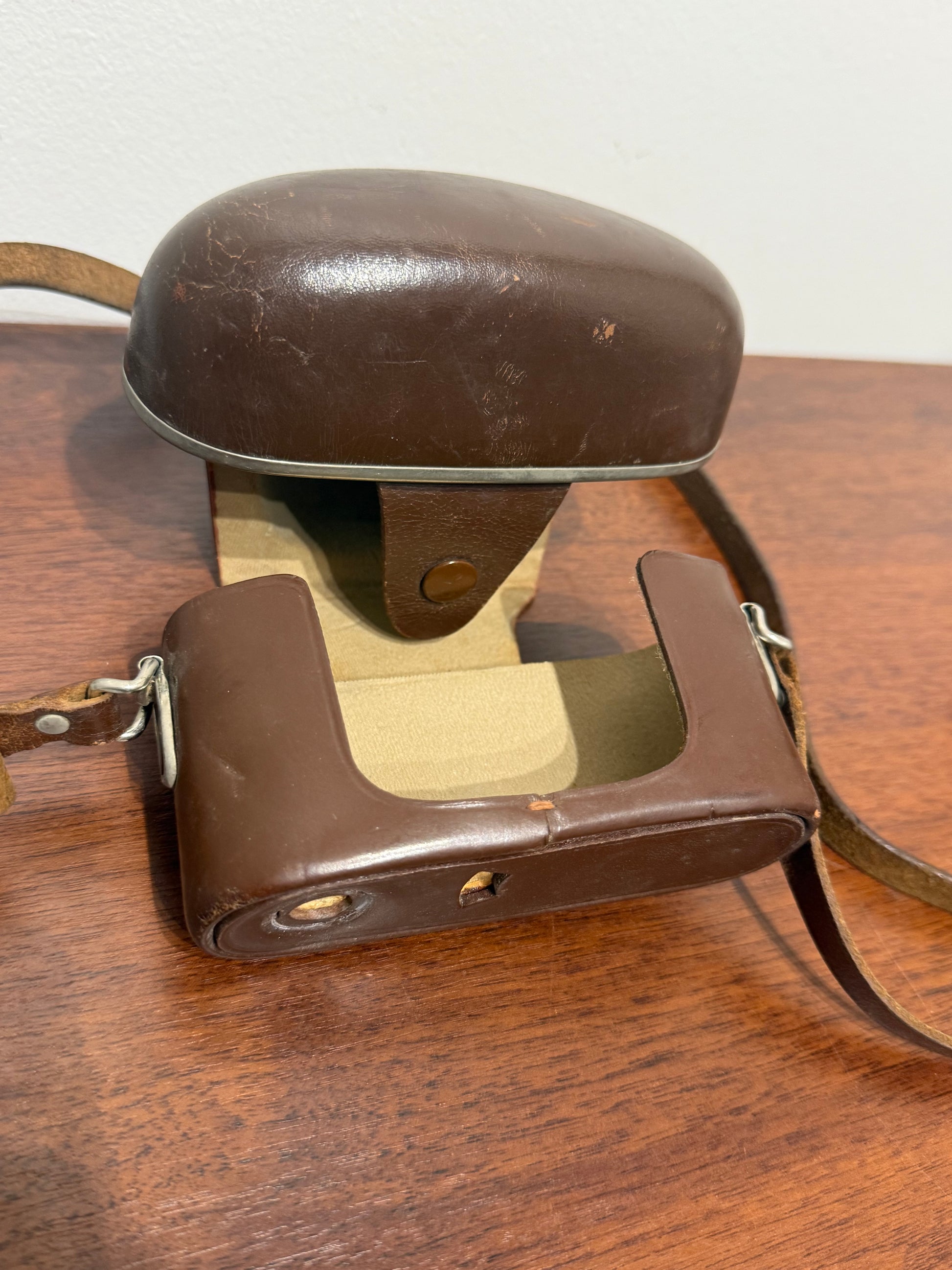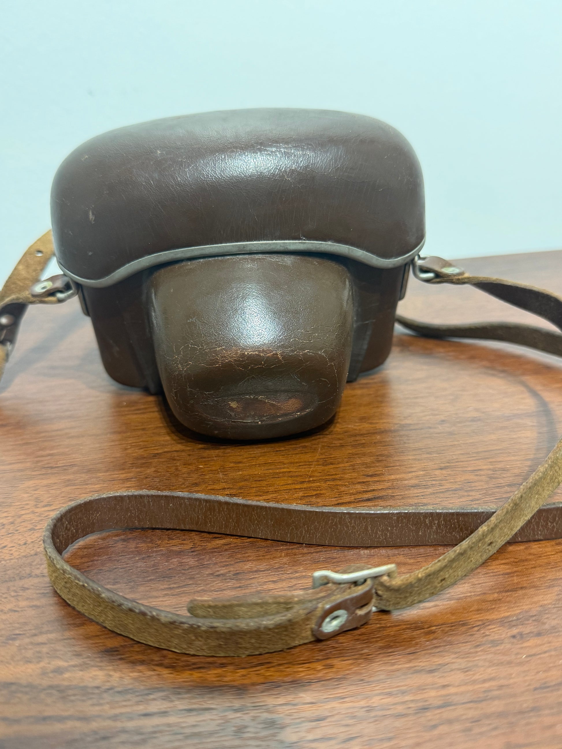 L’appareil est en bon état esthétique et fonctionnel. Il est accompagné de son étui en cuir d’origine avec la mention “Germany”, offrant une protection optimale lors du transport.
