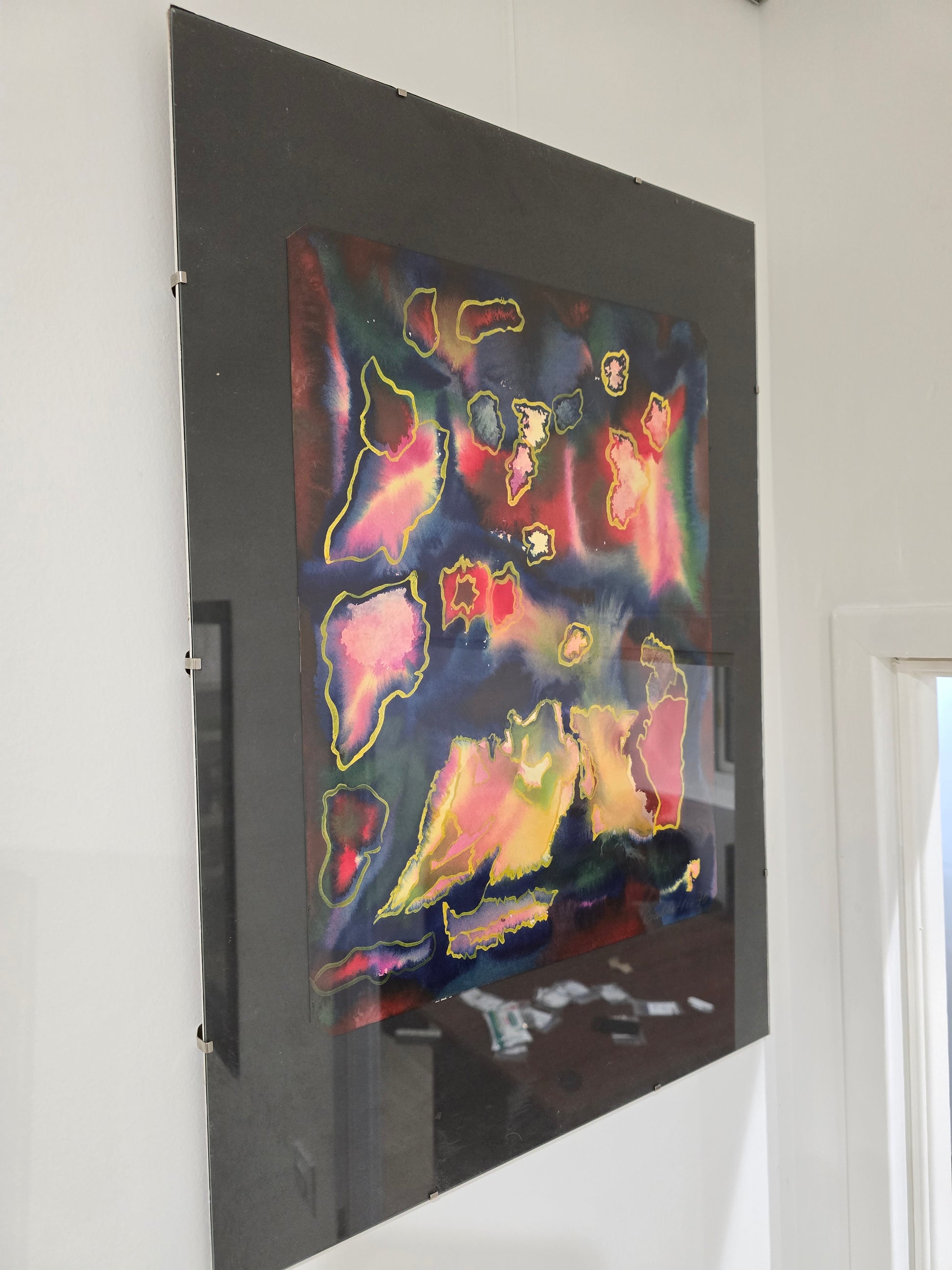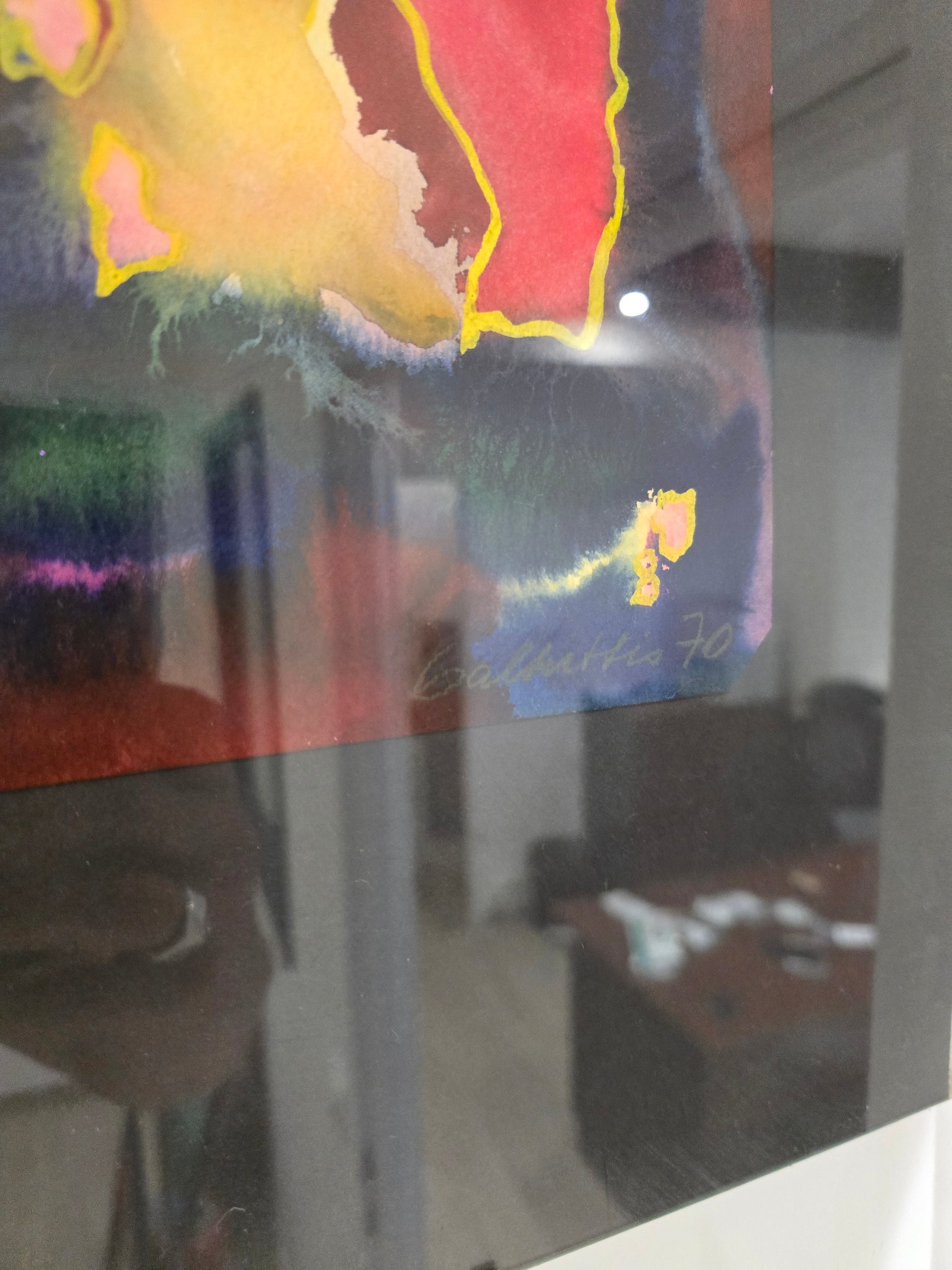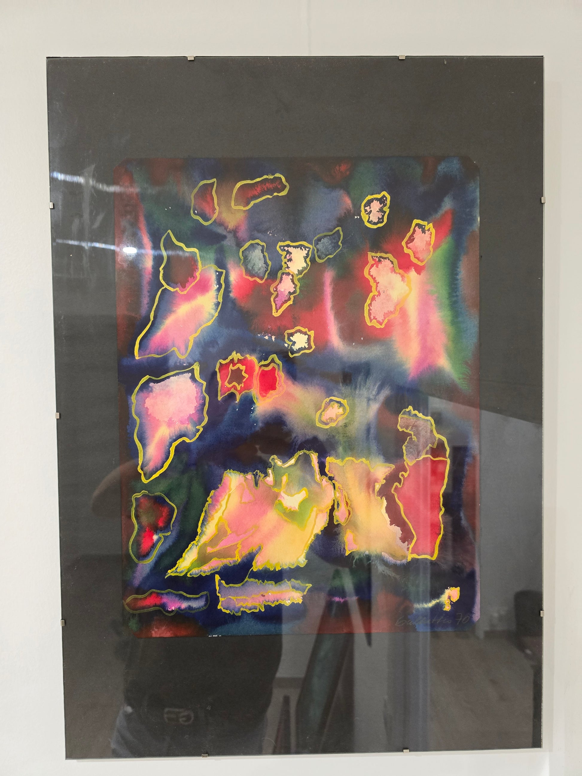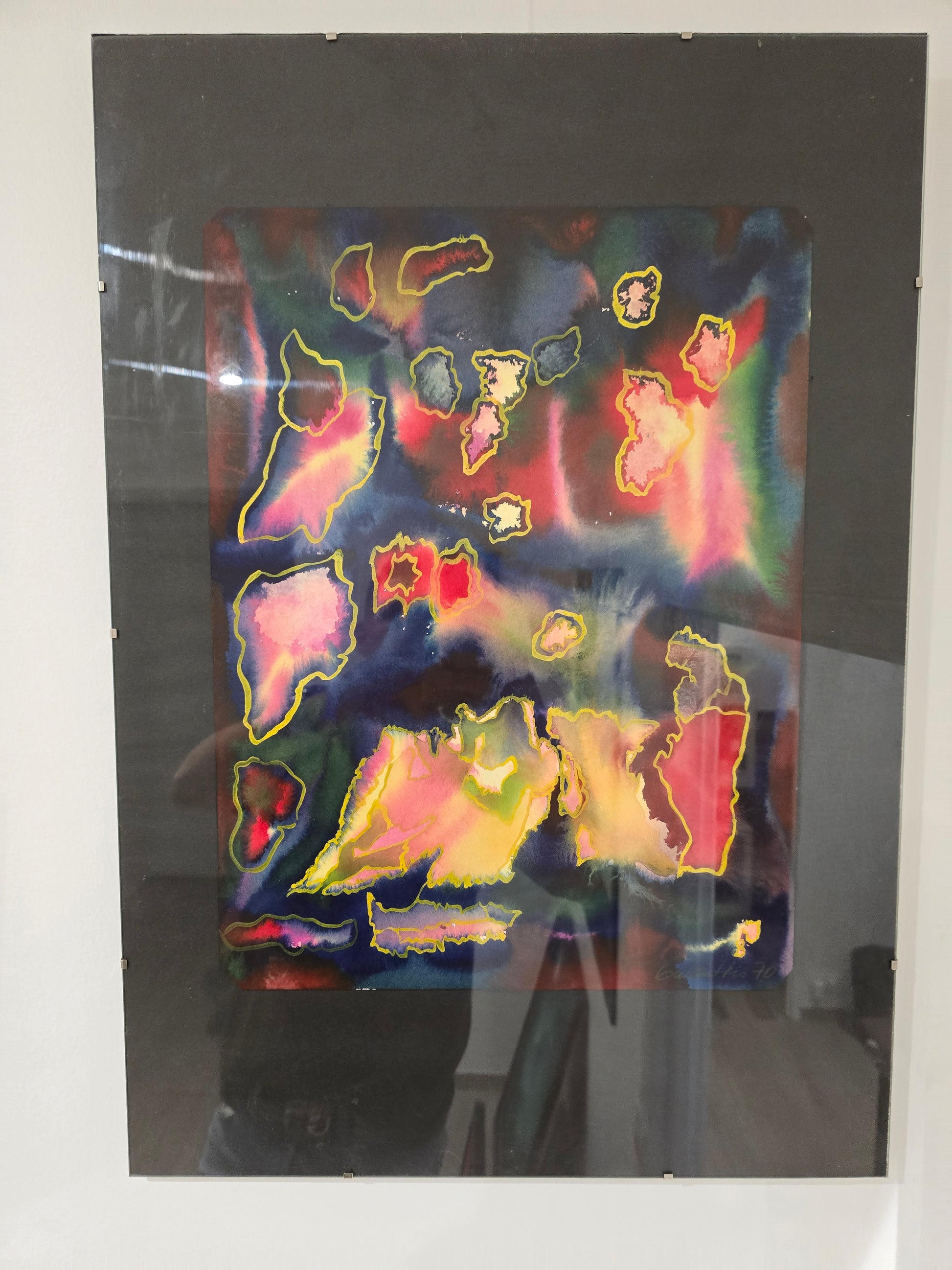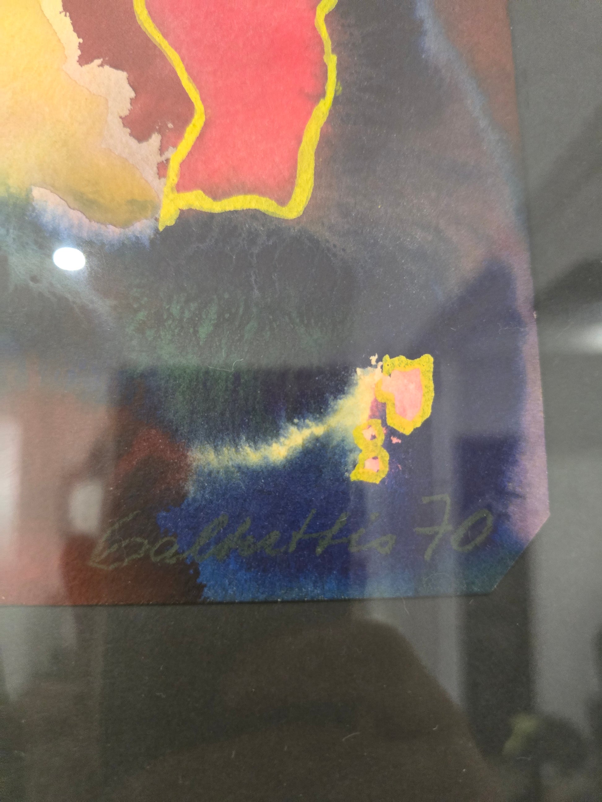 Profitez des couleurs vibrantes et de l'art abstrait avec l'aquarelle Balbuttis des années 70.