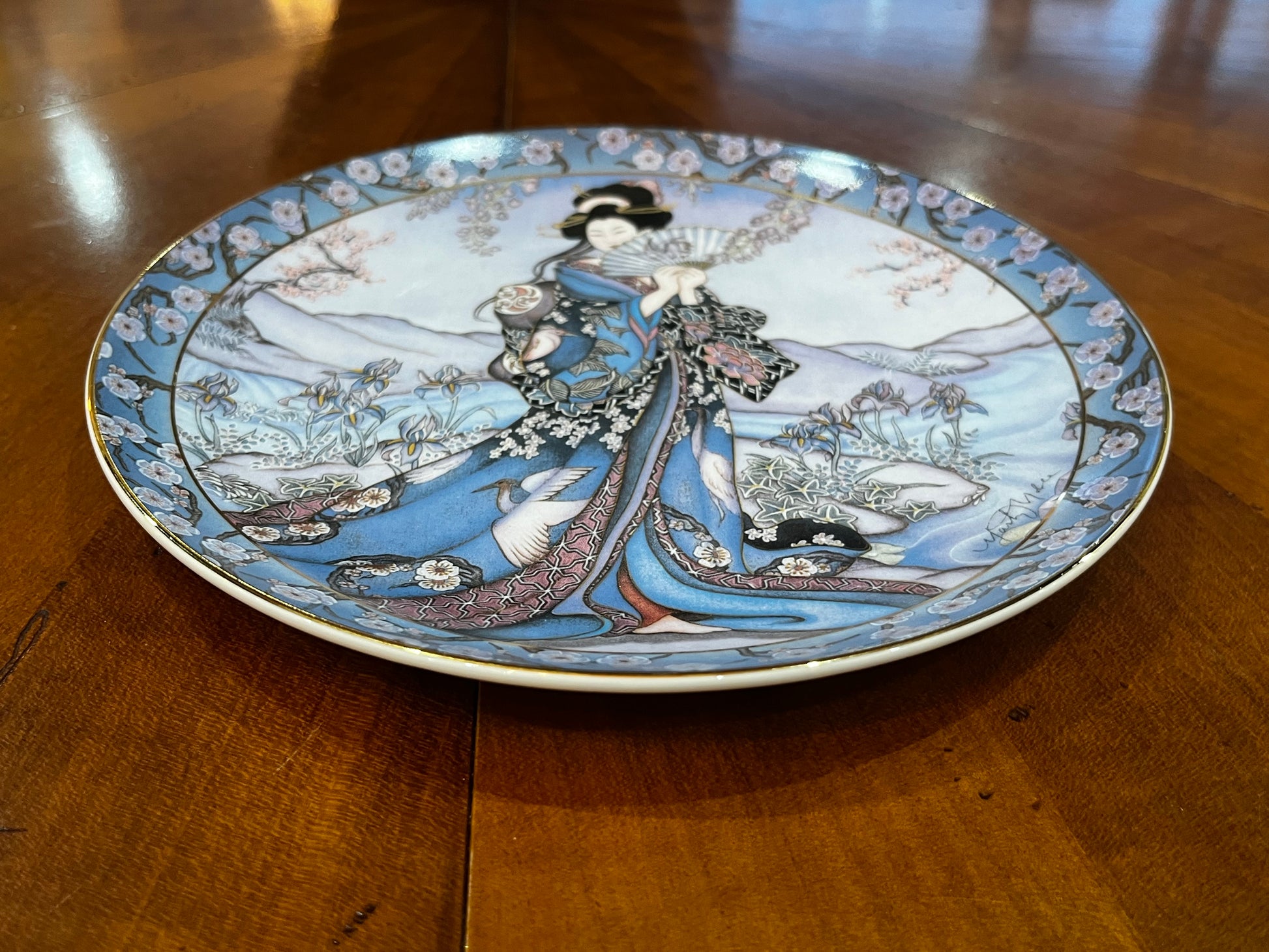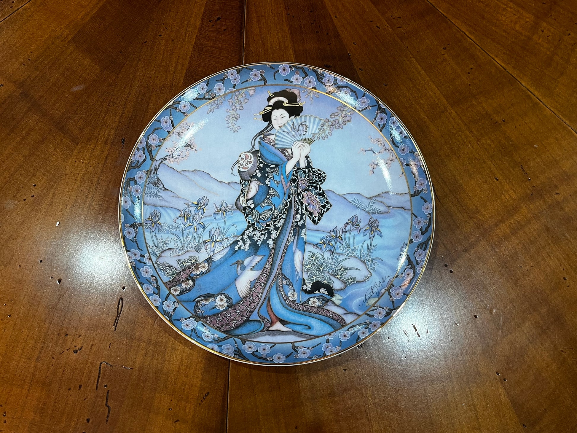 Cette assiette décorative vintage en porcelaine fine « Princess of the iris » est une édition limitée créée par Daphne Baxter. Fabriquée en porcelaine fine, elle ajoute une touche d'élégance et de sophistication à toute décoration intérieure. Les motifs d'iris délicats représentent la beauté et la finesse de cette œuvre d'art en édition limitée.
