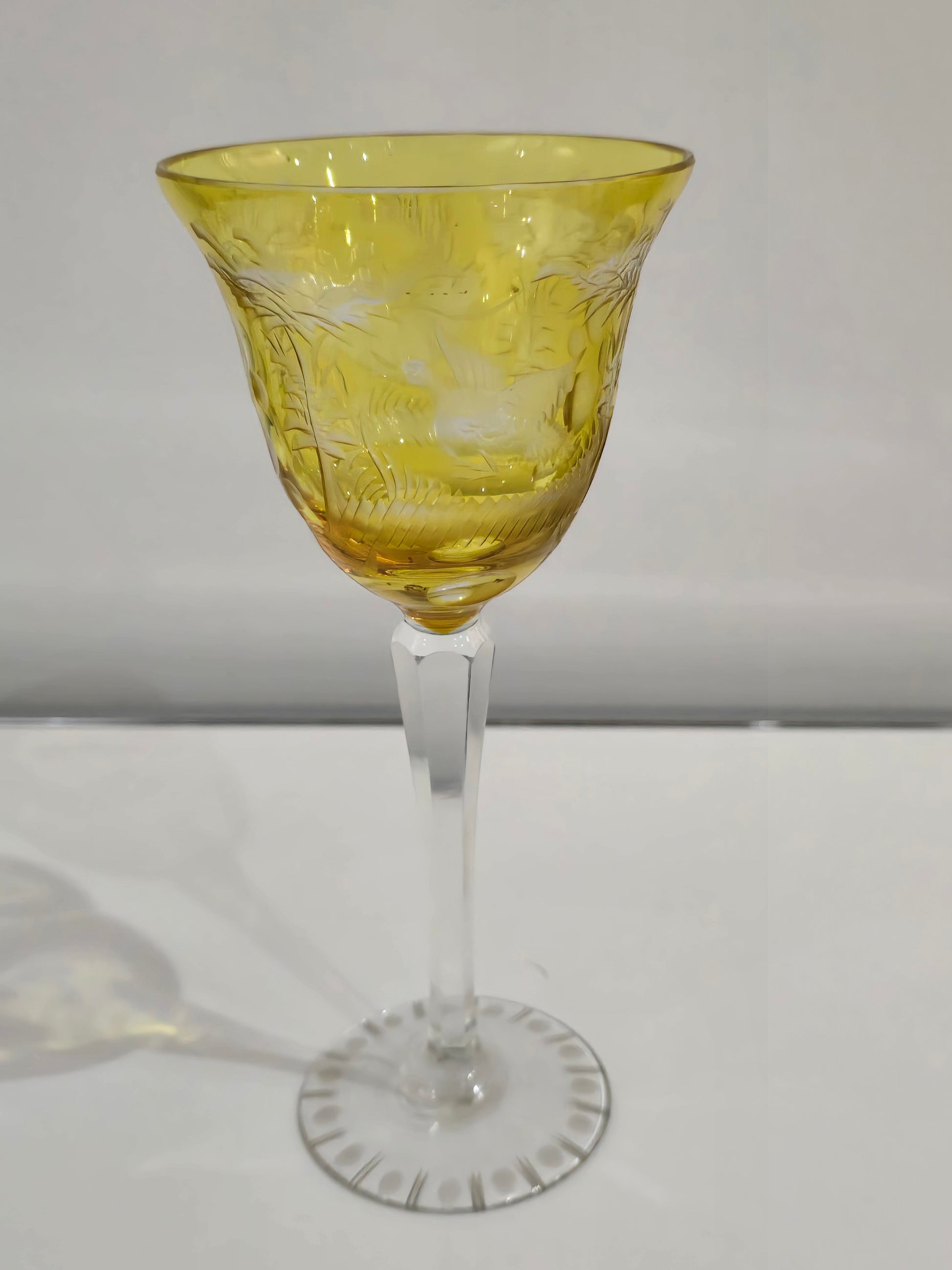Carafe en cristal de bohème bleuté verre déglacer à l’acide décore forêt