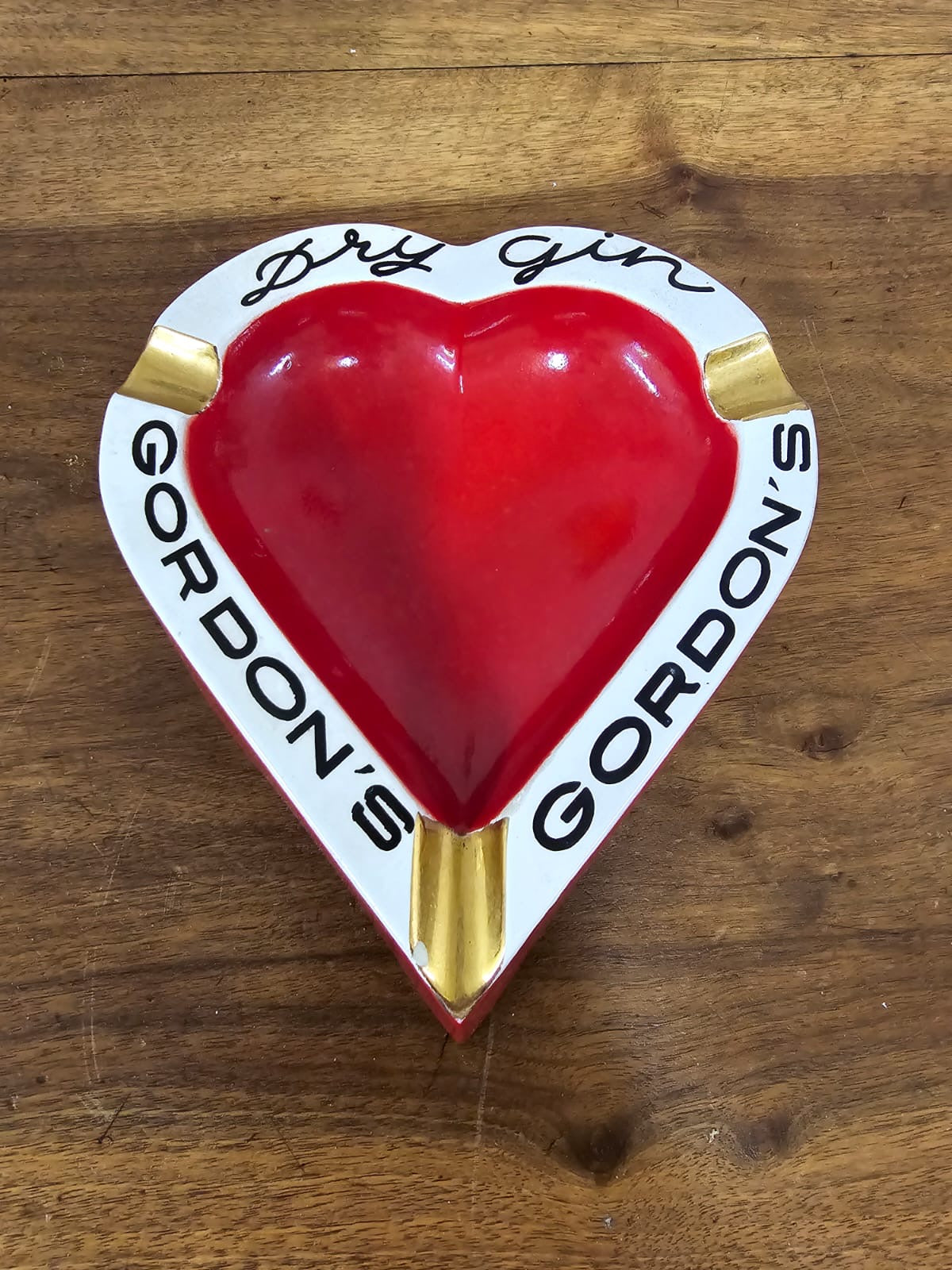 Ce cendrier publicitaire Dry Gin Gordon's est un objet de collection vintage en céramique provenant du Moulin des loups en France. Produit promotionnel de spiritueux dans les années 1950 à 1970, il offre un aperçu historique de l'industrie de l'alcool. Ajoutez-le à votre collection pour une touche d'élégance rétro.