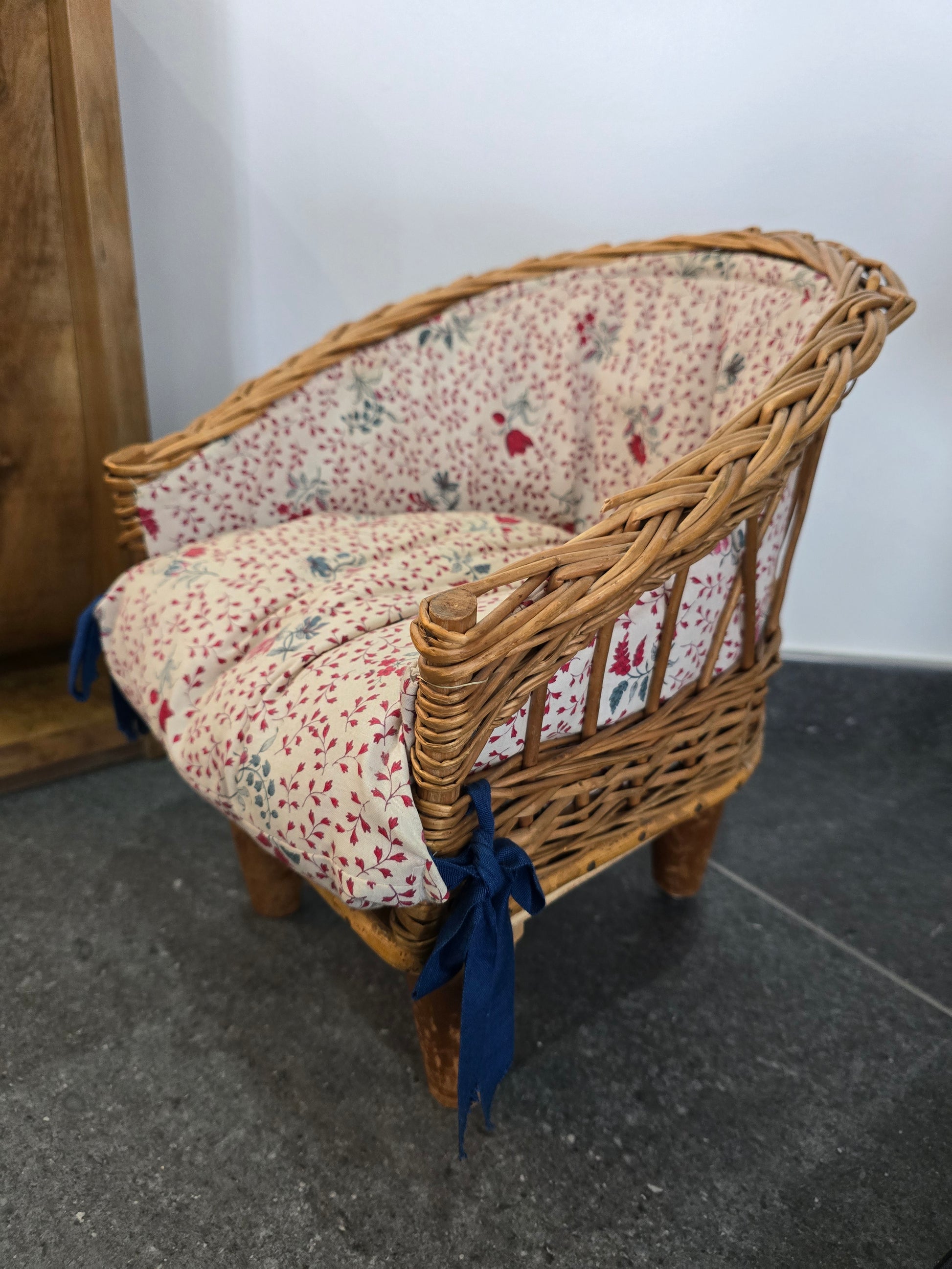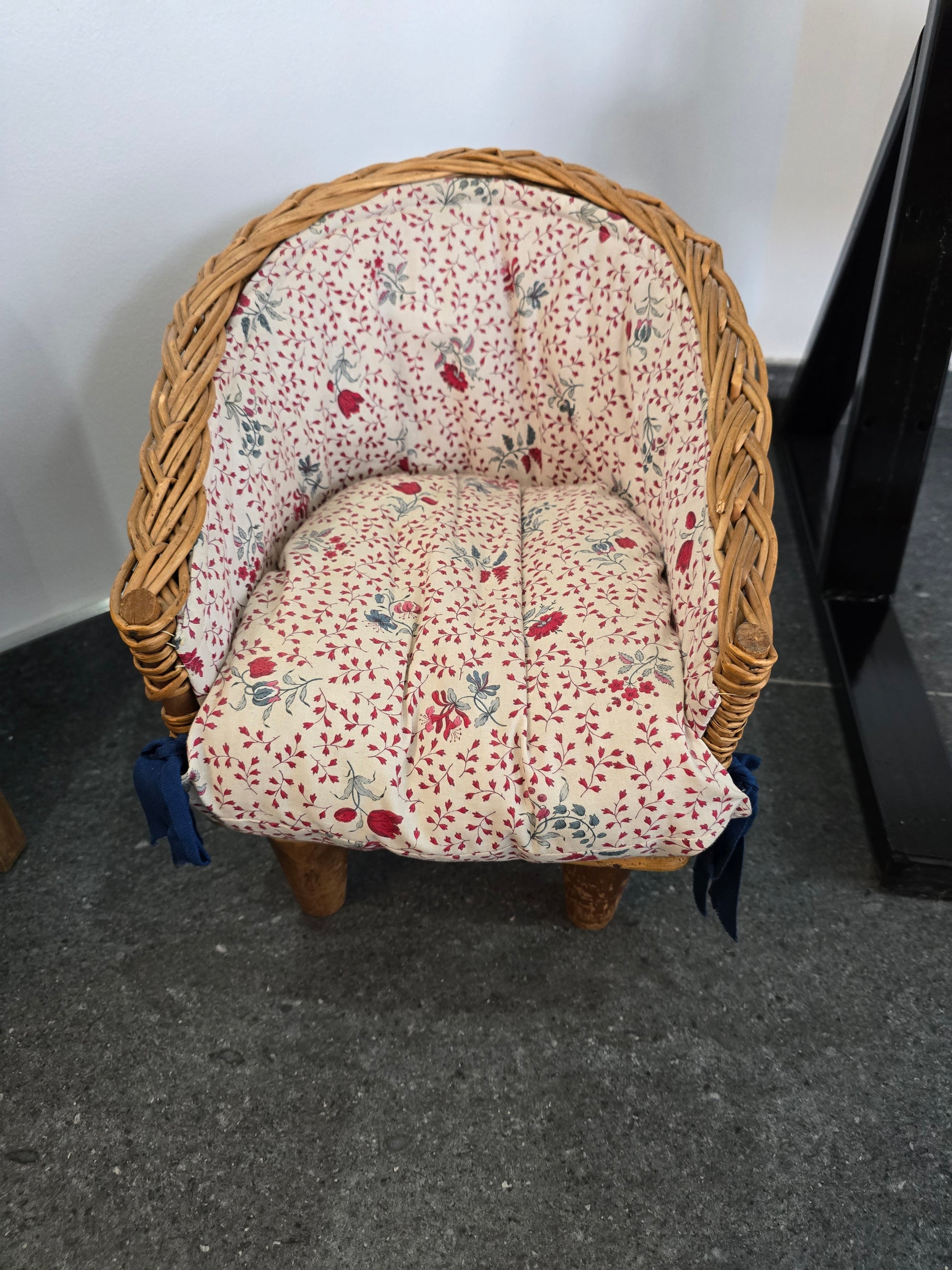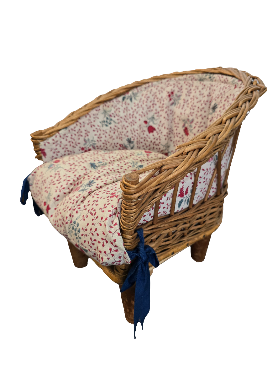 Ajoutez une touche de charme à la maison de votre poupée avec cette chaise en osier! Le fauteuil en osier est parfait pour les poupées de taille moyenne (environ 30-40 cm) et peut être utilisé pour créer un espace de détente ou un coin lecture. Offrez à votre poupée un lieu confortable pour se détendre et se reposer dans cette chaise originale.