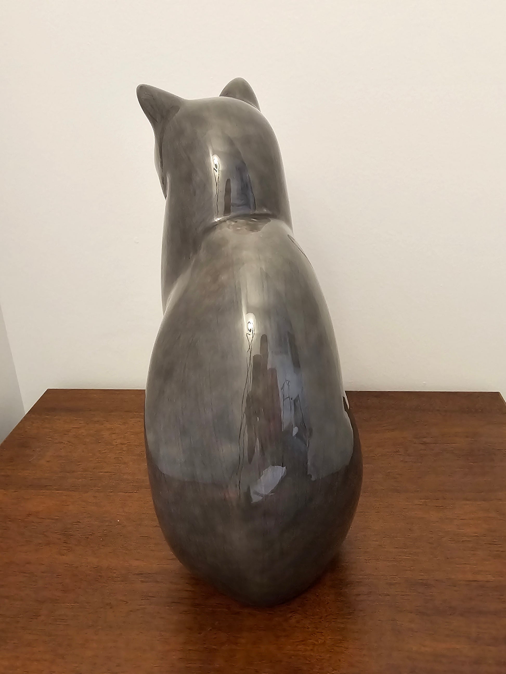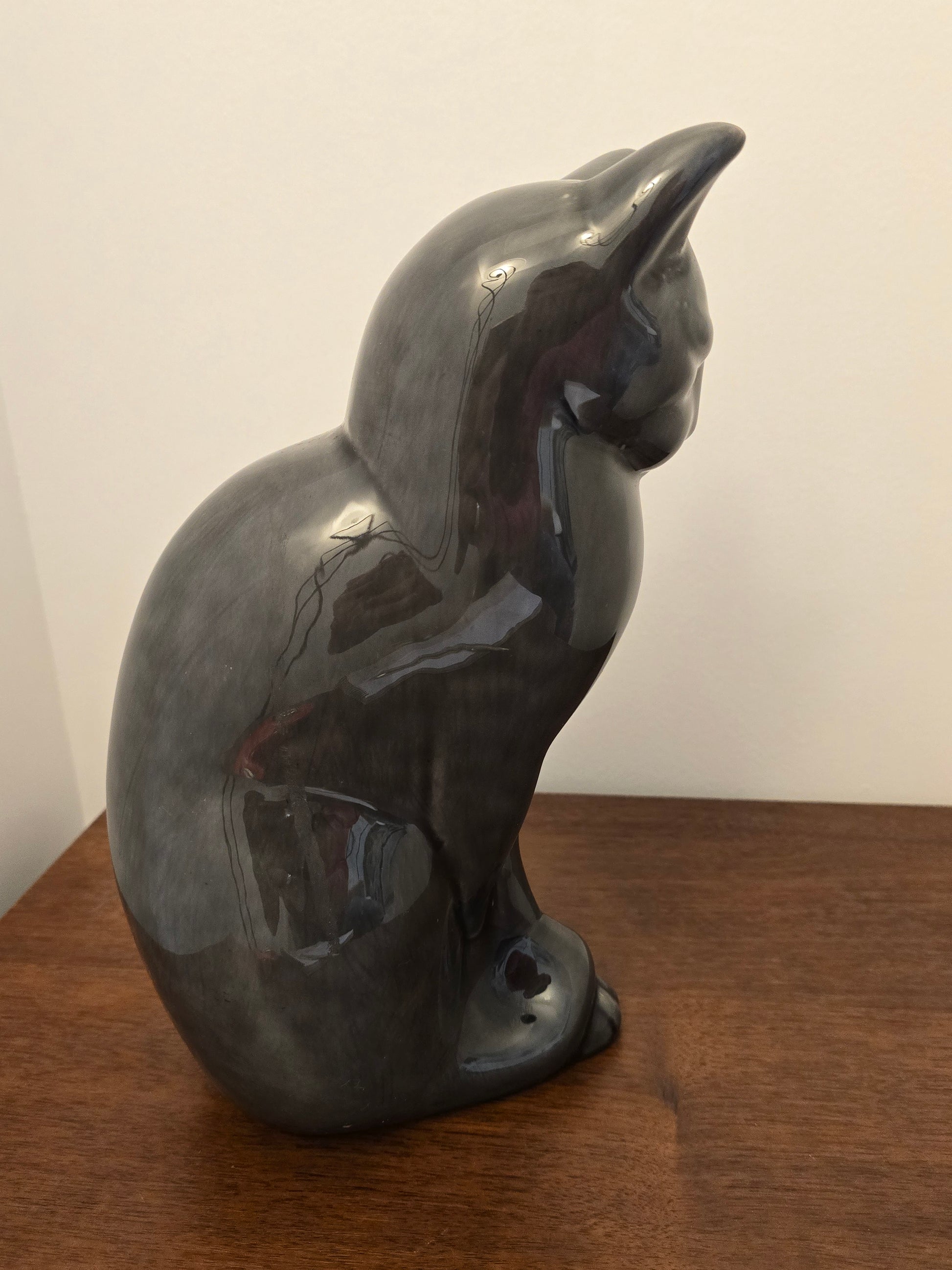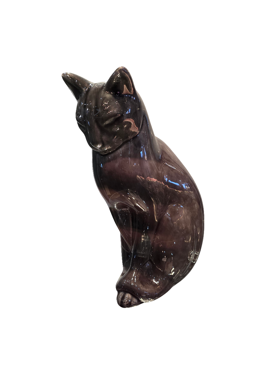Superbe chat en céramique de couleur grise vernis , conçue fin des années 70 par francise migeon (1927-2017) maître d’art , issu d’une grande ligné de sculpteur d’ivoir reconnue, Mr migeon vien casser les code familial avec cette sculpture comptemporaine, sortant des scène religieuse, il créa une première piece de ce chat (sphinx) en ivoir, puis garda le moule pour pouvoir animé cette somptueuse sculpture en céramique.