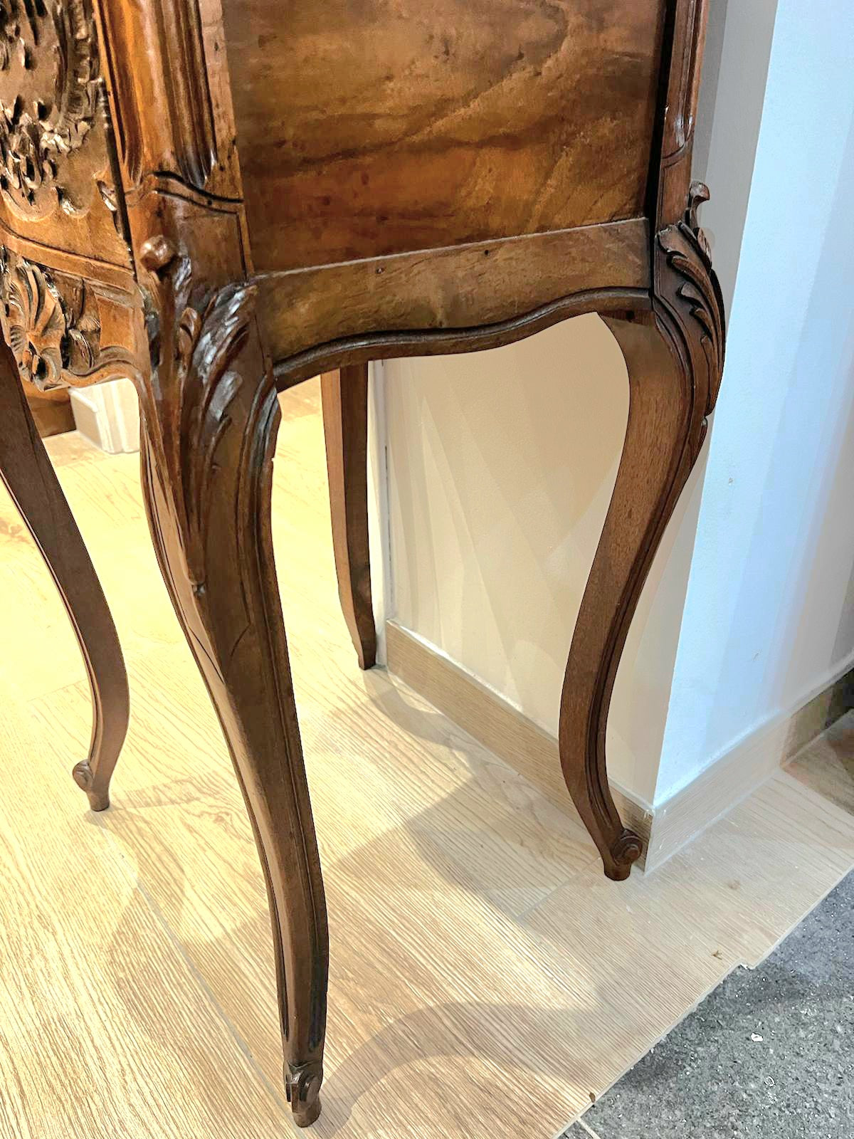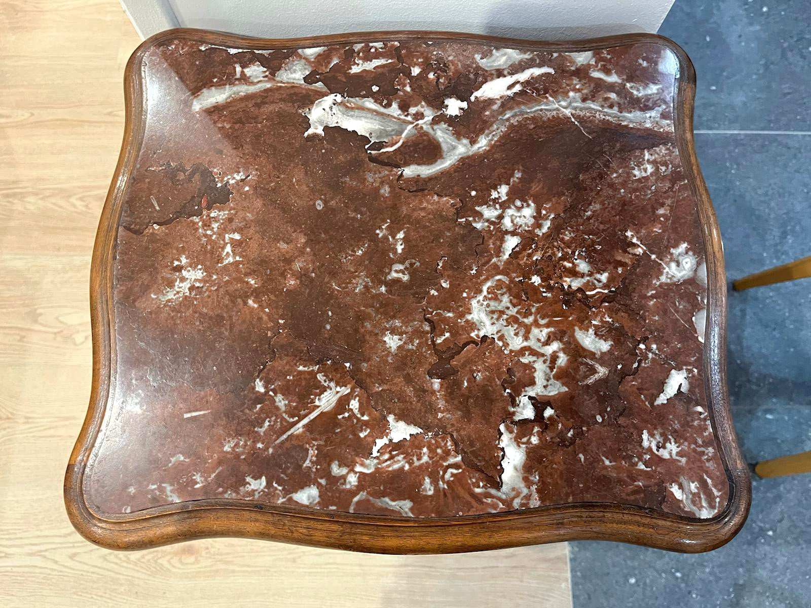 Ce superbe chevet en noyer sculpté de style Louis XV est un véritable bijou pour votre chambre à coucher. Avec son plateau en marbre rouge et son intérieur en céramique, il ajoutera une touche de sophistication à votre décoration. Conçu avec un savoir-faire minutieux, ce meuble élégant apportera à la fois beauté et praticité à votre espace de couchage.