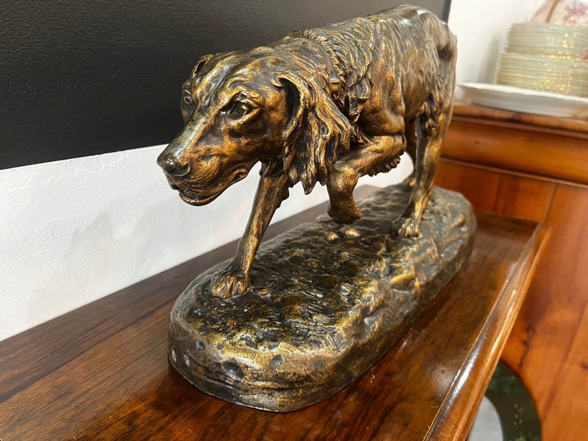 Chien de chasse à l’arrêt - signé Clovis Edmond Masson (1838-1913) en Bronze