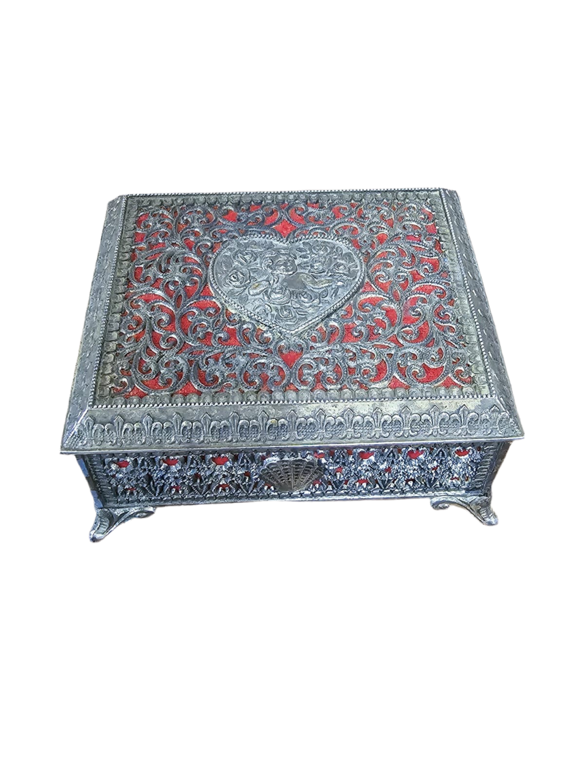 Ce coffre à bijoux vintage, fait en métal de haute qualité et doublé de feutre rouge, offre une protection optimale pour vos bijoux précieux. Le design rétro ajoute une touche d'élégance à votre décoration intérieure. Assurez-vous que vos bijoux sont en sécurité et bien organisés avec le coffre à bijoux.