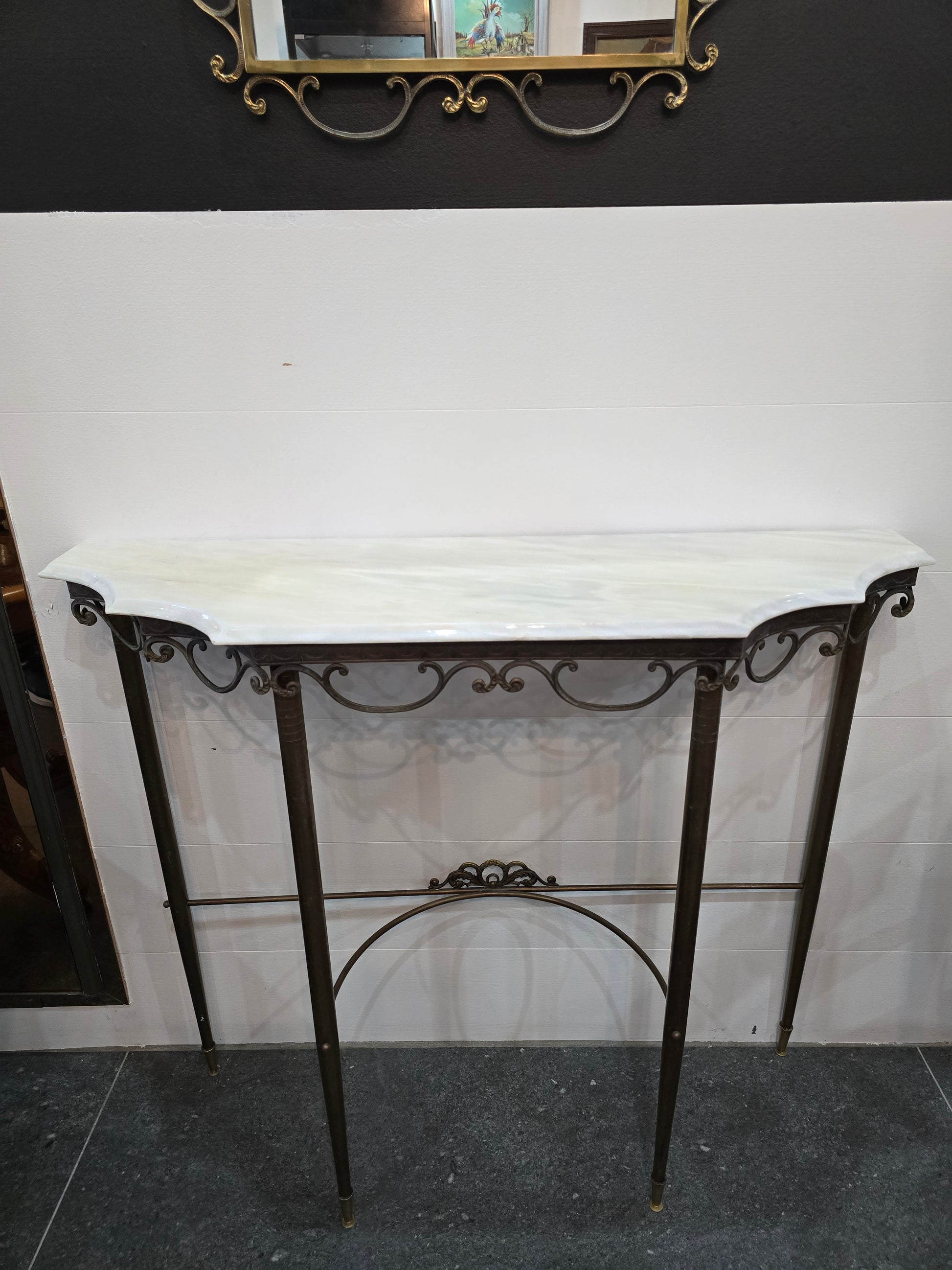Console en fer forgé et plateau marbre – Style Art Déco / Néoclassique