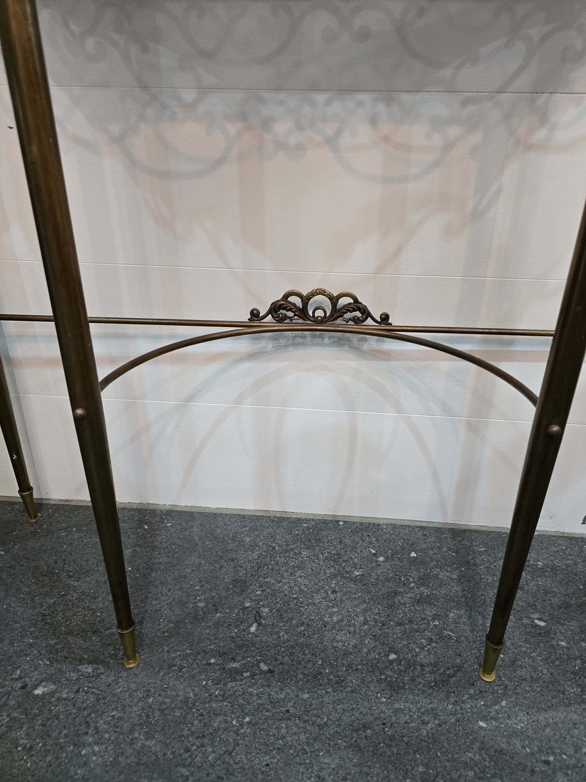 Élégante console murale en fer forgé, travaillée avec de belles volutes décoratives et détails en relief, typiques du style Art Déco à inspiration néoclassique.