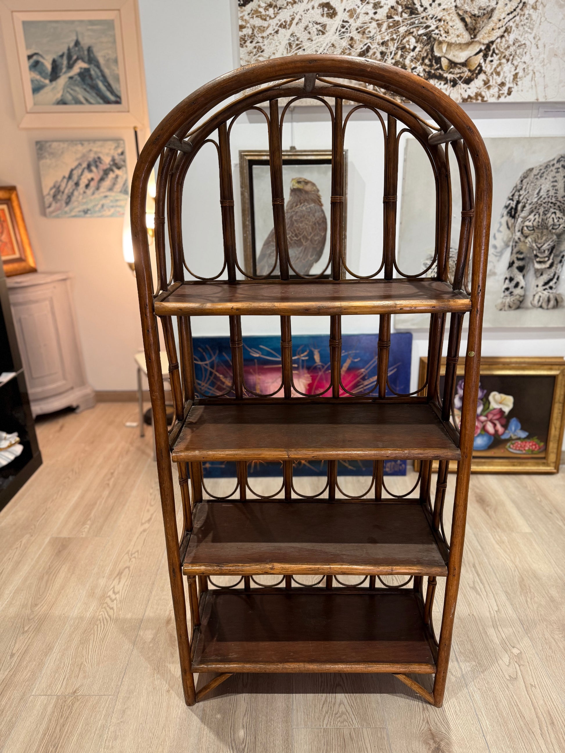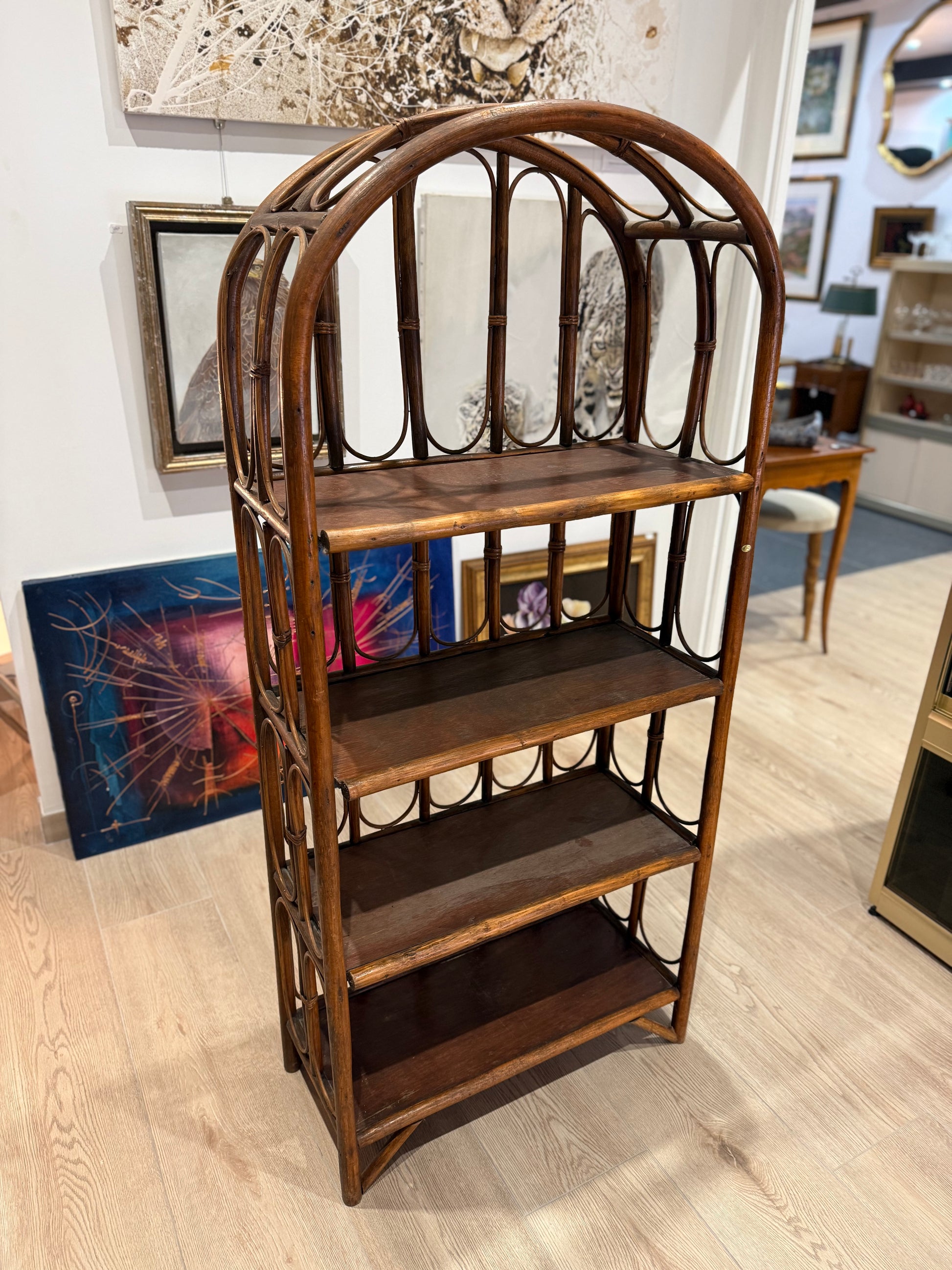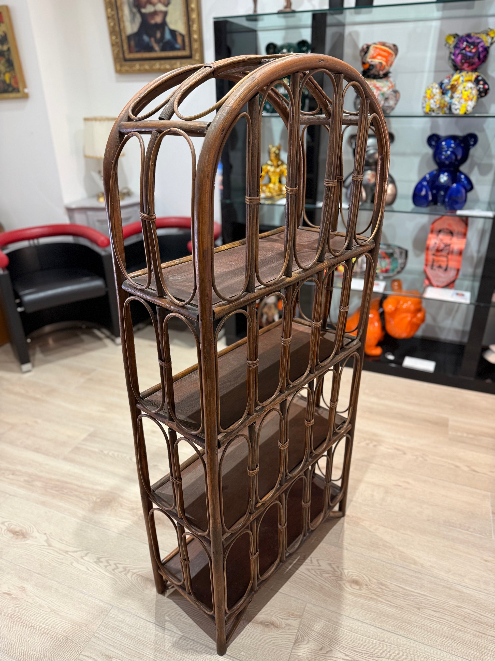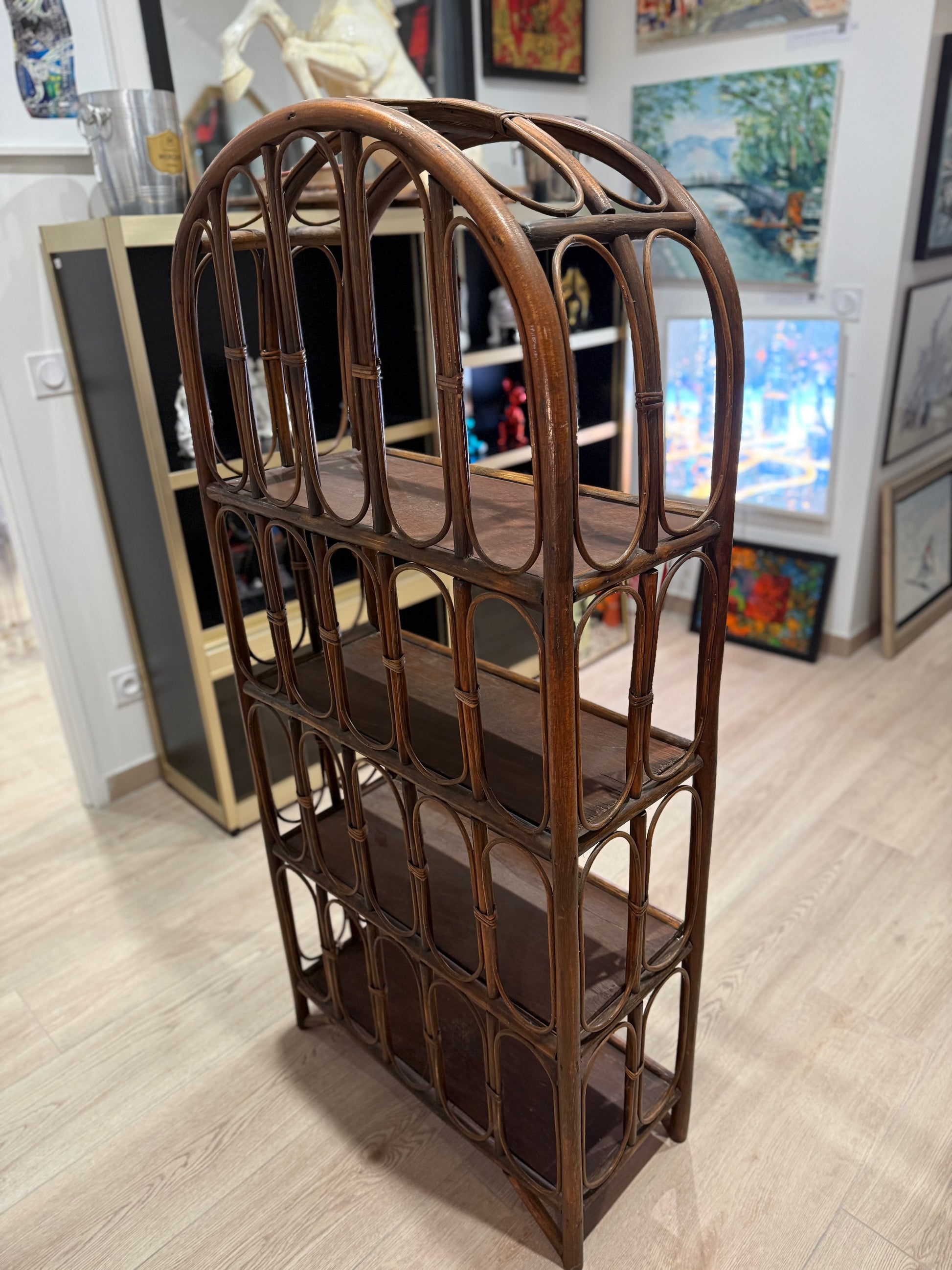 Charmante étagère vintage en rotin, au design arqué typique des années 70–80.