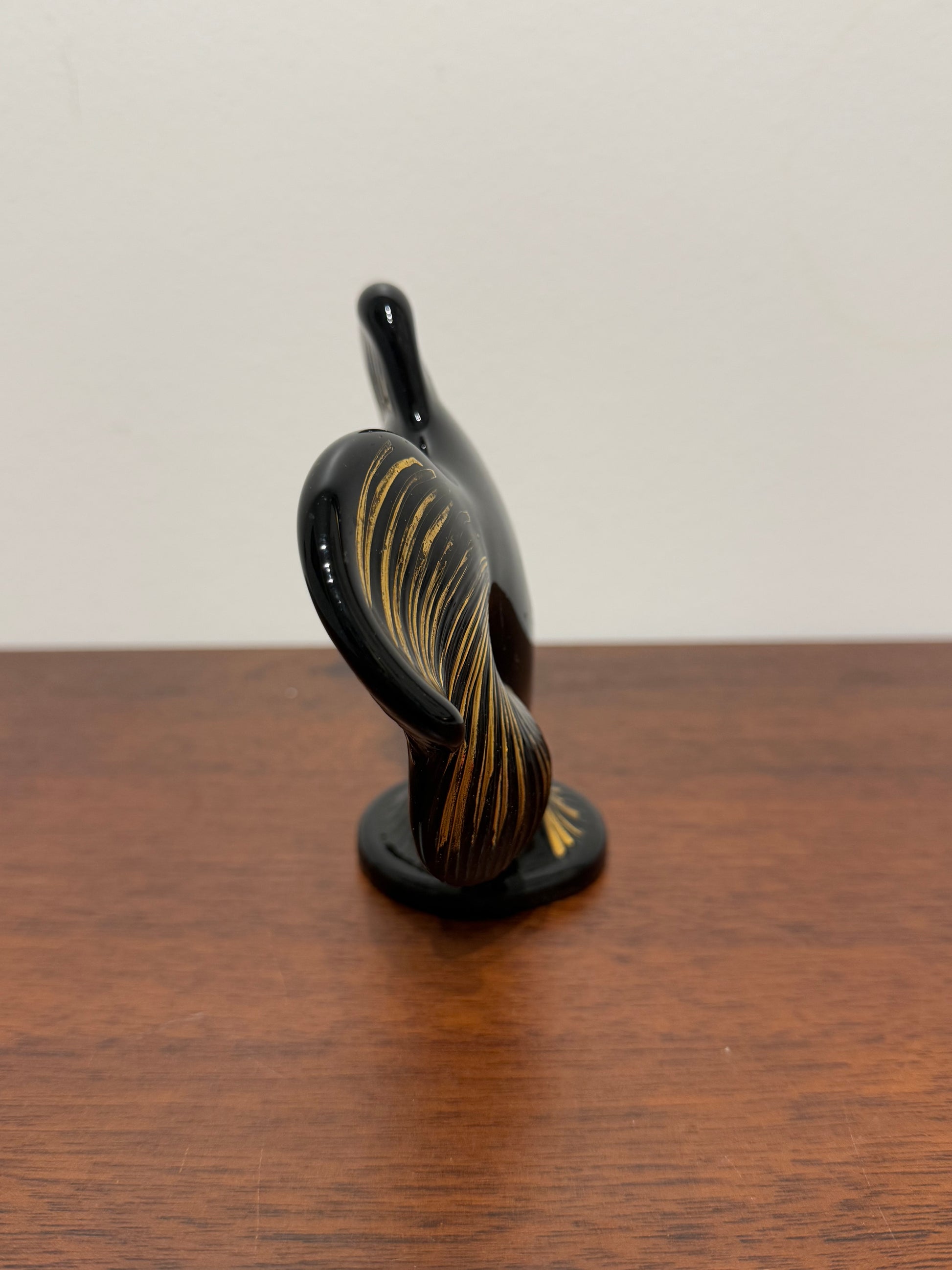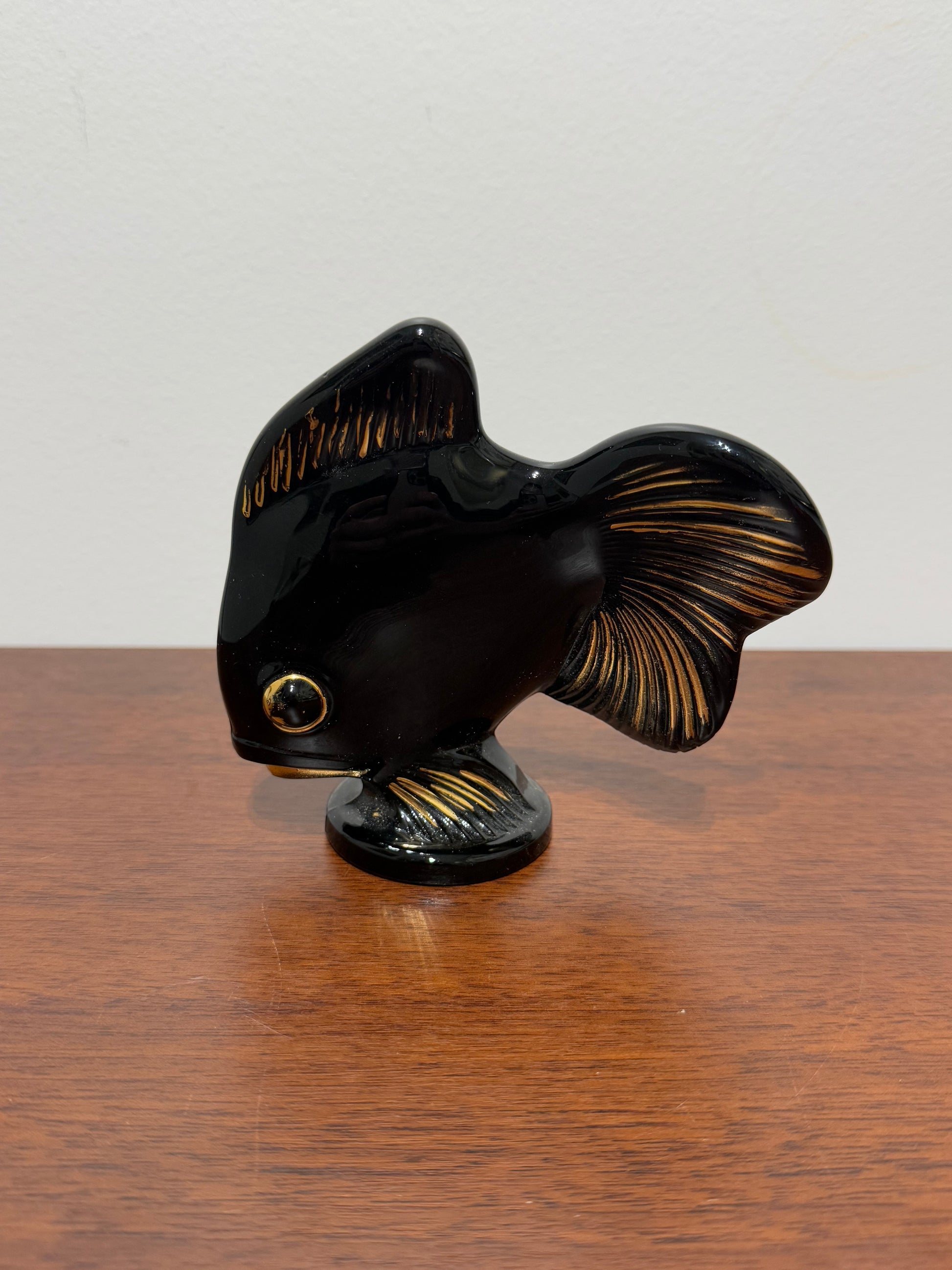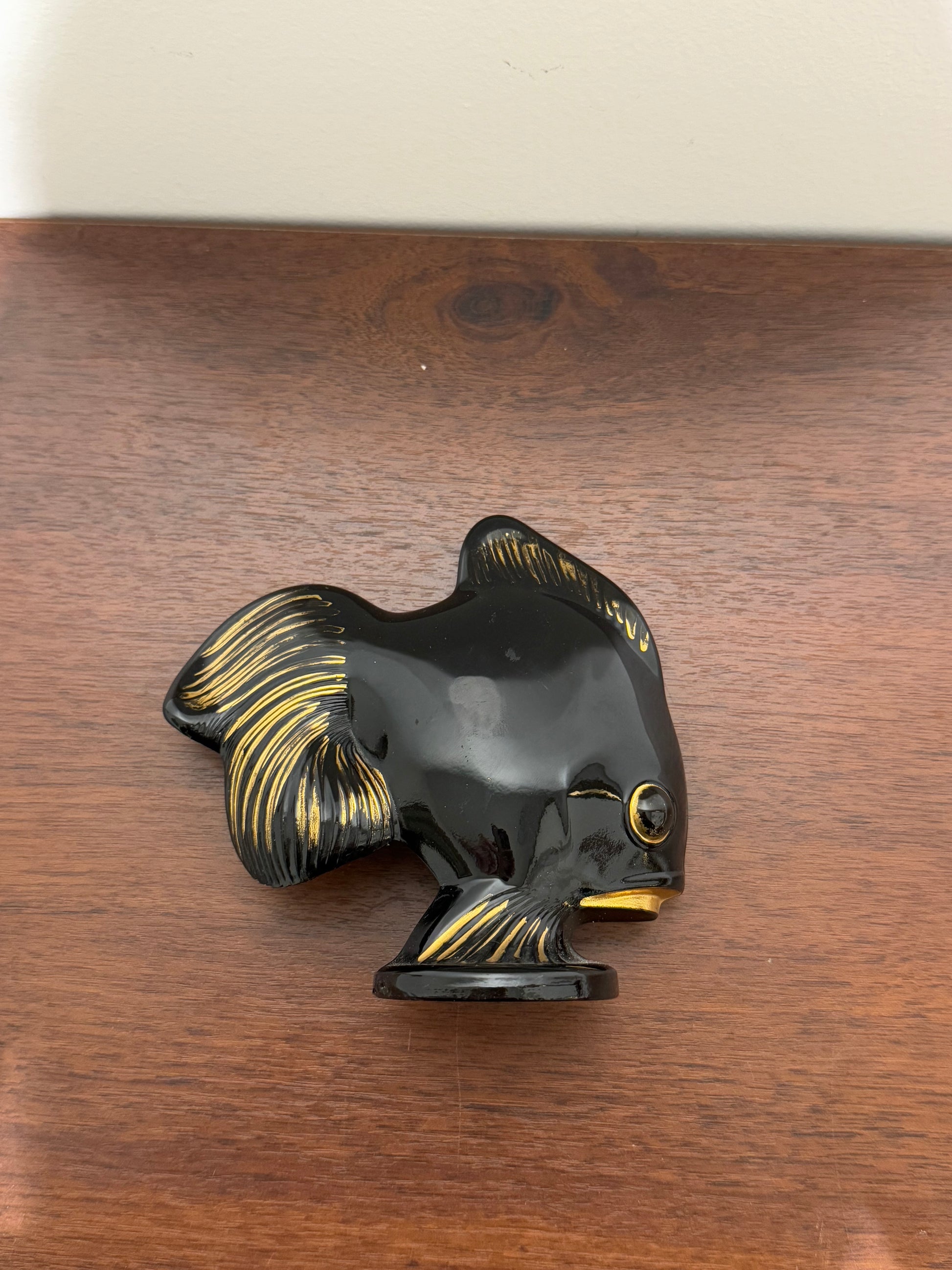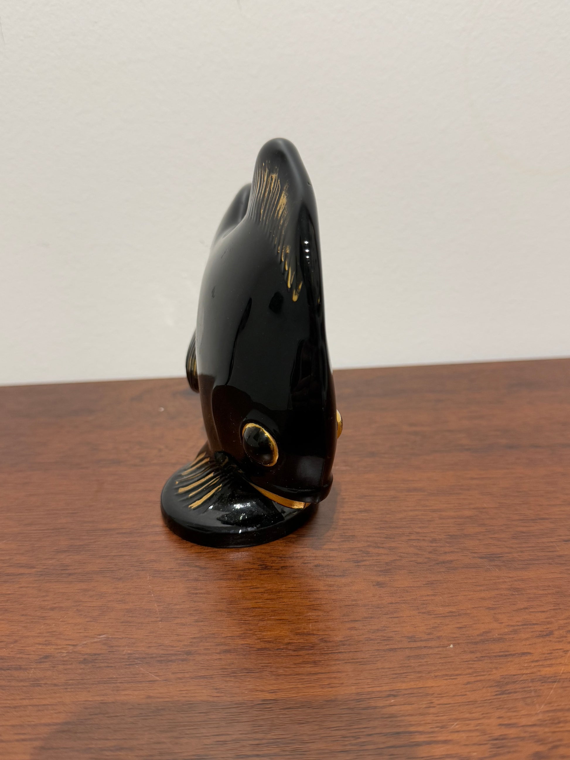 Figurine poisson en céramique noire et dorée - Style vintage