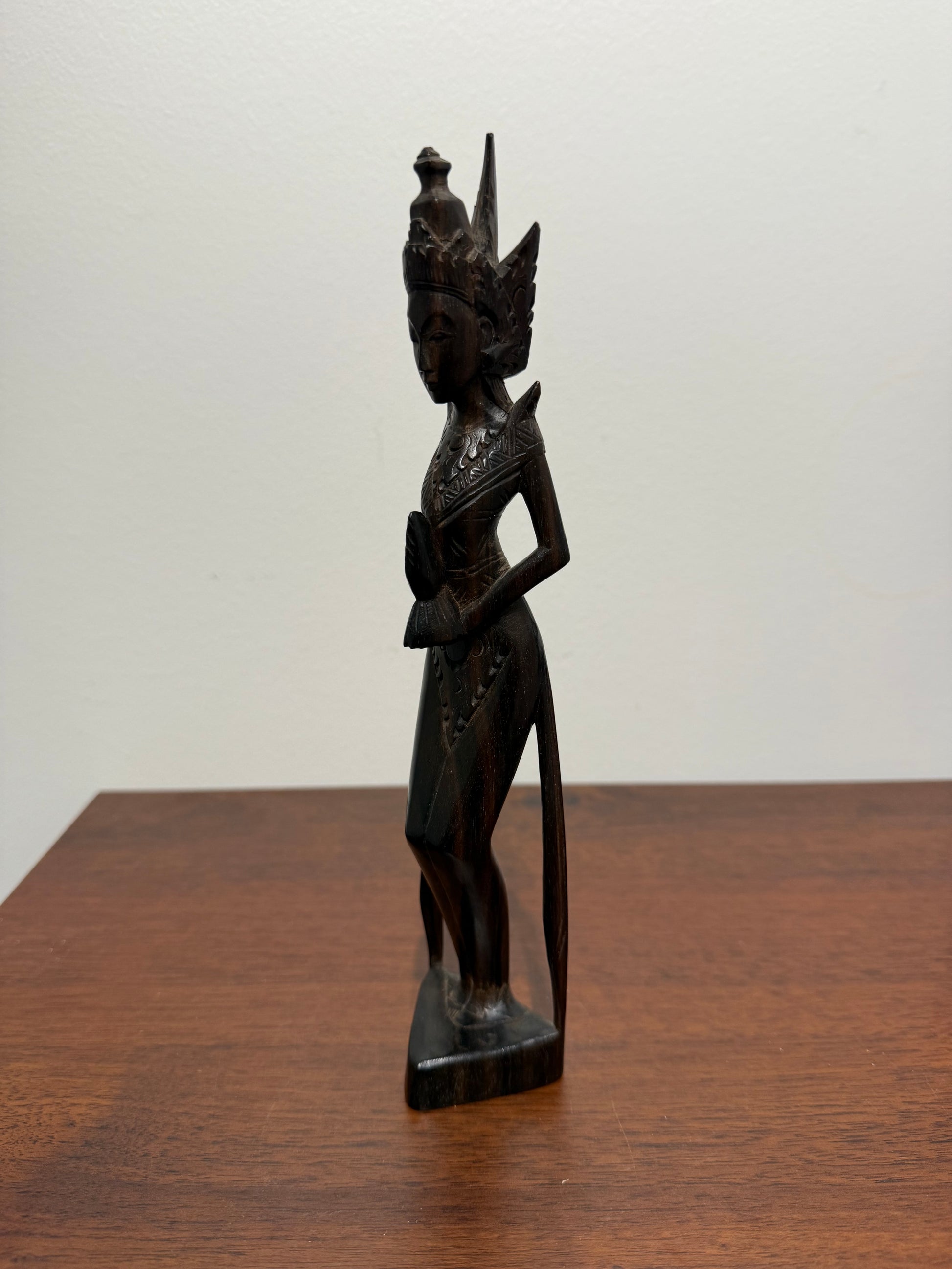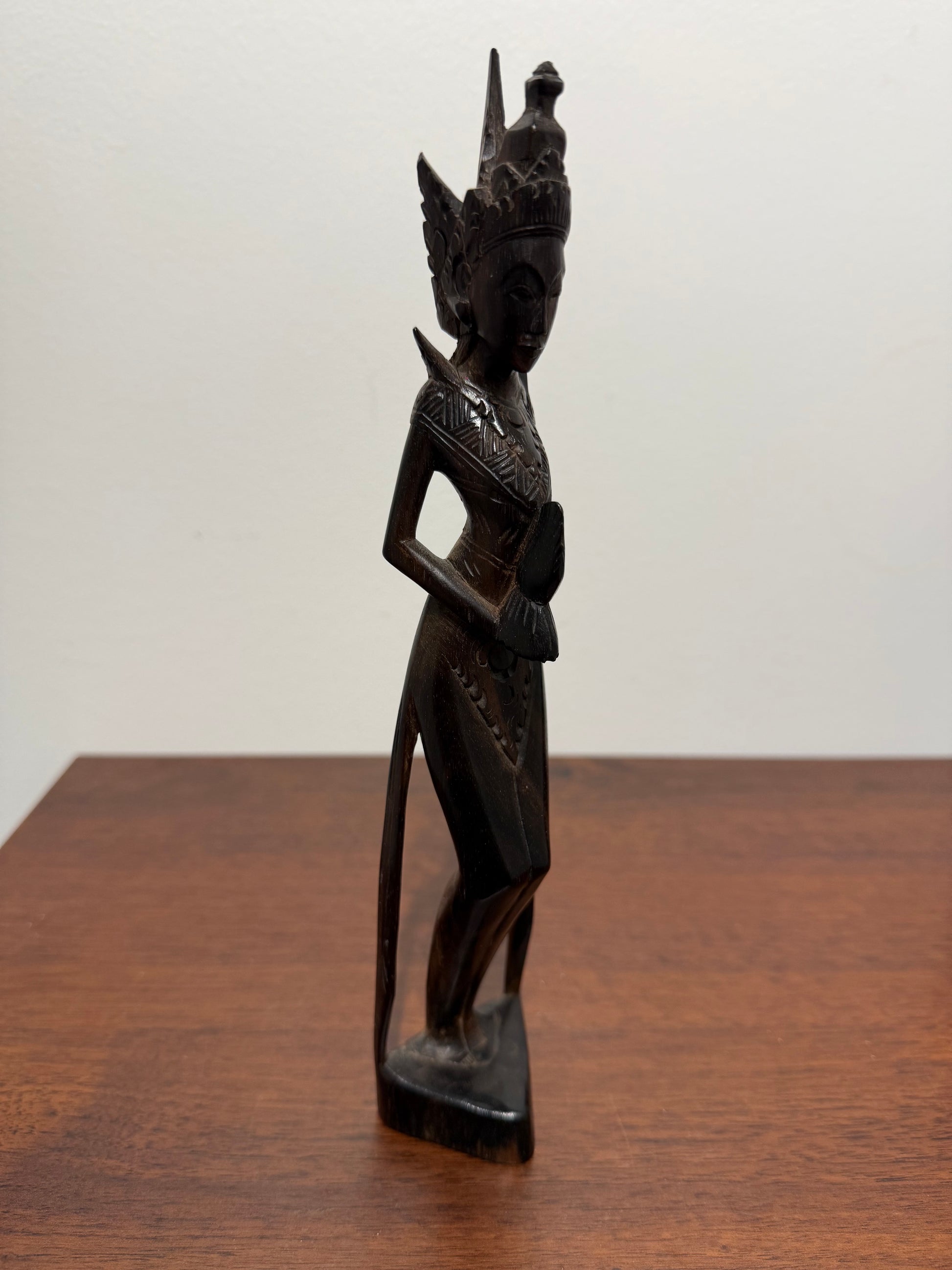 Statue Balinaise en Bois Sculpté - Femme en Tenue Traditionnelle