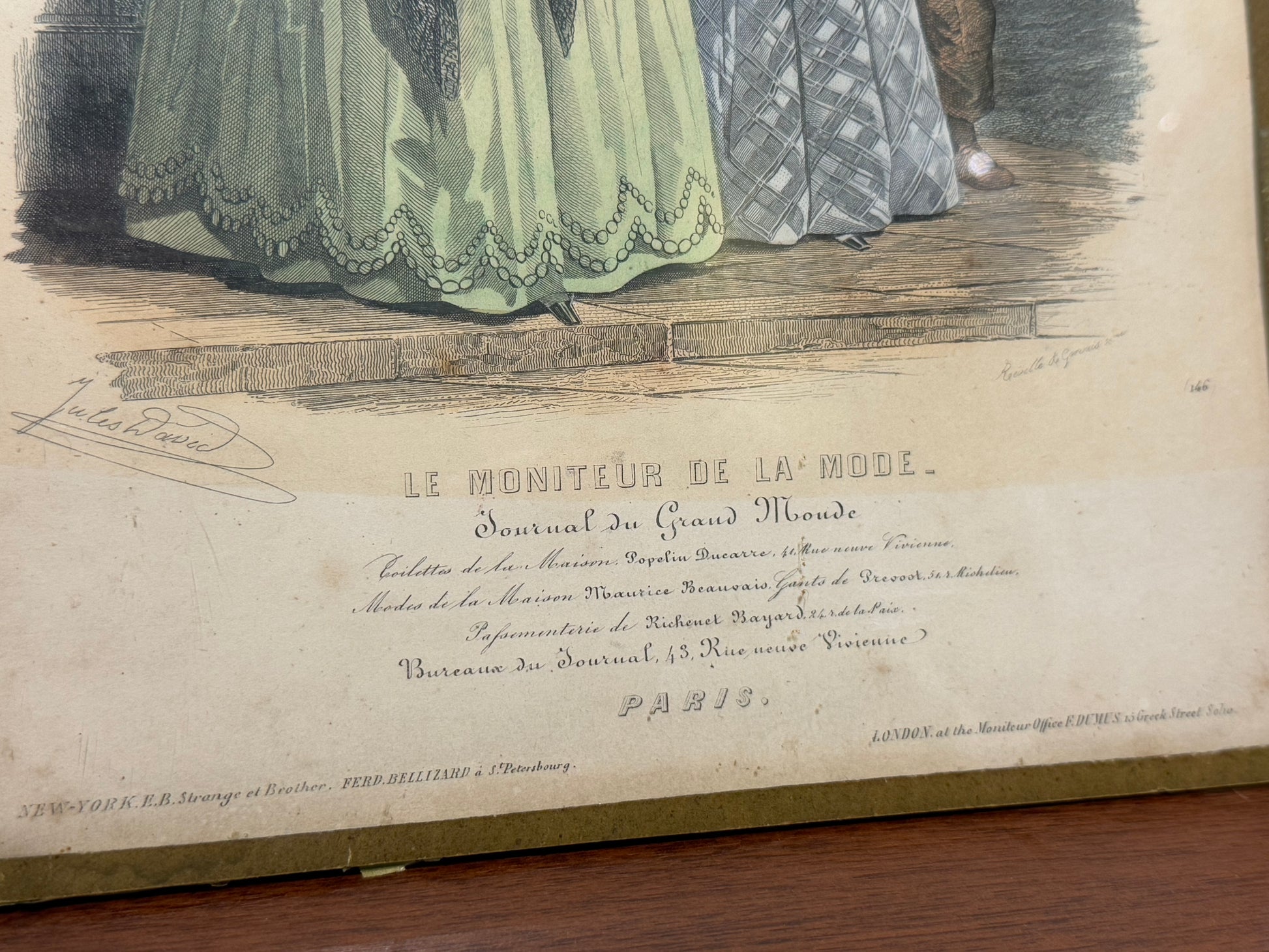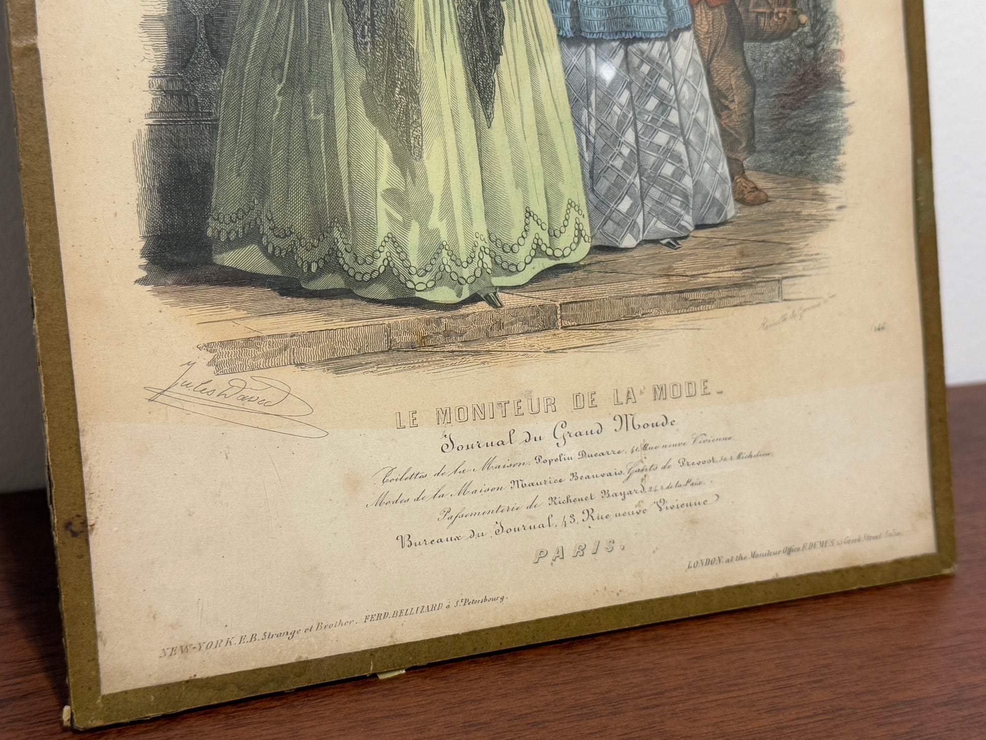 • La gravure est signée Jules David, un illustrateur renommé de l’époque spécialisé dans les planches de mode.