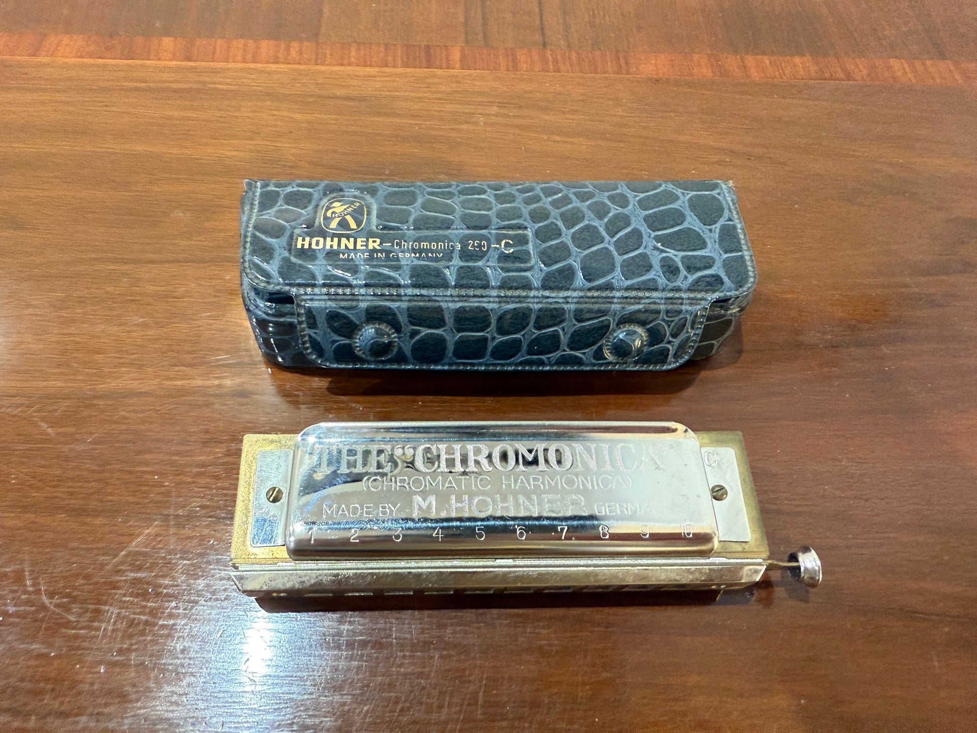 Découvrez cet harmonica chromatique vintage signé Hohner, référence incontournable des instruments à vent. Fabriqué en Allemagne, ce modèle Chromonica 260 C offre une sonorité riche et expressive, idéale pour le jazz, le blues ou la musique classique.