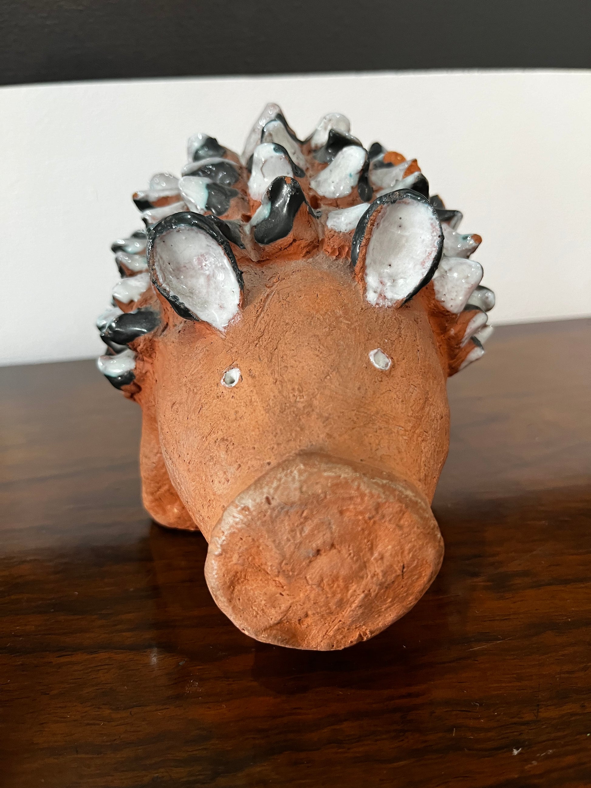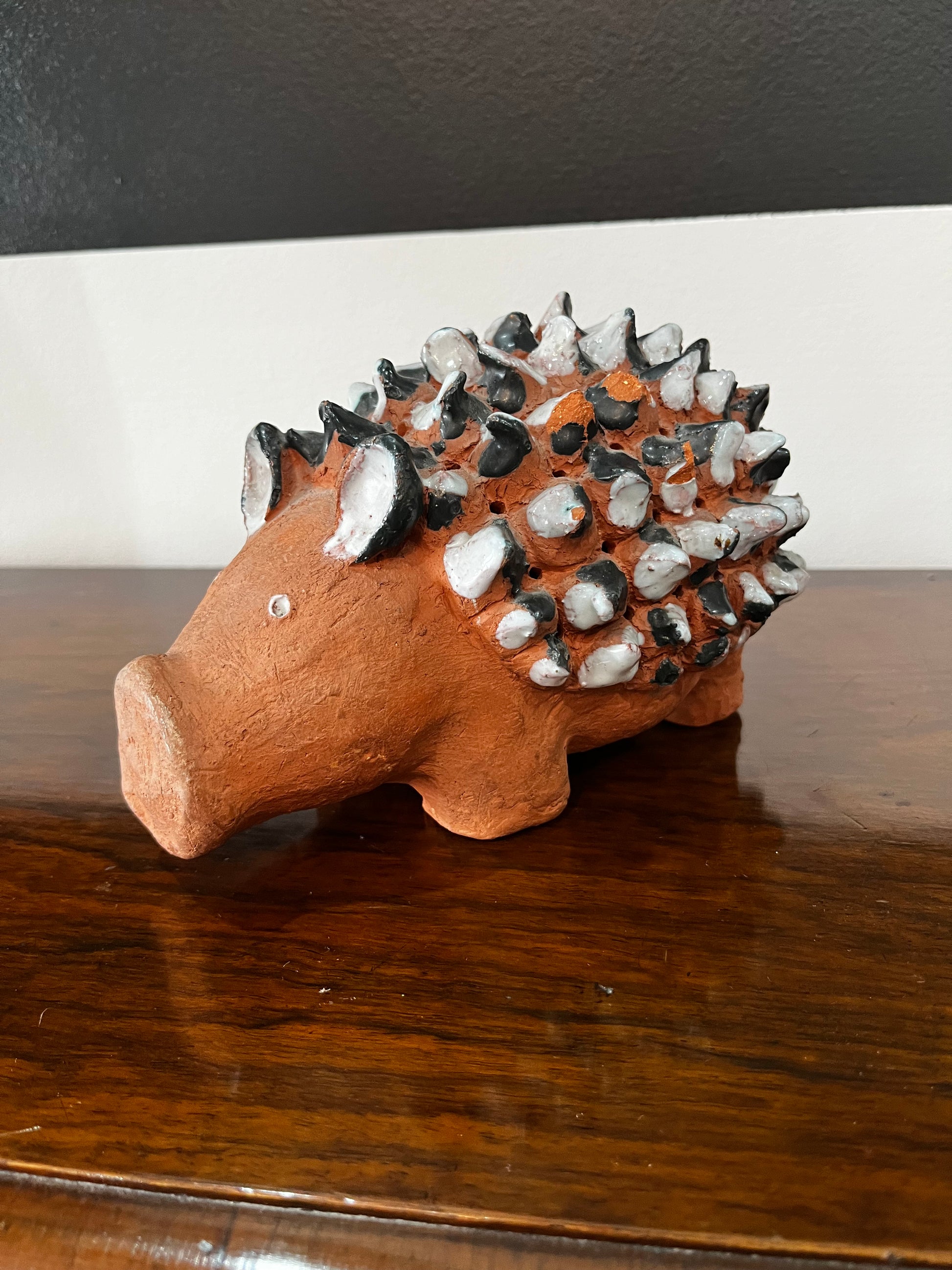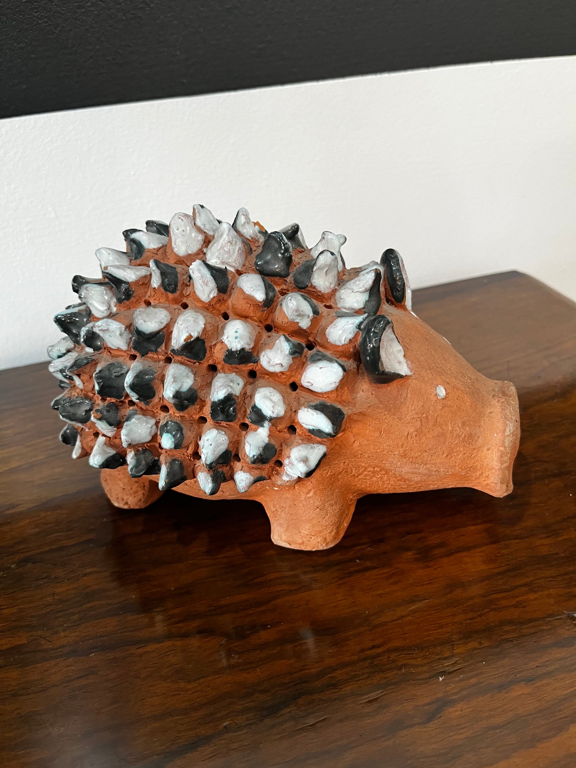 Cet adorable hérisson en terre cuite signé est à la fois artistique et durable. Avec un travail très qualitatif, vous apprécierez sa qualité et sa beauté. Même quelques pics abîmés, il reste en très bon état et ajoutera une touche unique à votre décoration.