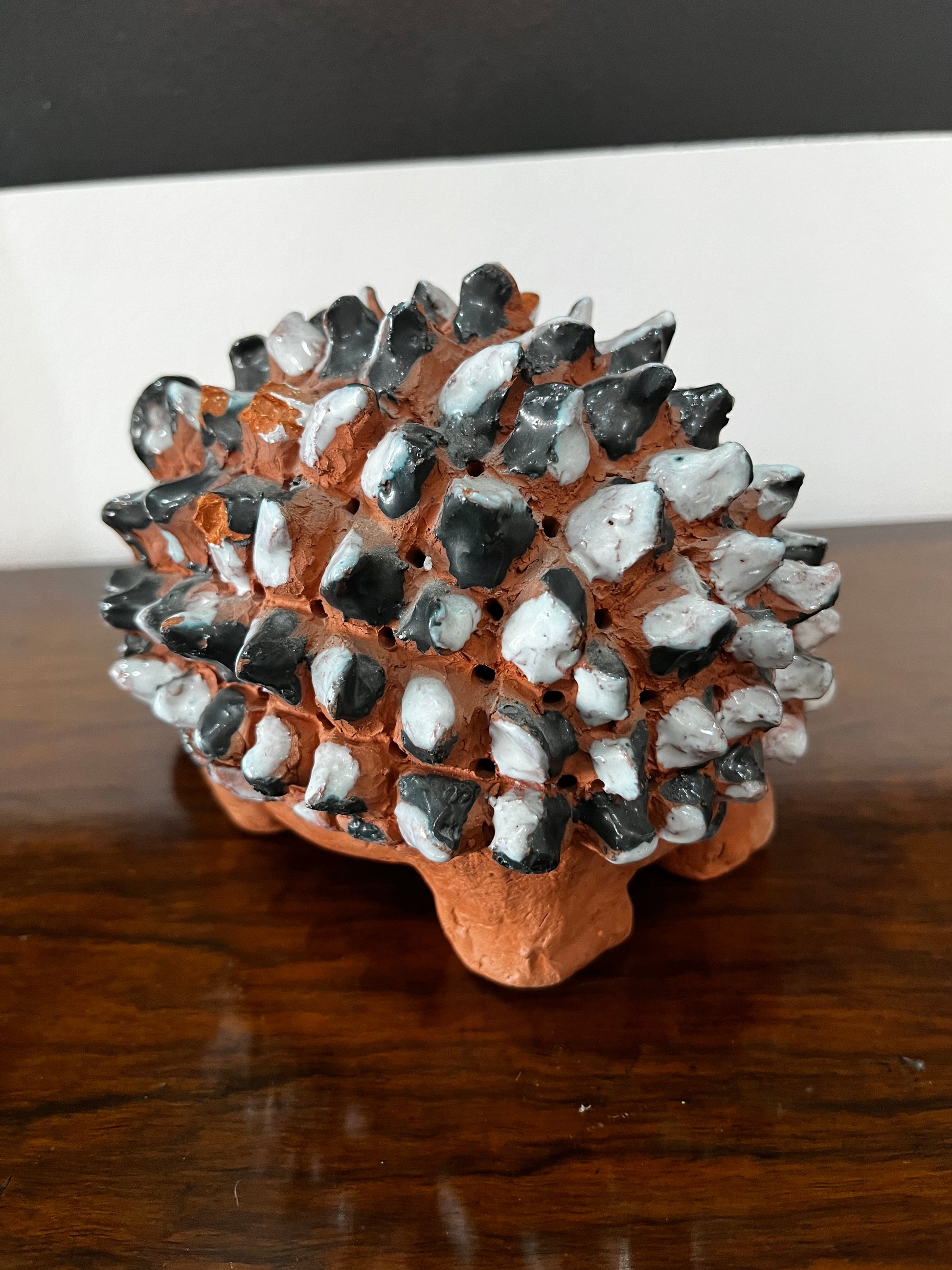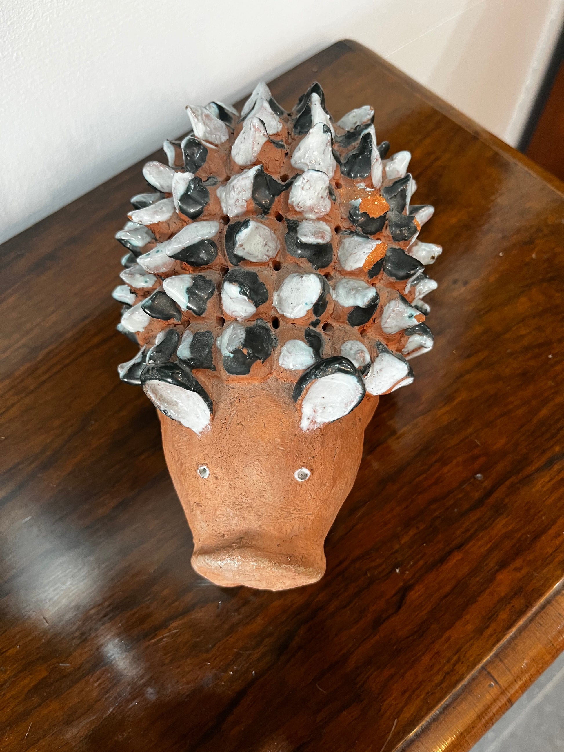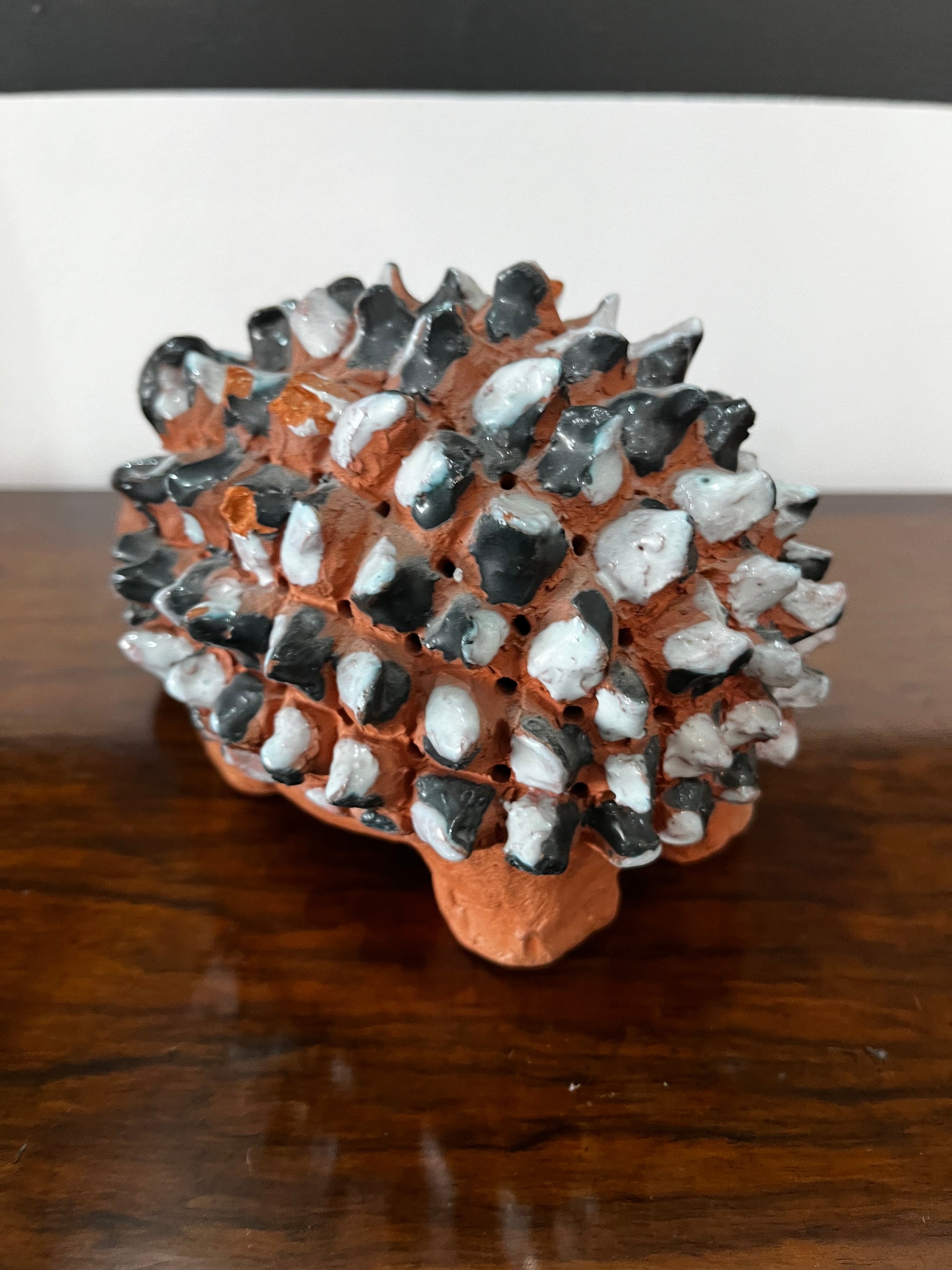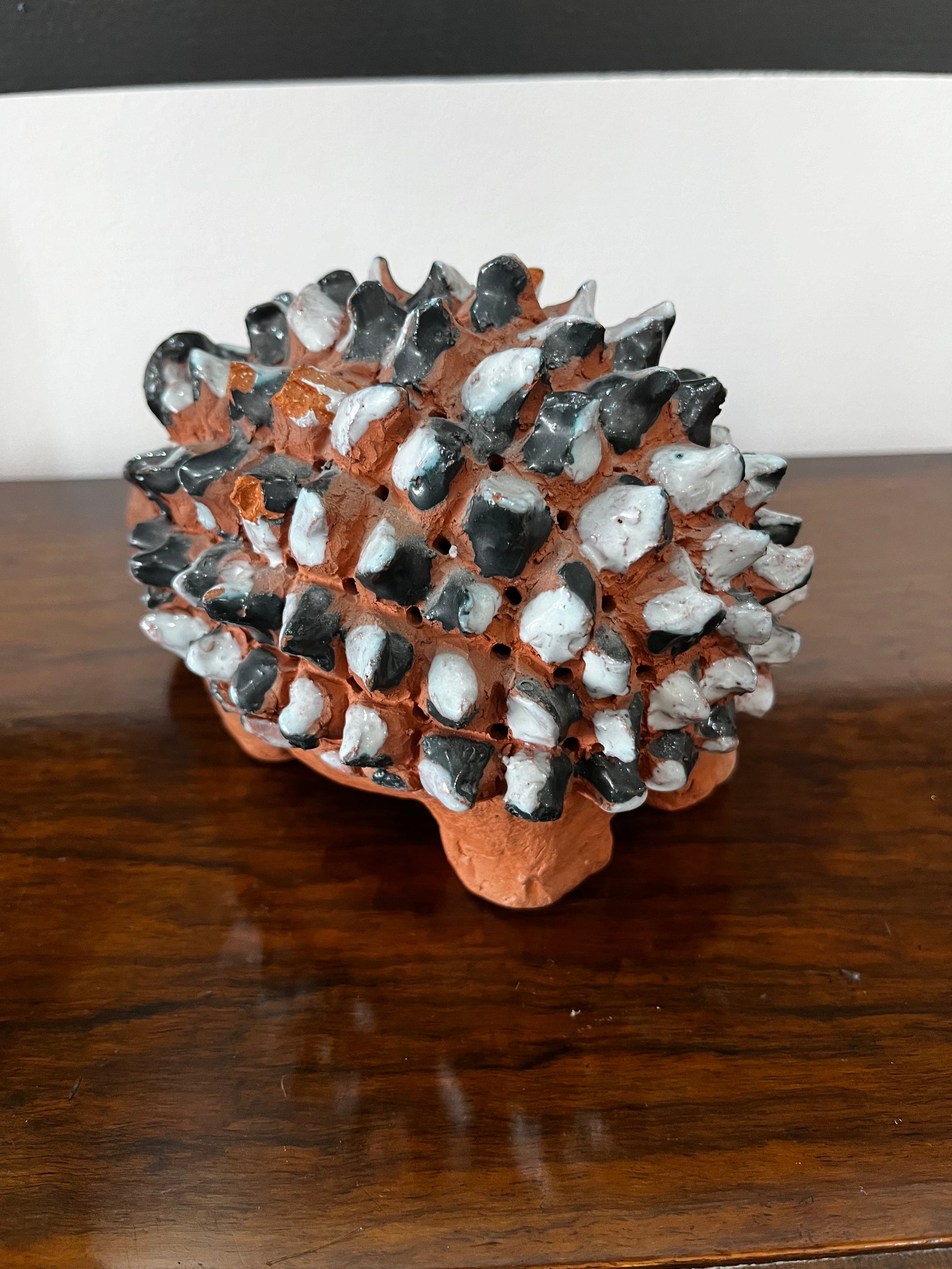 Cet adorable hérisson en terre cuite signé est à la fois artistique et durable. Avec un travail très qualitatif, vous apprécierez sa qualité et sa beauté. Même quelques pics abîmés, il reste en très bon état et ajoutera une touche unique à votre décoration.