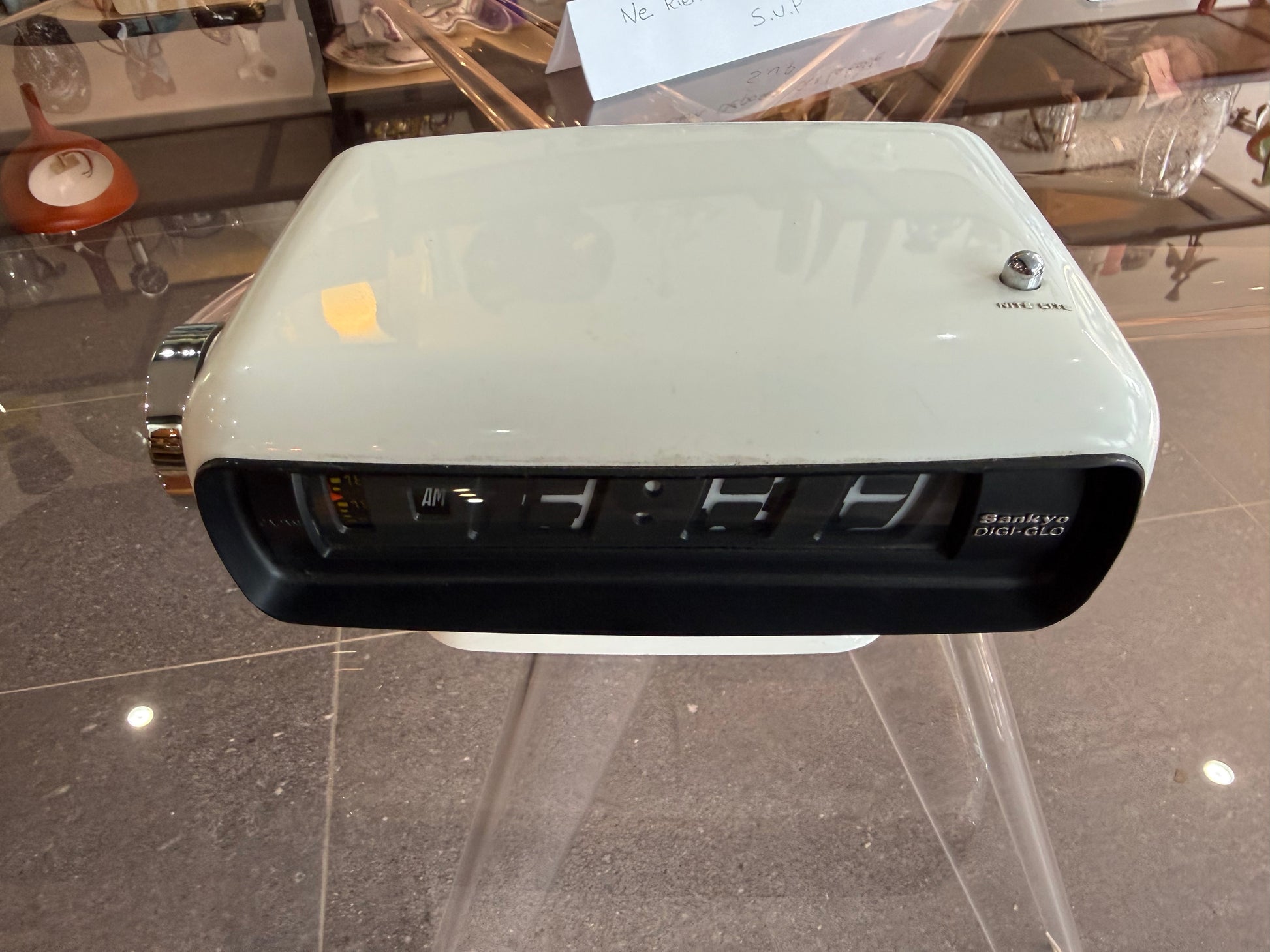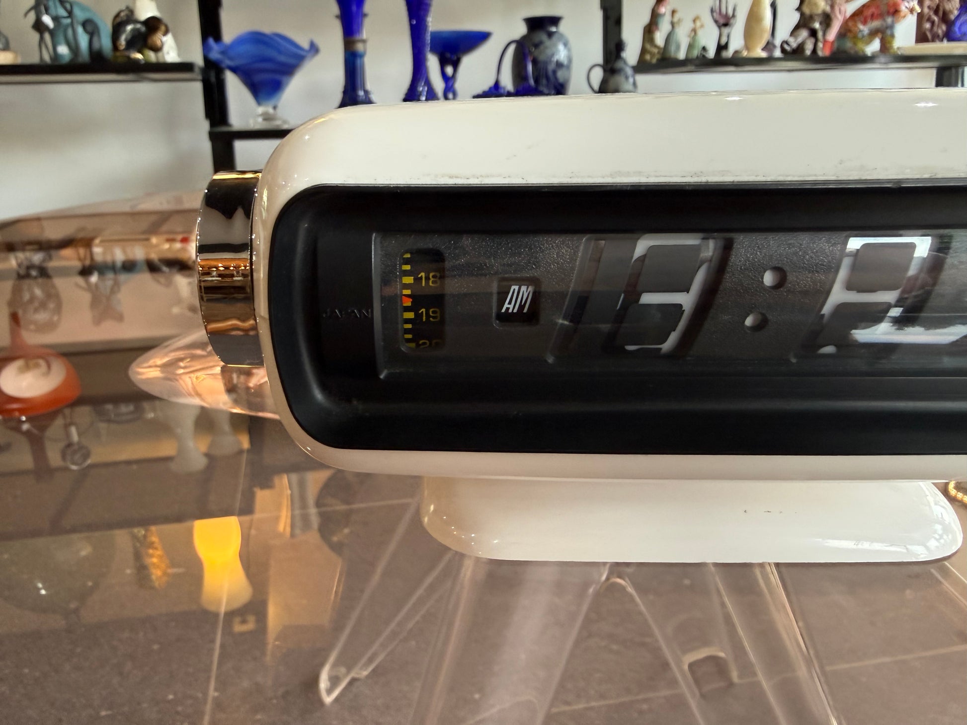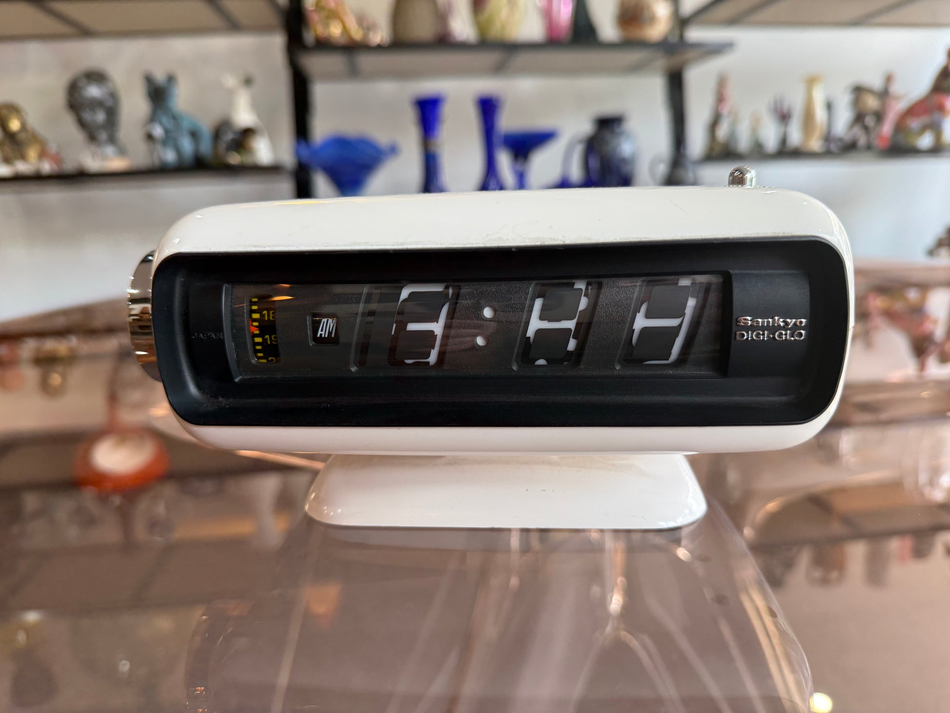 Superbe horloge à palettes Sankyo DIGI-GLO, une pièce emblématique du design japonais des années 1970. Son affichage mécanique à bascule, combiné à son design futuriste tout en rondeur, incarne parfaitement l’esthétique rétro-tech de cette époque.