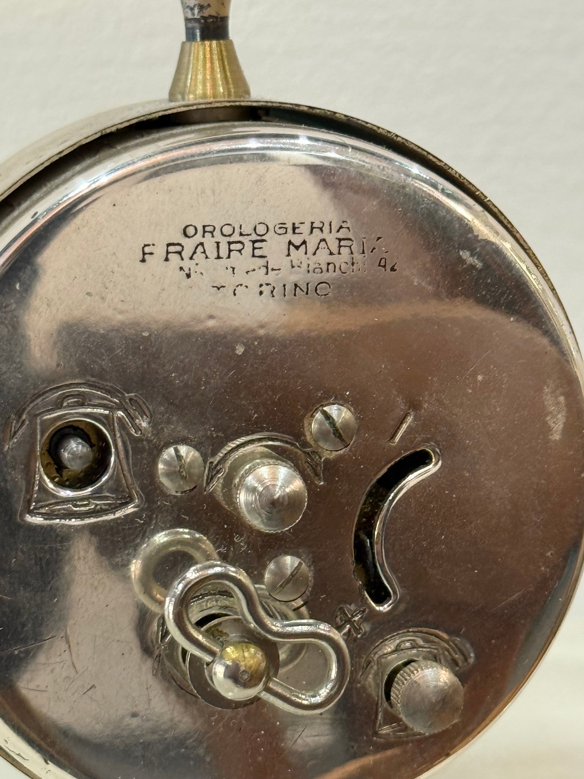 Horloge réveil RITZ à mécanisme mécanique, provenant de l’atelier italien Orologeria Fraire Maria, Torino.
