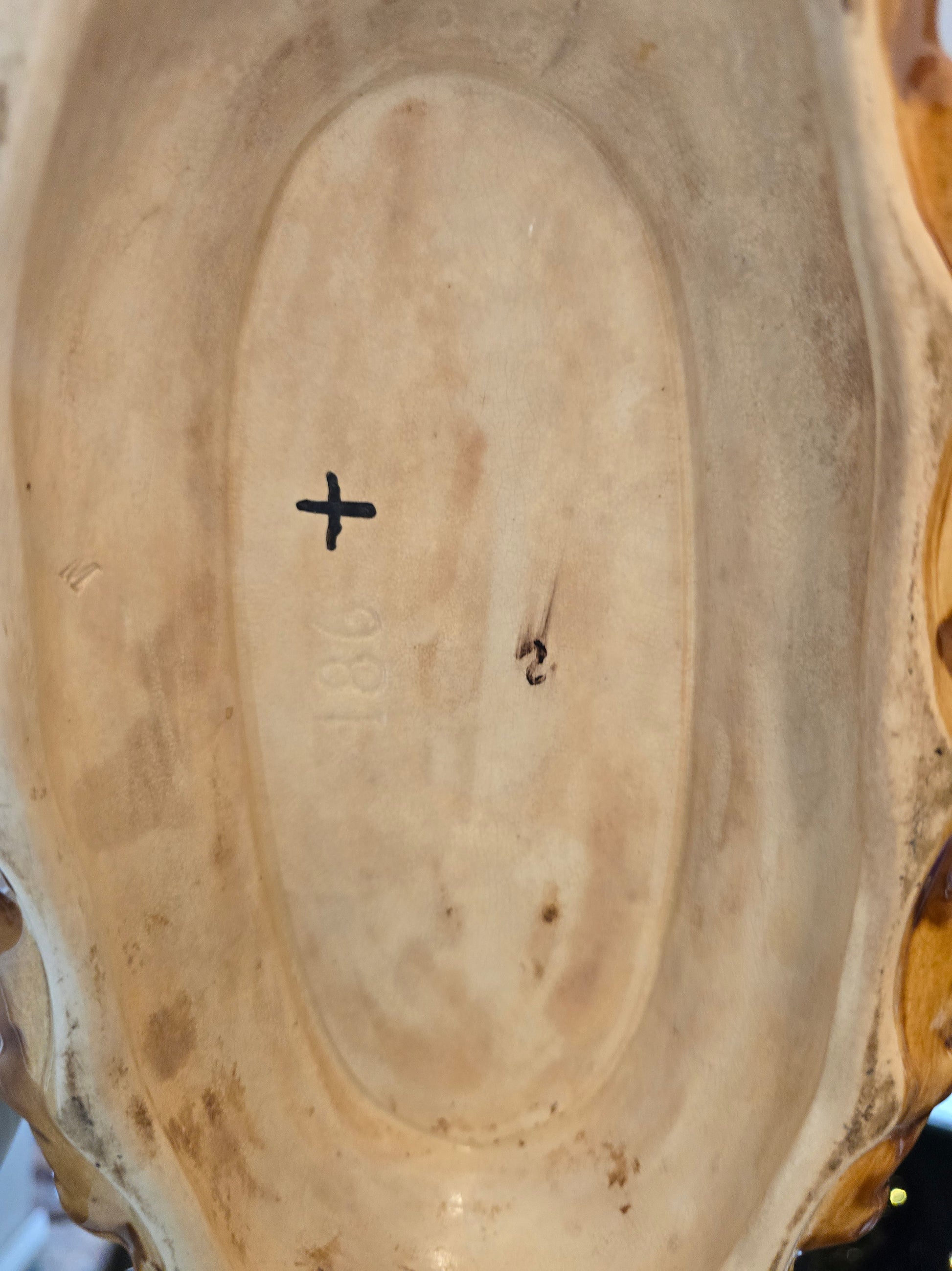 On note un numéro de modèle moulé en creux (1881), cohérent avec les productions de grandes manufactures françaises comme Faïencerie de Saint-Clément ou Keller & Guérin.
