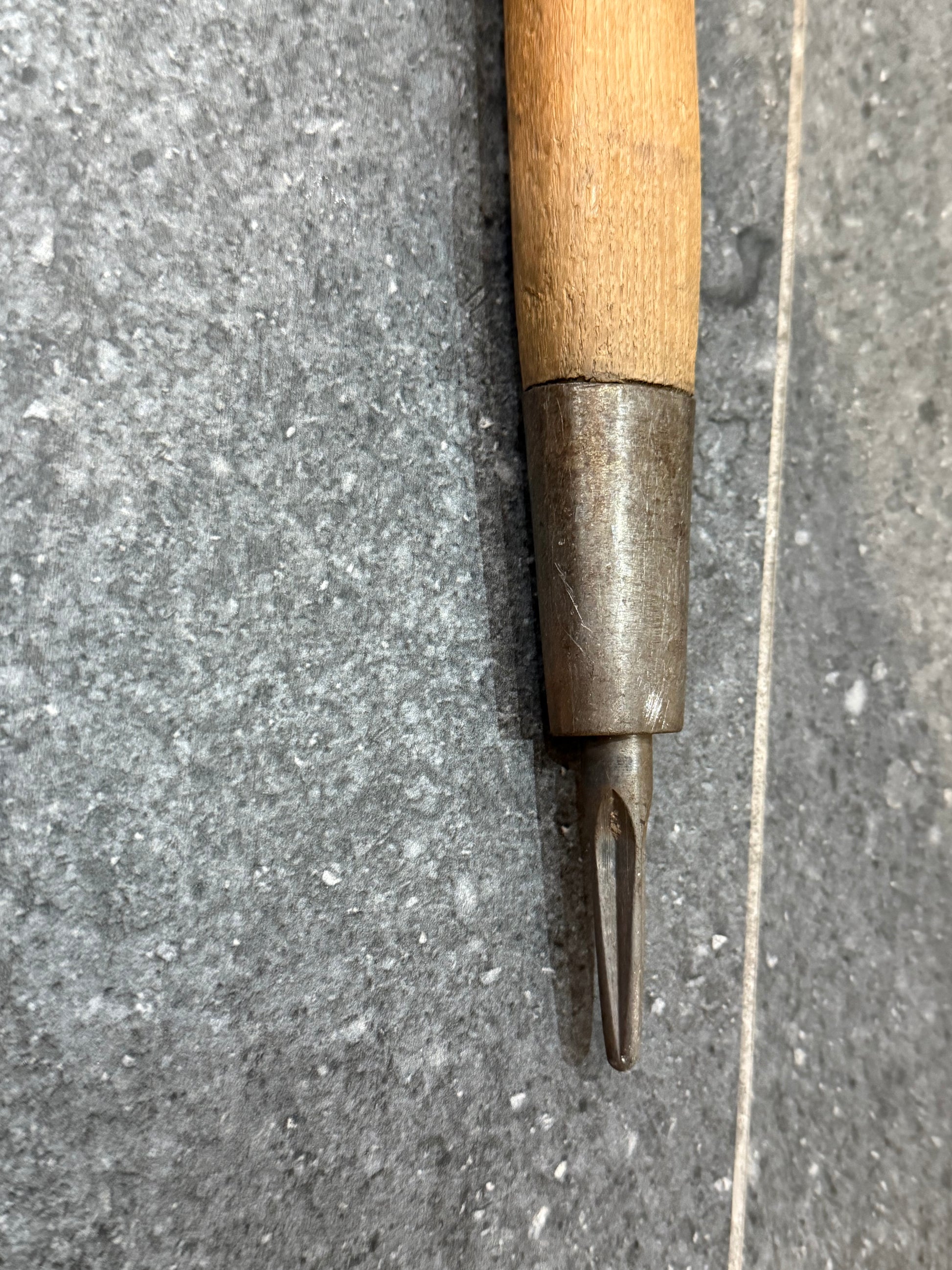 • Manche en bois massif, patiné par le temps.