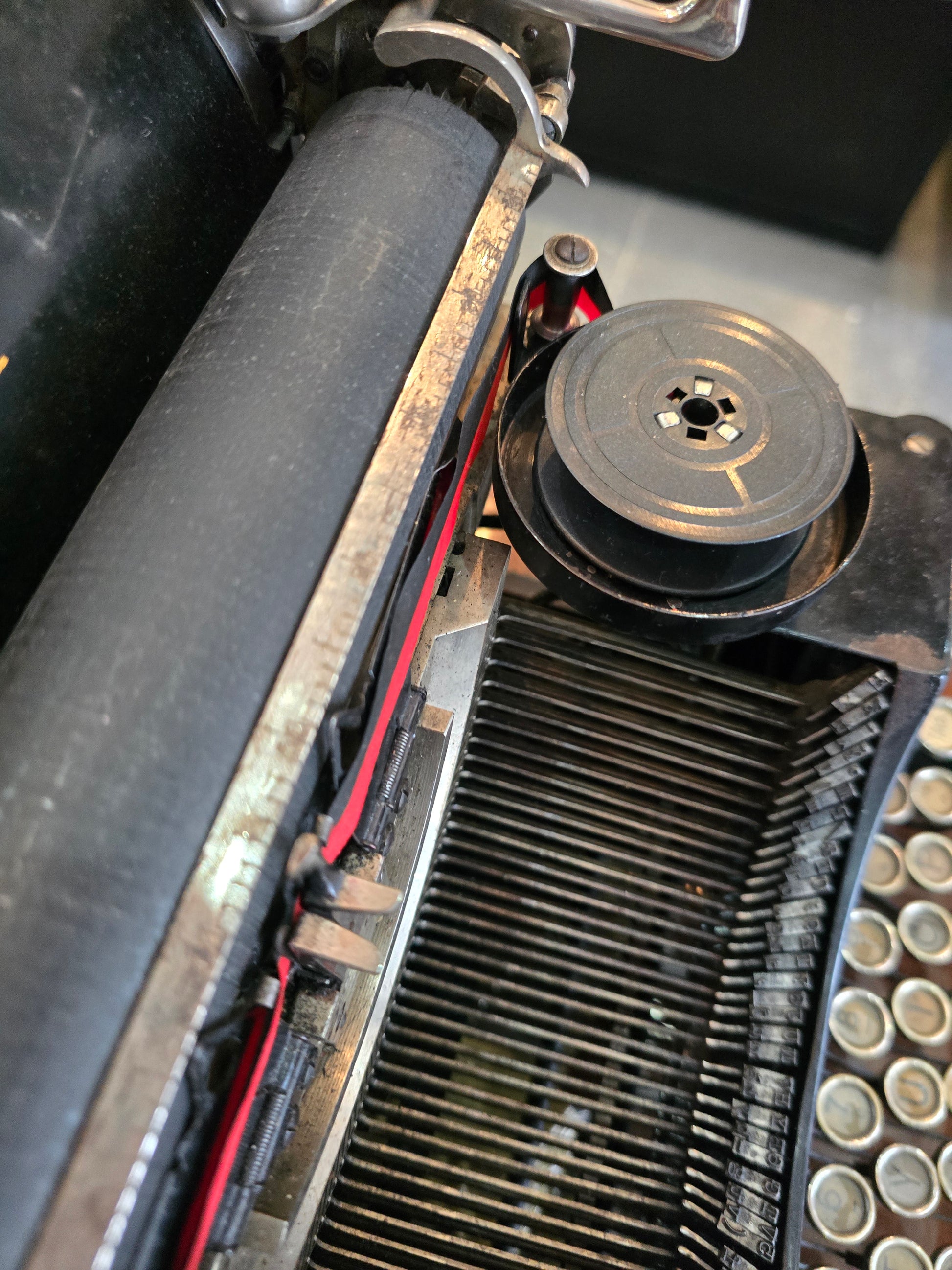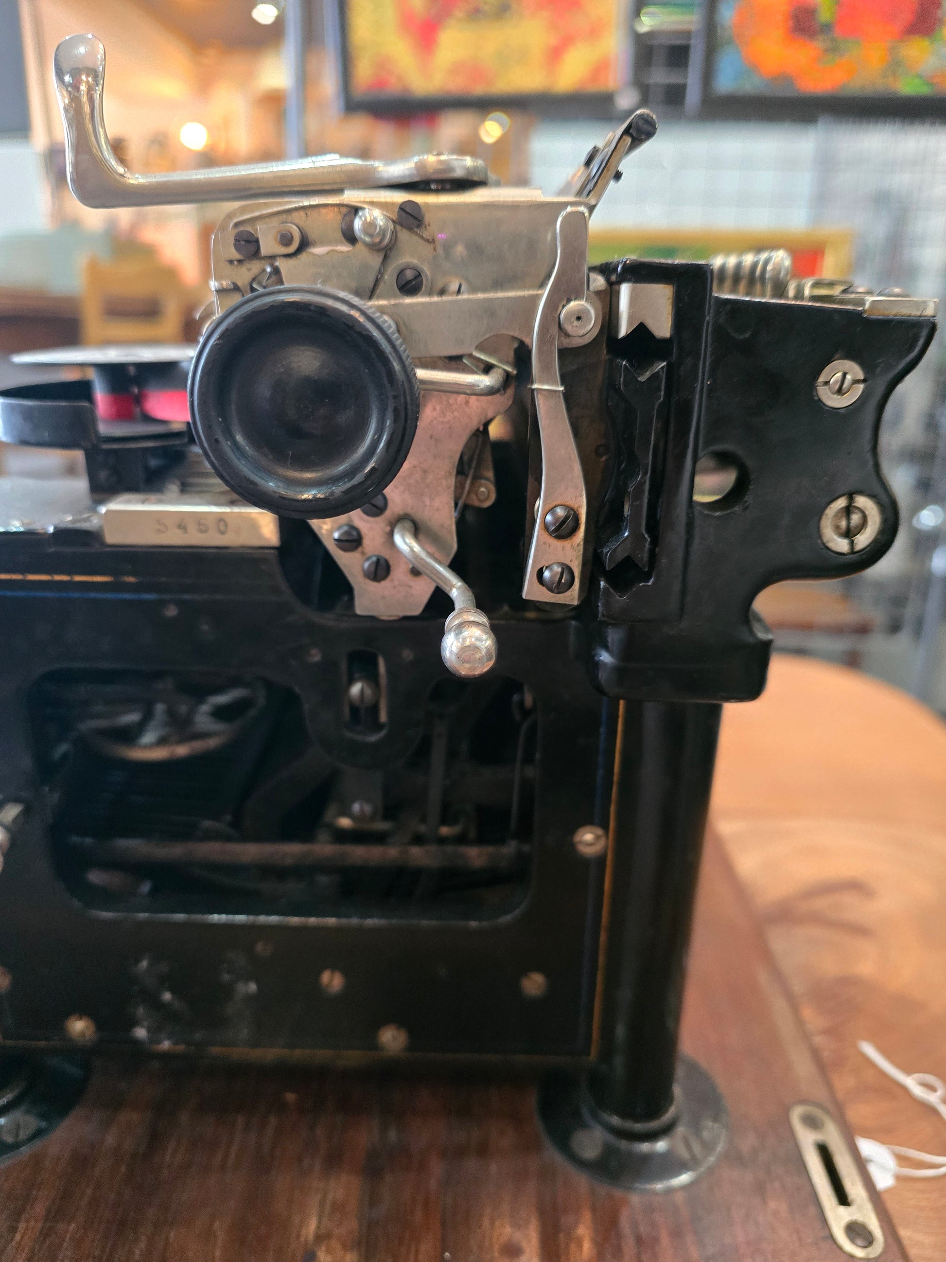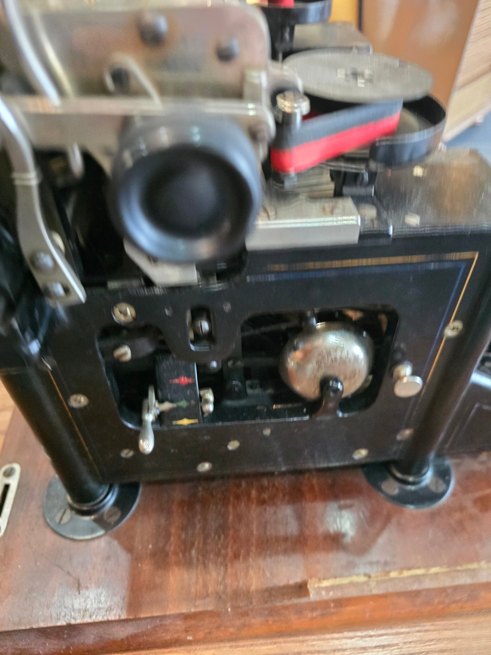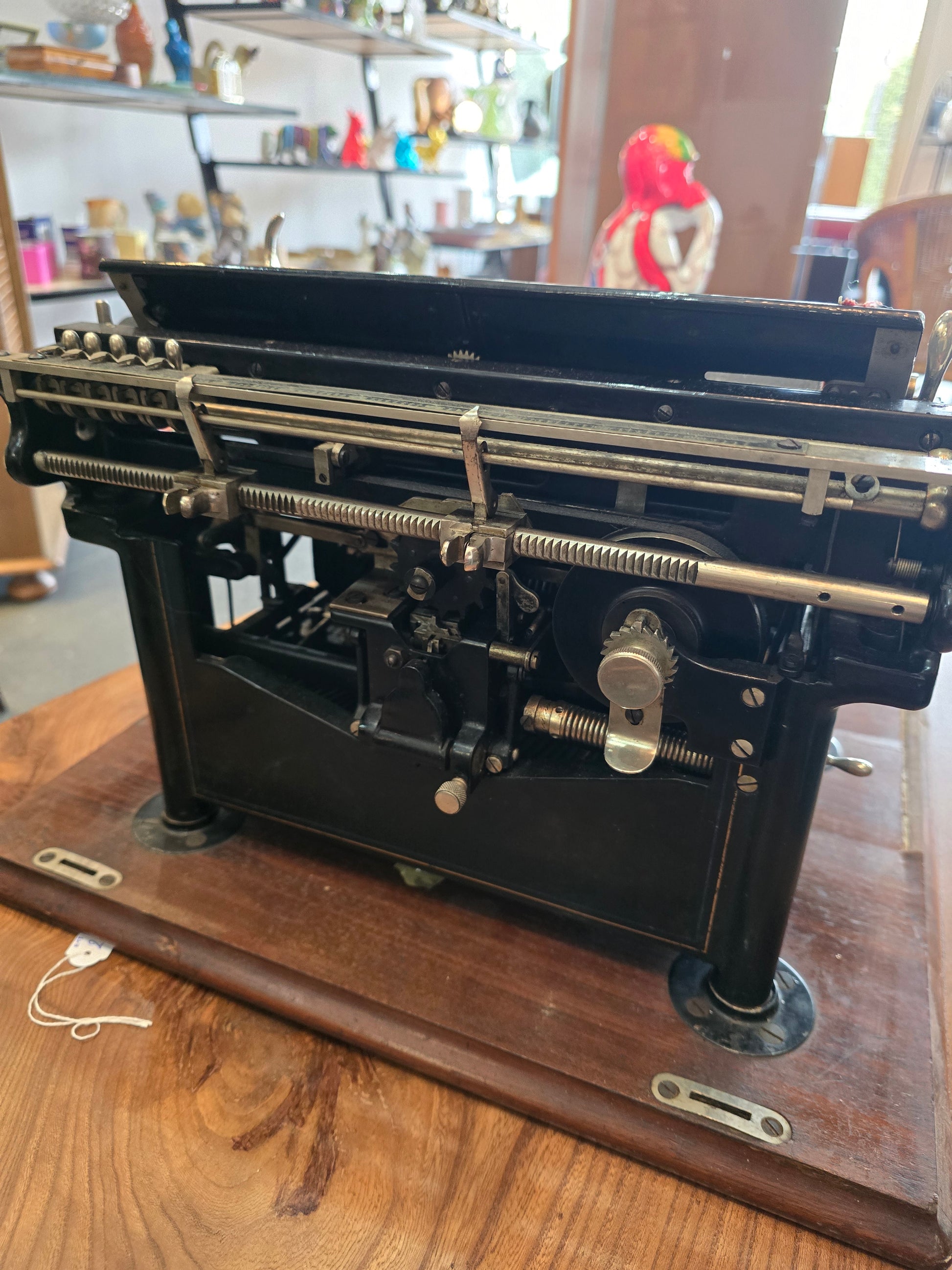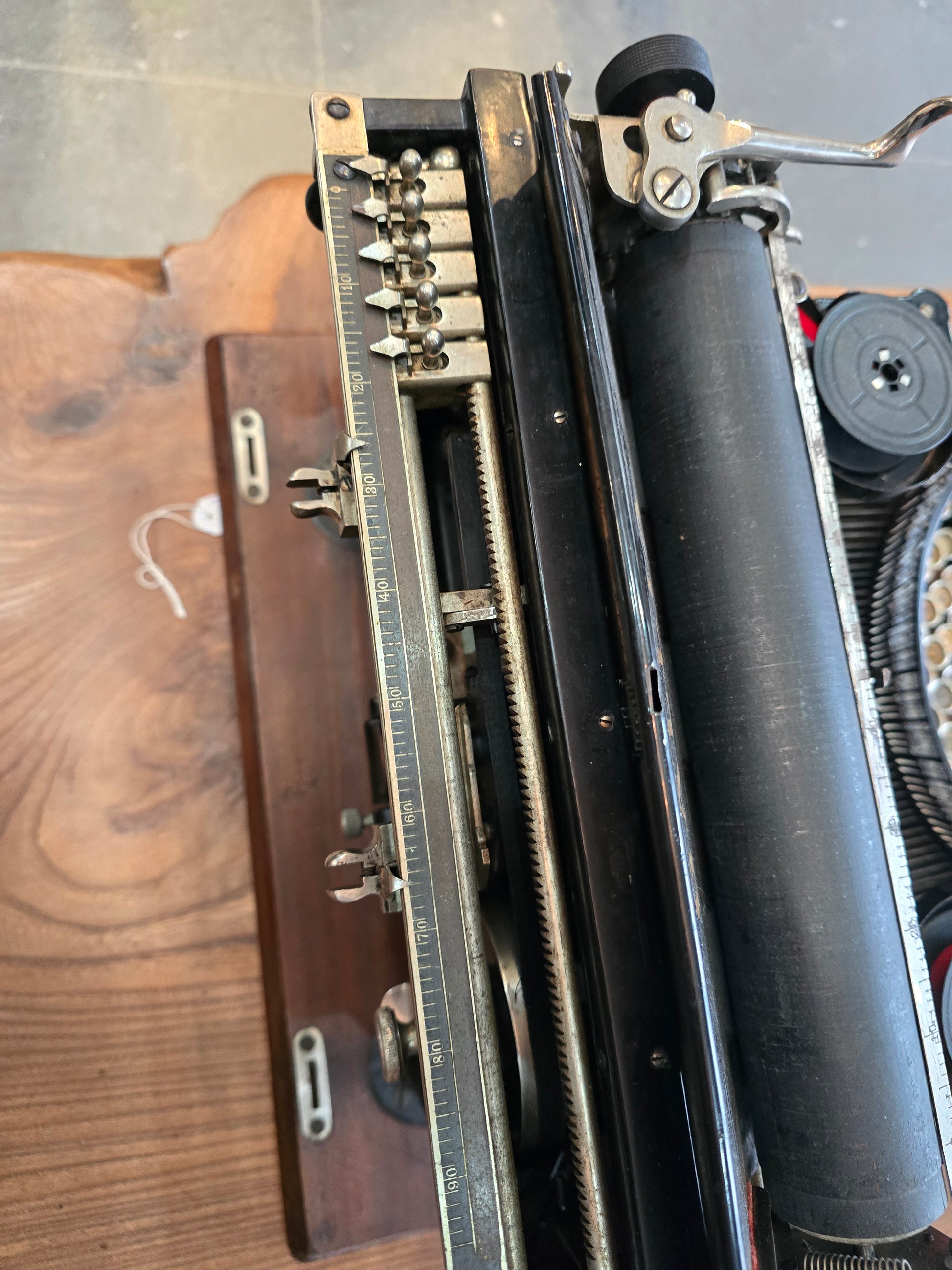 Son mécanisme manuel, son ruban bicolore noir et rouge, et son socle en bois d’origine en font une pièce idéale pour les collectionneurs, les amateurs de décoration vintage ou les passionnés de belles mécaniques.
