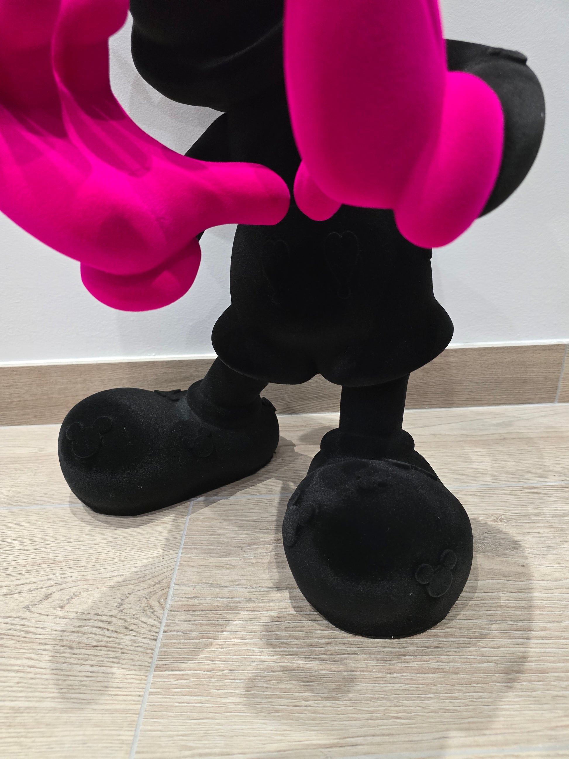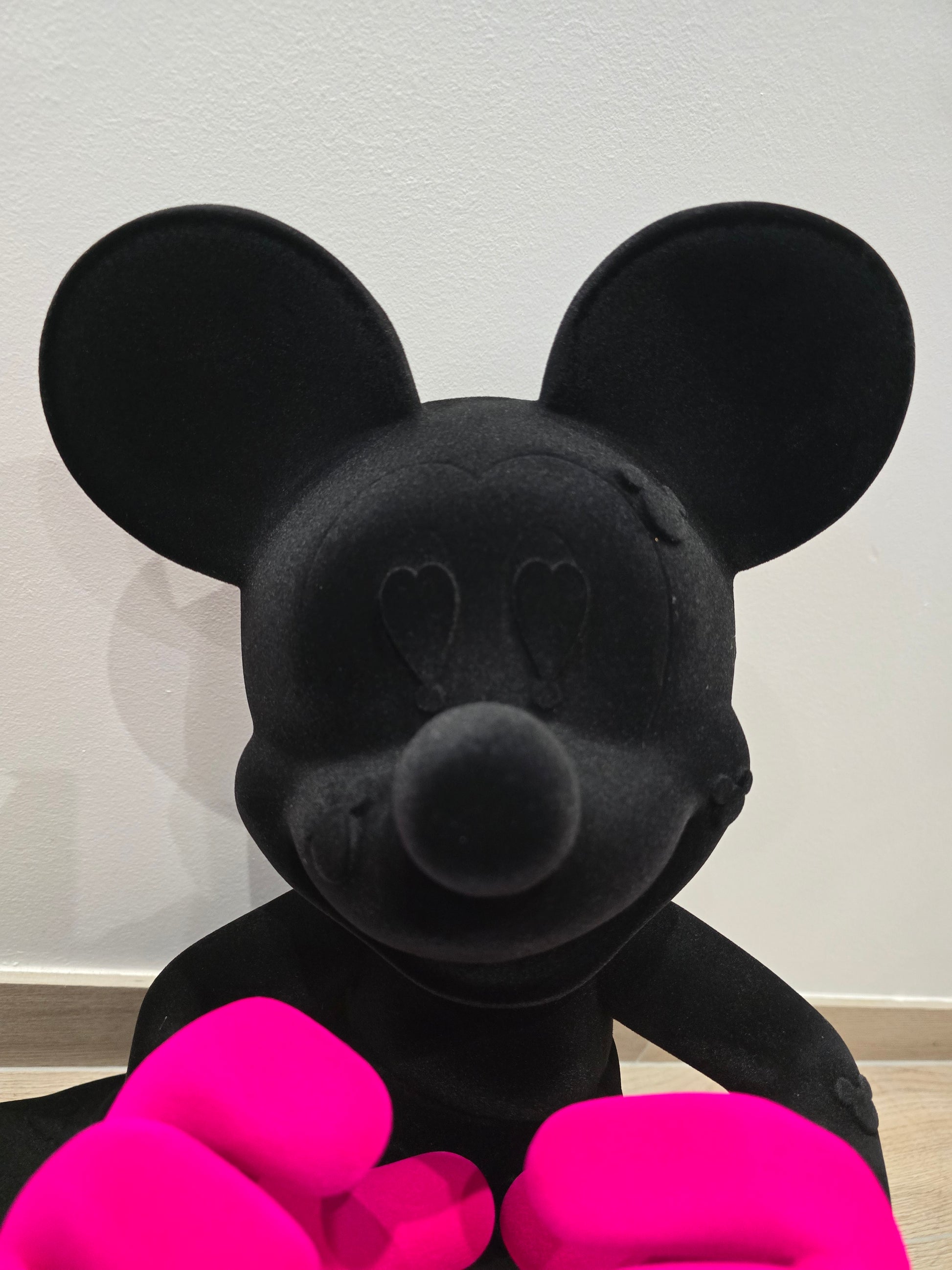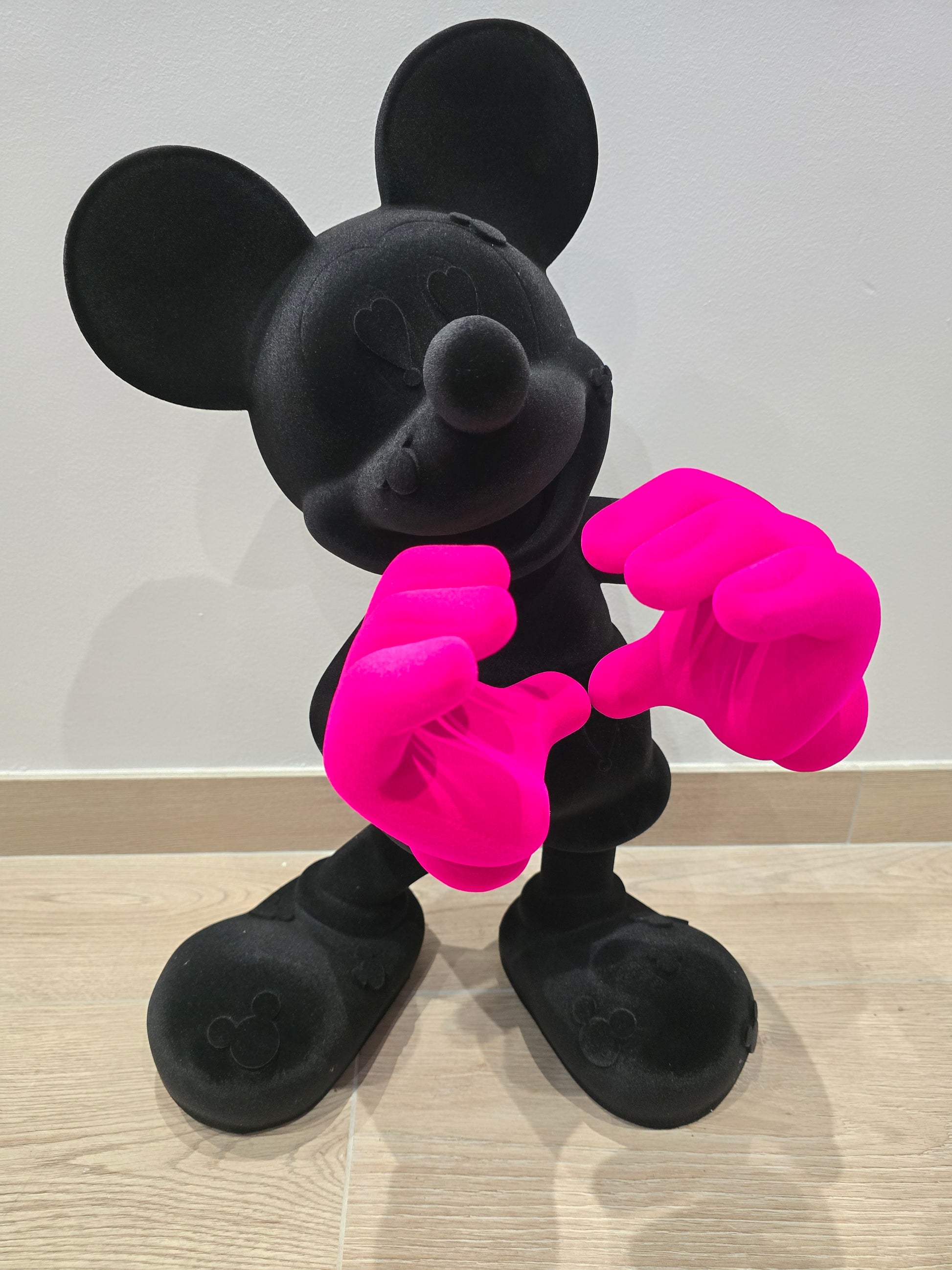 Sculpture Mickey velours noir & gants roses – Pop Art – 60 cm