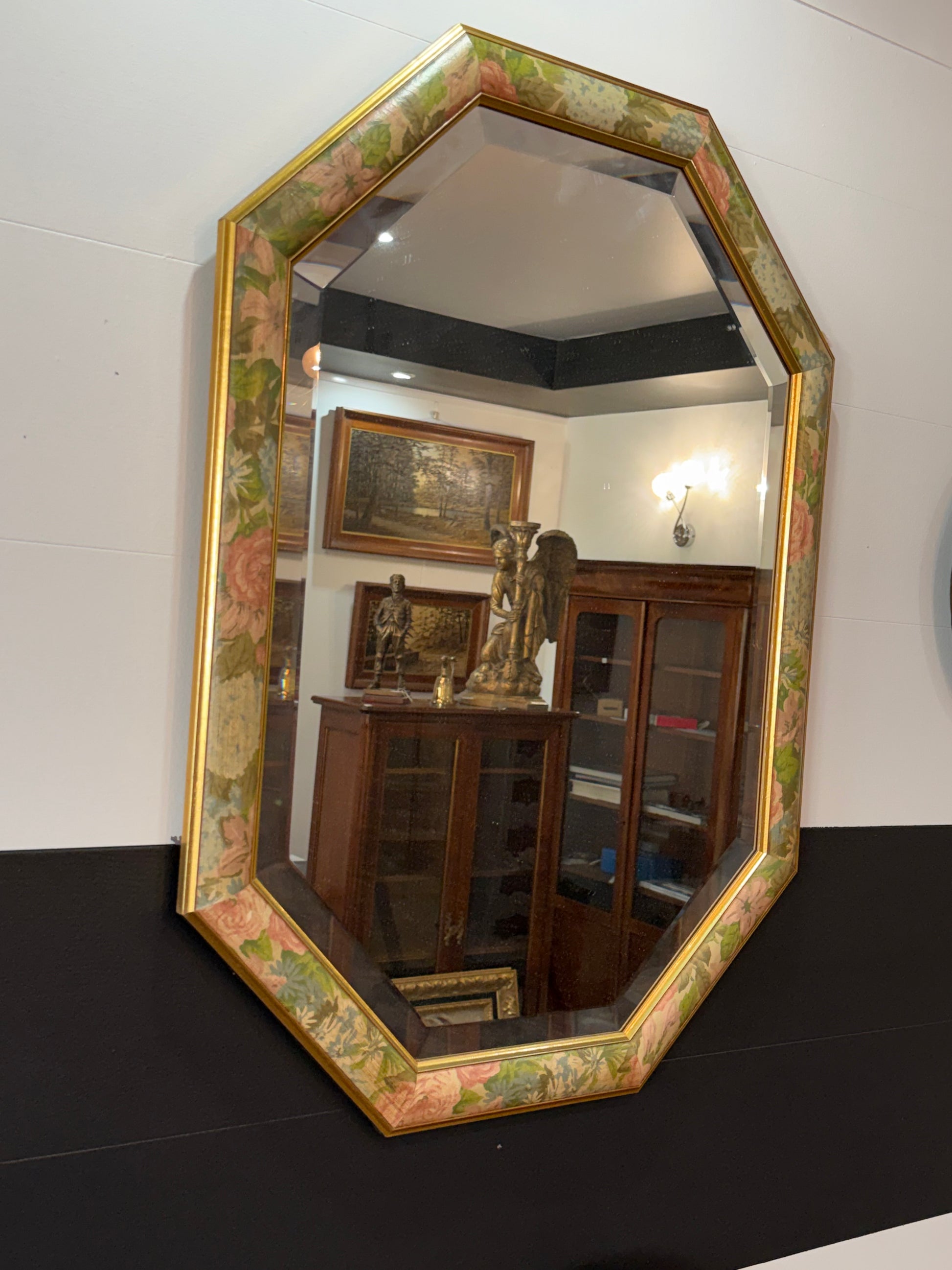 Miroir octogonal vintage à encadrement floral doré – 1989