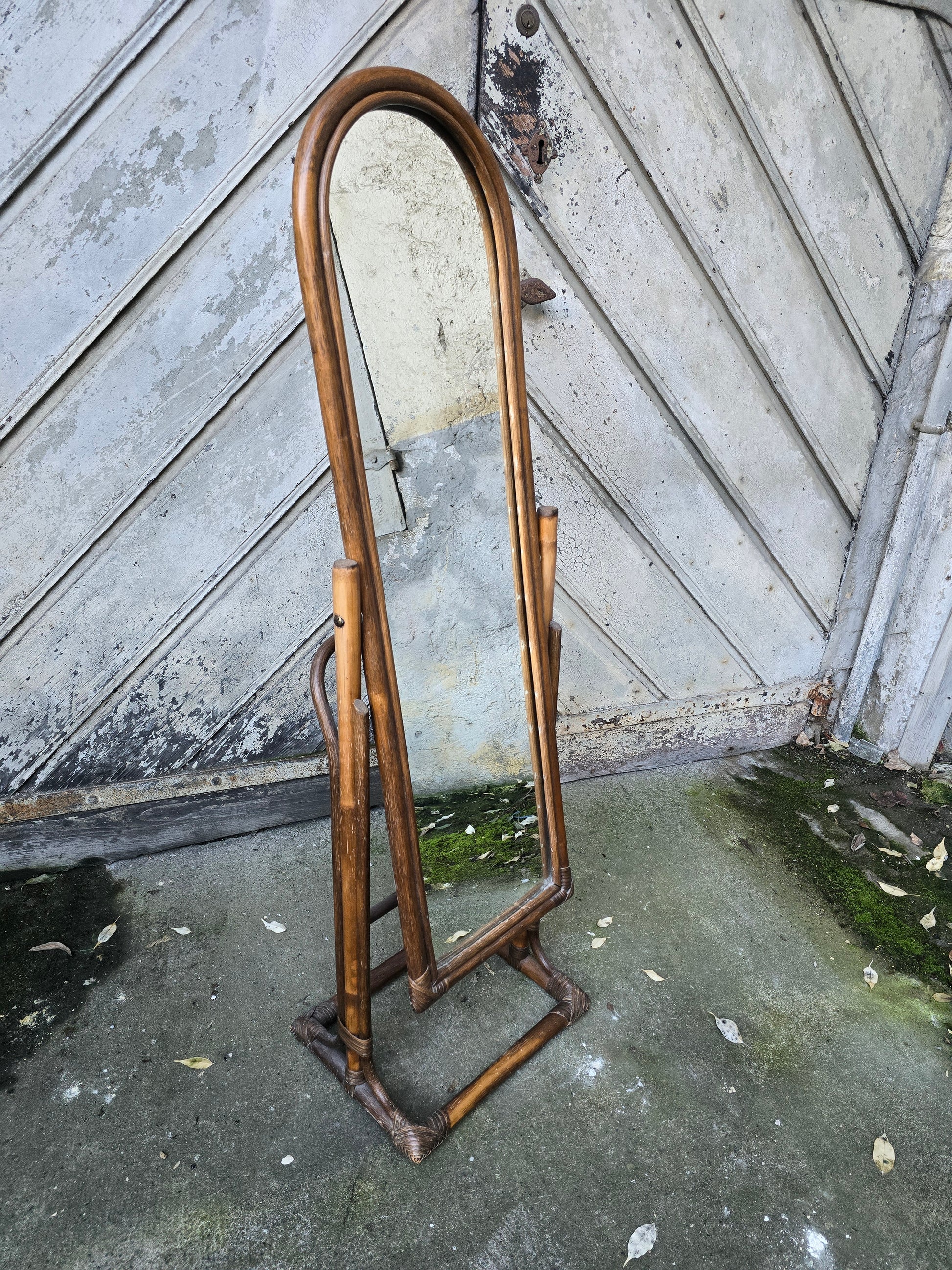 Miroir psyché vintage en bambou et rotin – années 1960 / 1970