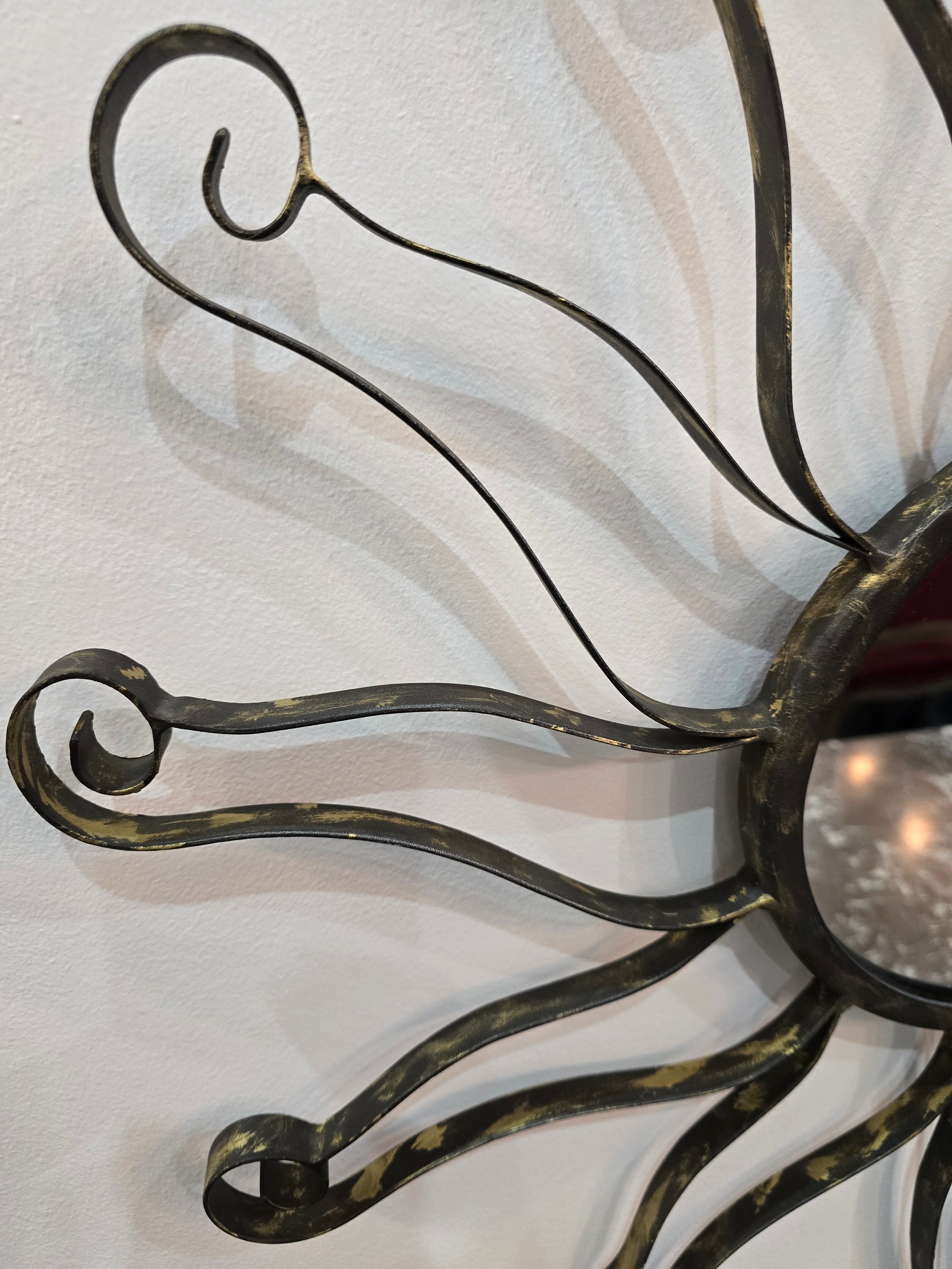 Ce miroir soleil en métal patiné est un choix élégant pour ajouter une touche de lumière à votre espace. Sa finition patinée ajoute une touche de charme vintage tandis que sa forme ensoleillée reflète la lumière pour créer une ambiance chaleureuse.