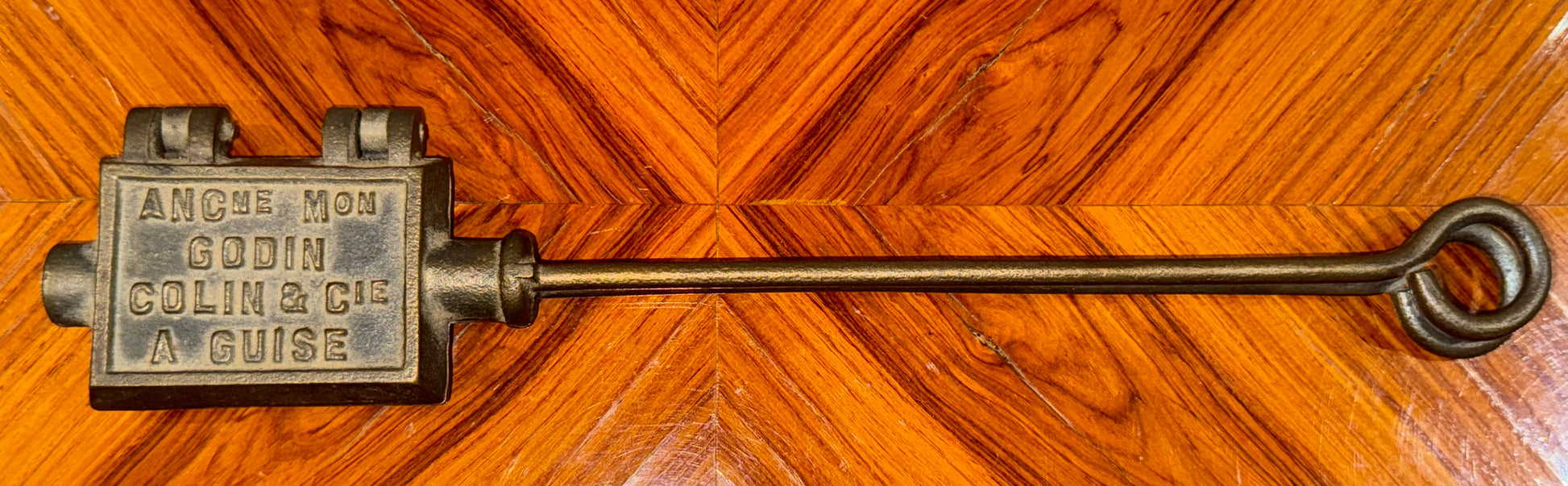Pièce authentique marquée « ANCNE MON GODIN COLIN & CIE À GUISE » – très décorative en cuisine vintage, ou collection d’ustensiles anciens.