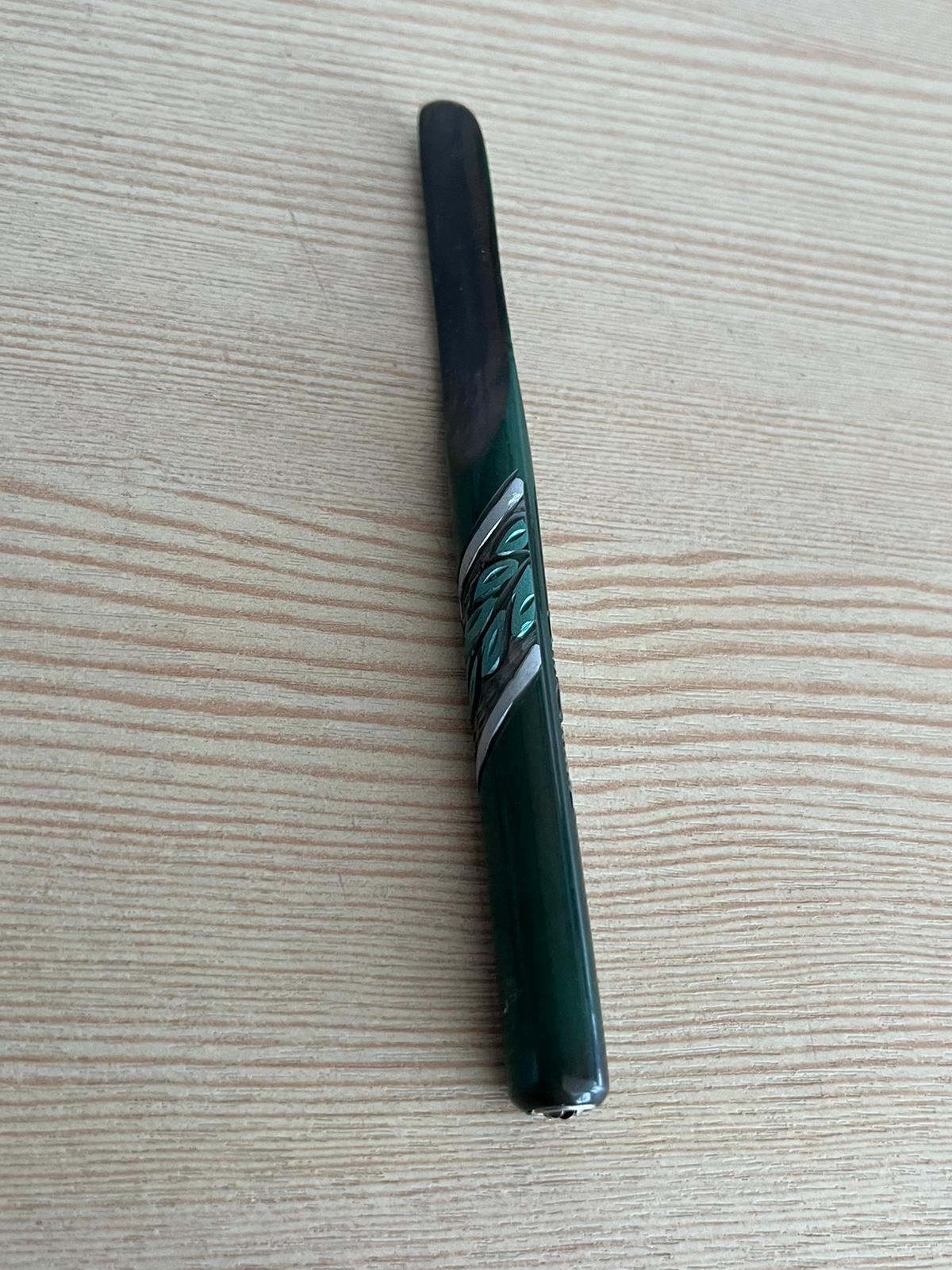 Découvrez notre élégant Nécessaire d'écriture en verre gravé vert des années 1930. Cette boîte de sceau à cacheter de collection comprend 4 pièces qui ajouteront une touche d'authenticité à votre bureau ou à votre collection. Fabriqué avec précision et orné de détails gravés, c'est une pièce de qualité pour tout connaisseur.