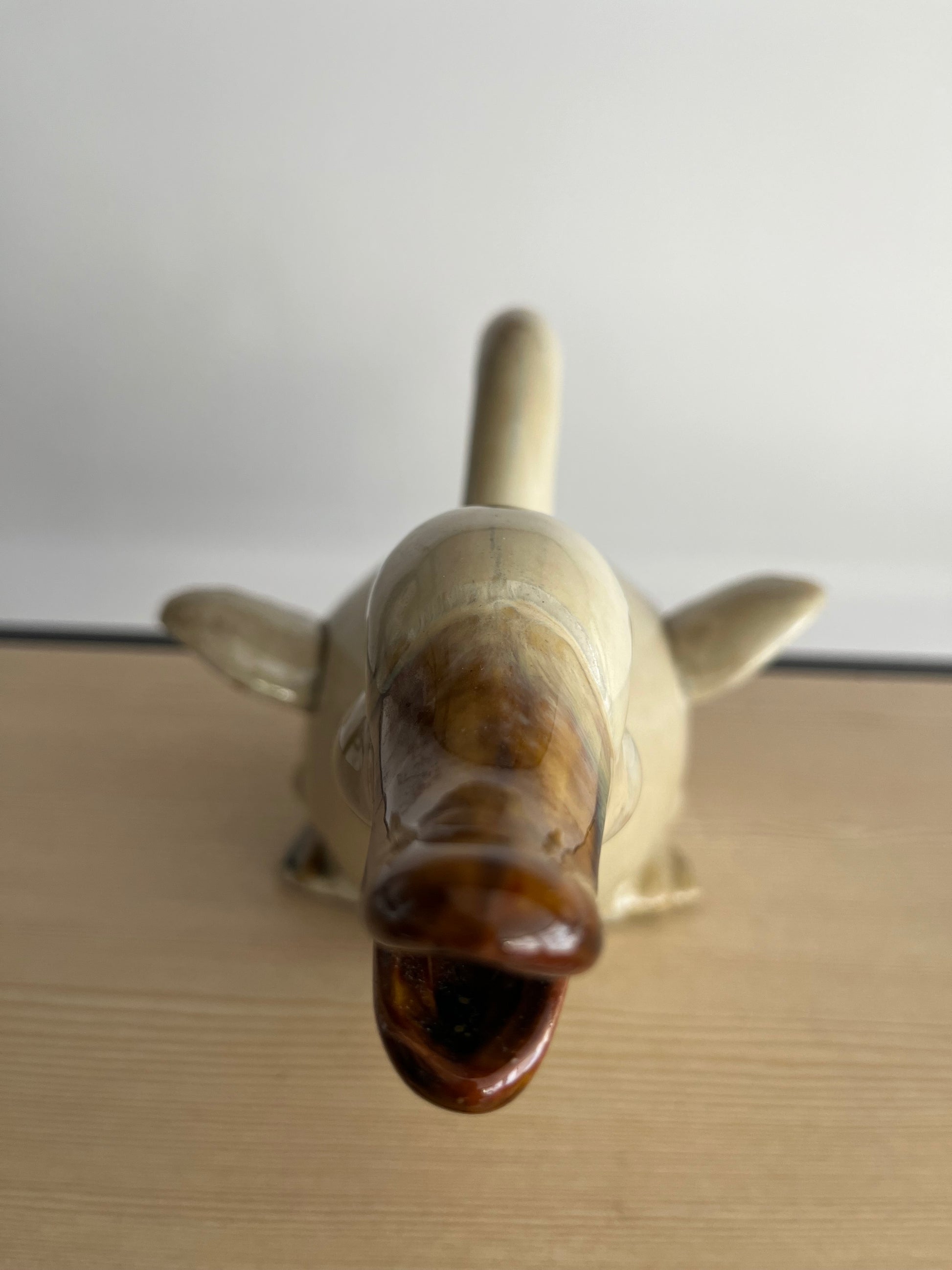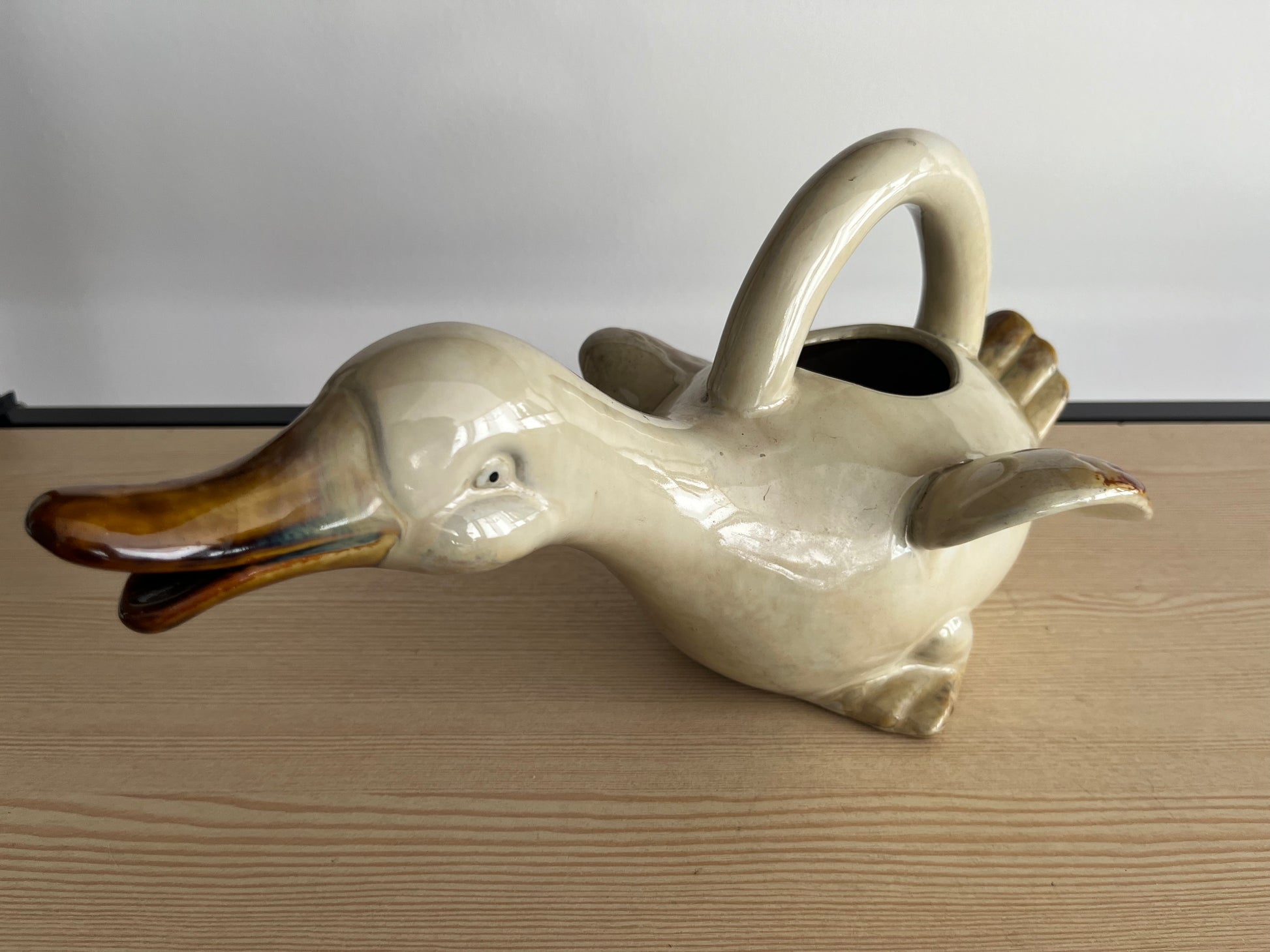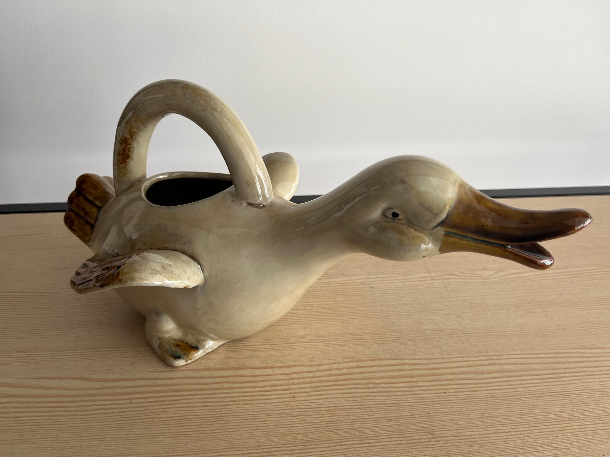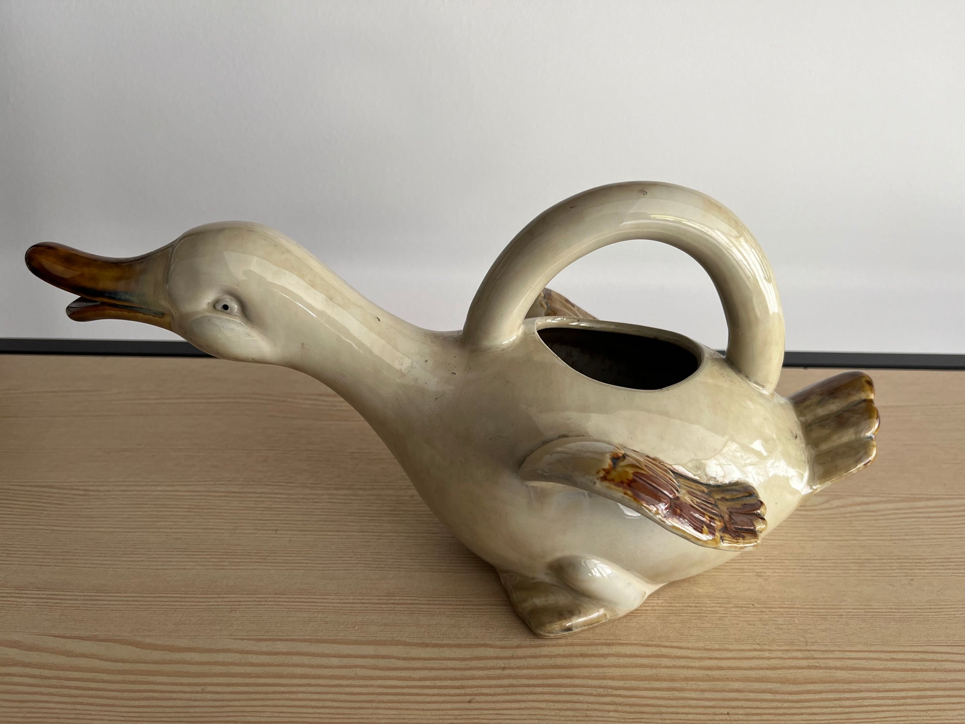 Ce pichet en forme d'oie vintage est un ajout unique et élégant à toute collection de vaisselle. Avec sa grande taille, il peut contenir une grande quantité de boisson pour les grandes occasions. Fabriqué avec expertise, ce pichet est un véritable trésor pour les connaisseurs de vaisselle vintage.