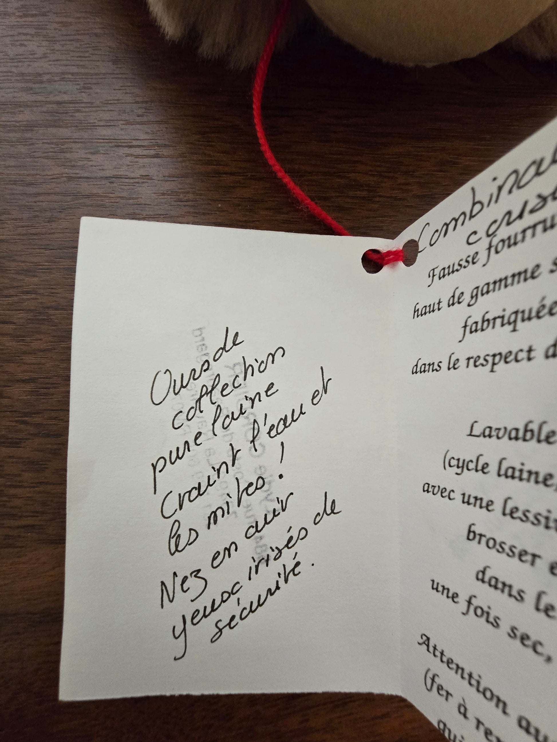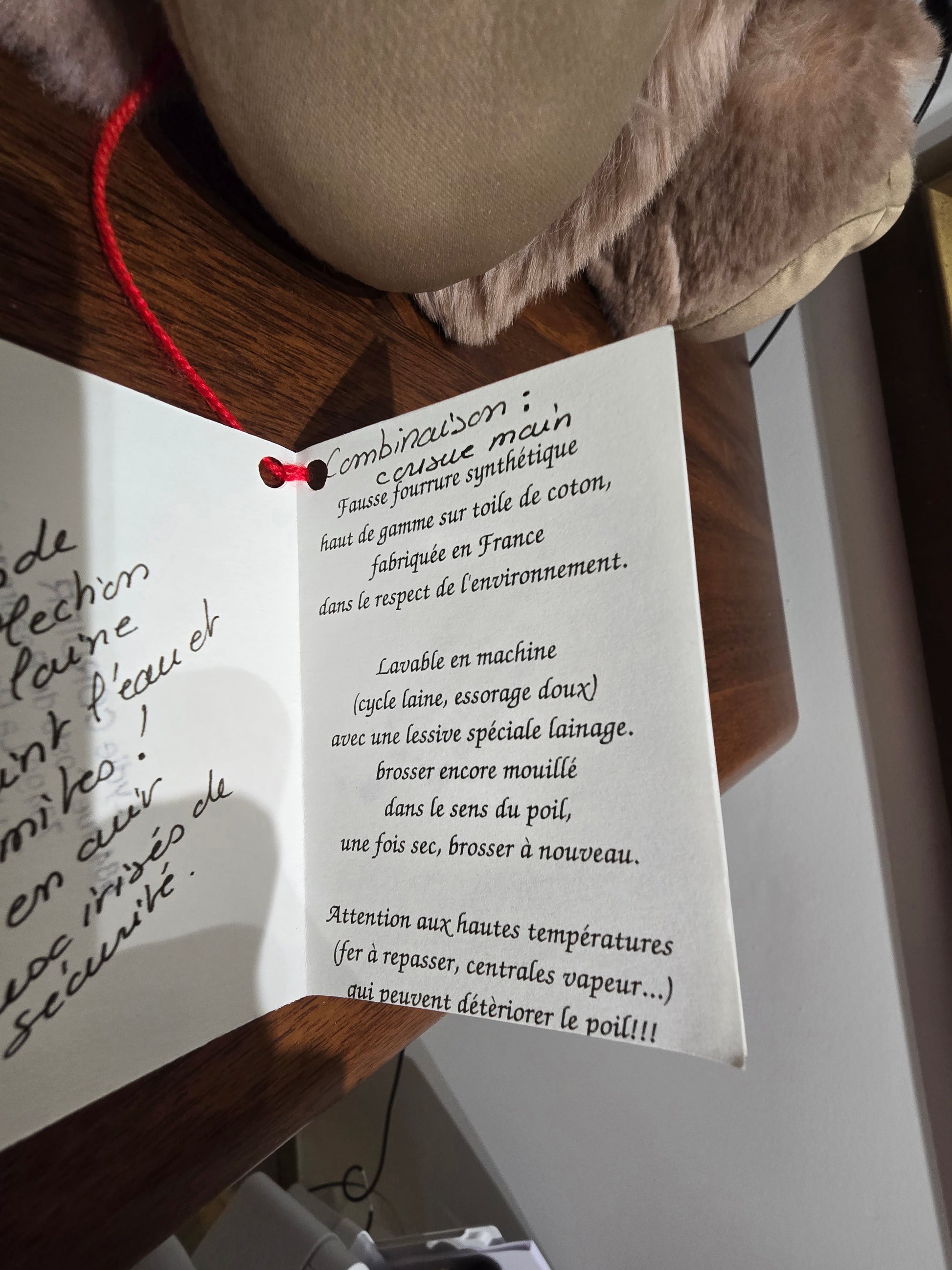 “Confectionnée à la main avec un savoir-faire exceptionnel, cette peluche artisanale est une œuvre unique signée C.Lydie, créatrice de Chambéry aujourd’hui à la retraite.