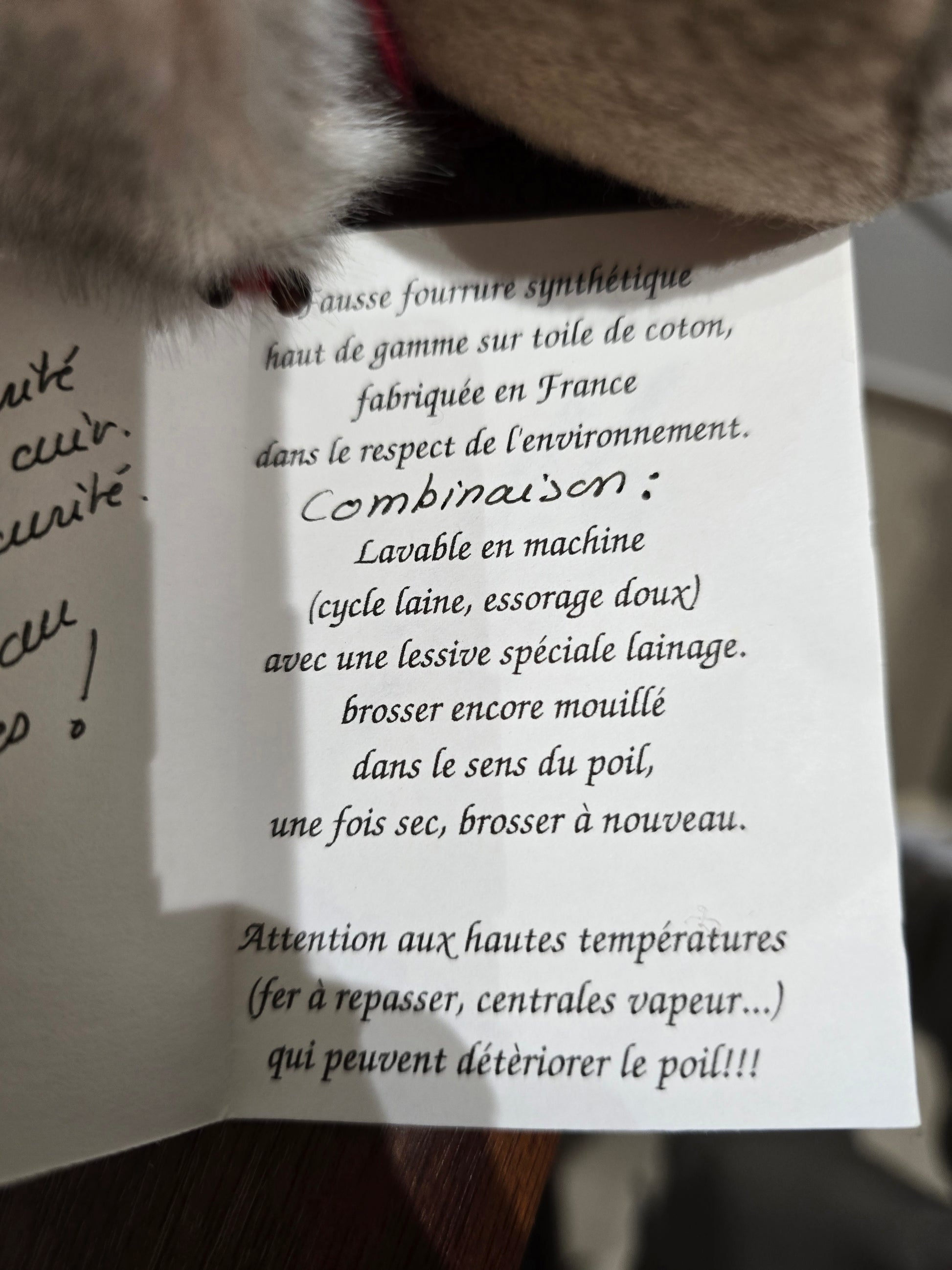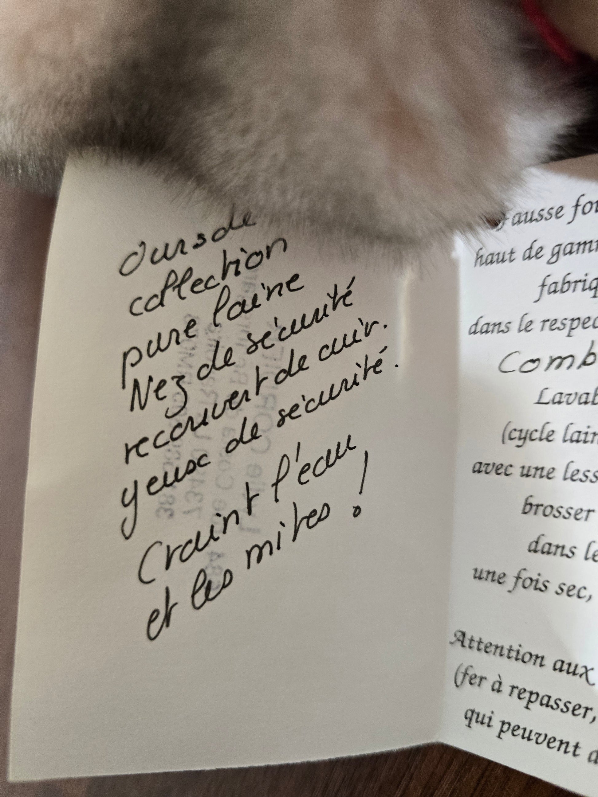 “Confectionnée à la main avec un savoir-faire exceptionnel, cette peluche artisanale est une œuvre unique signée C.Lydie, créatrice de Chambéry aujourd’hui à la retraite.