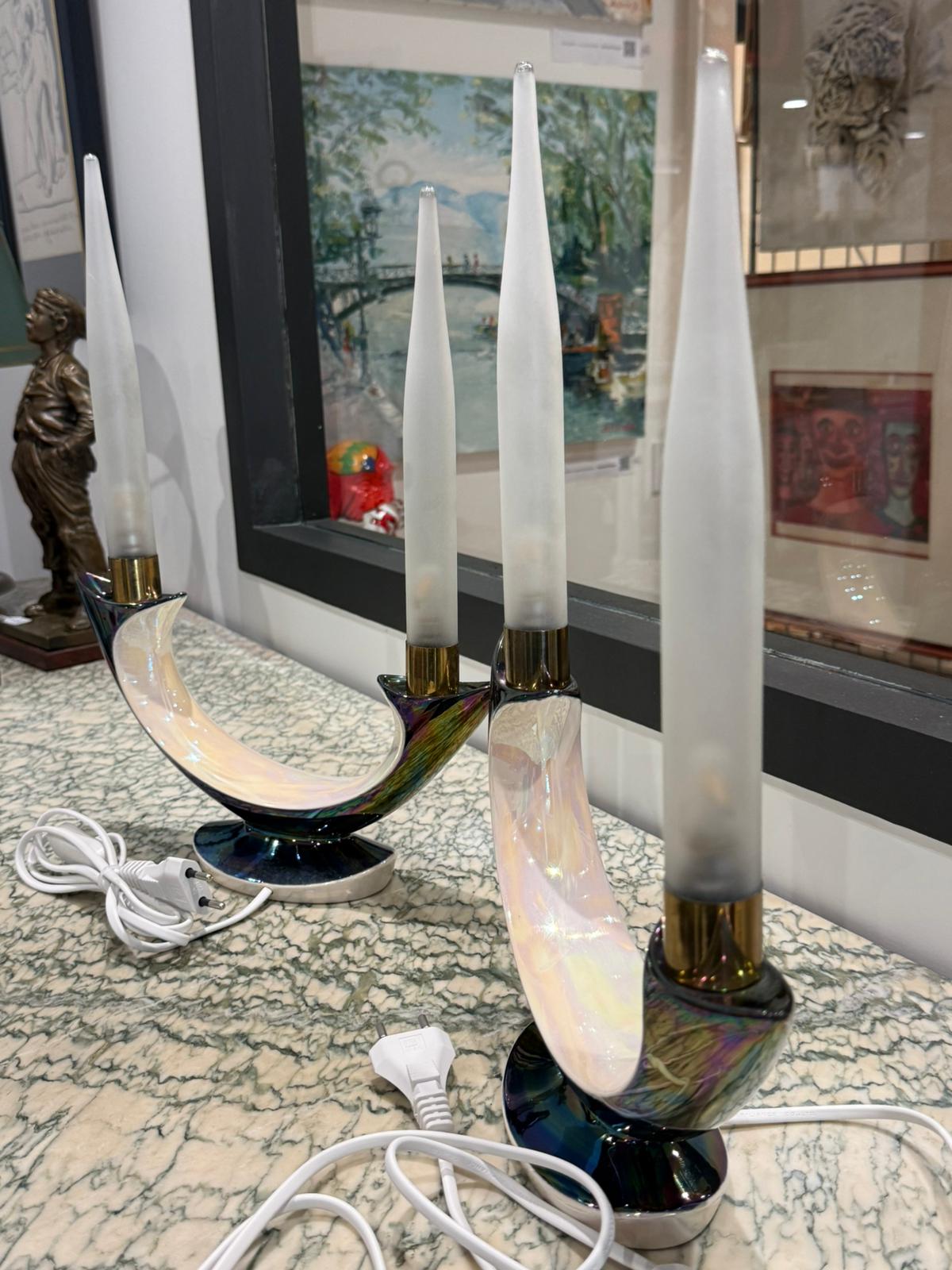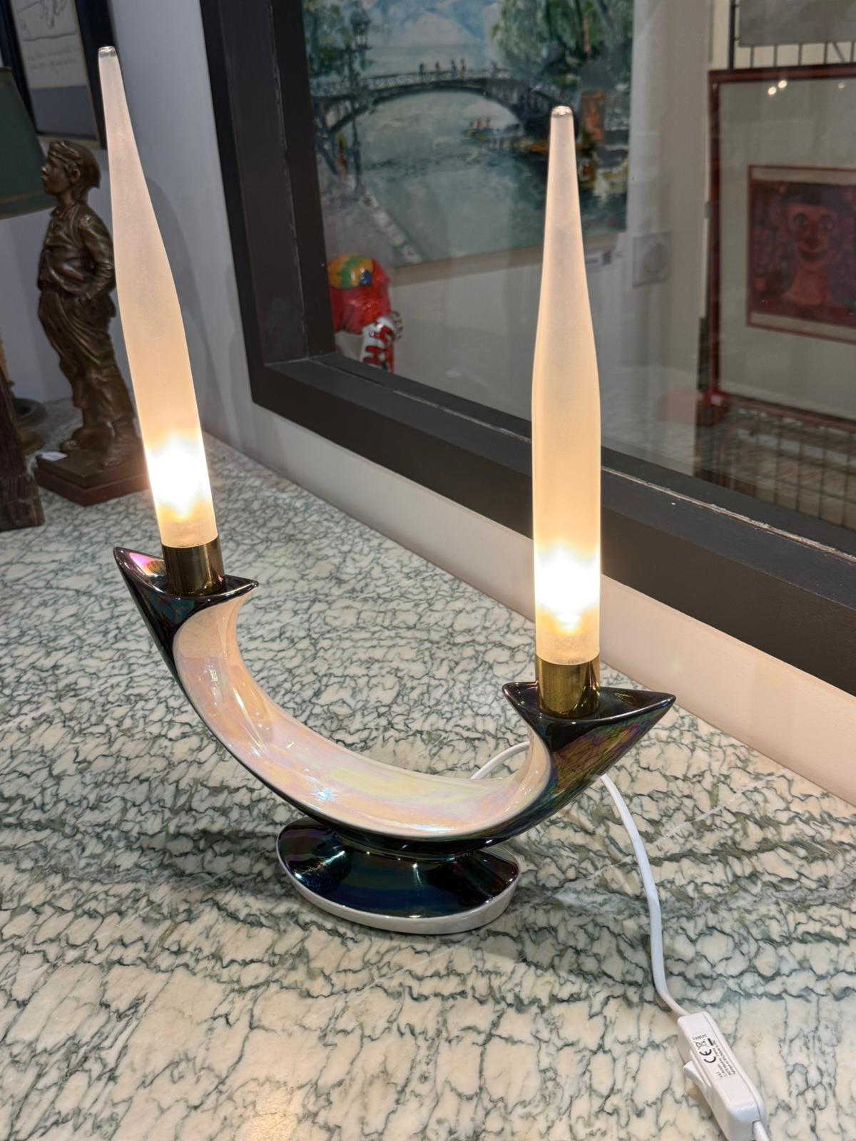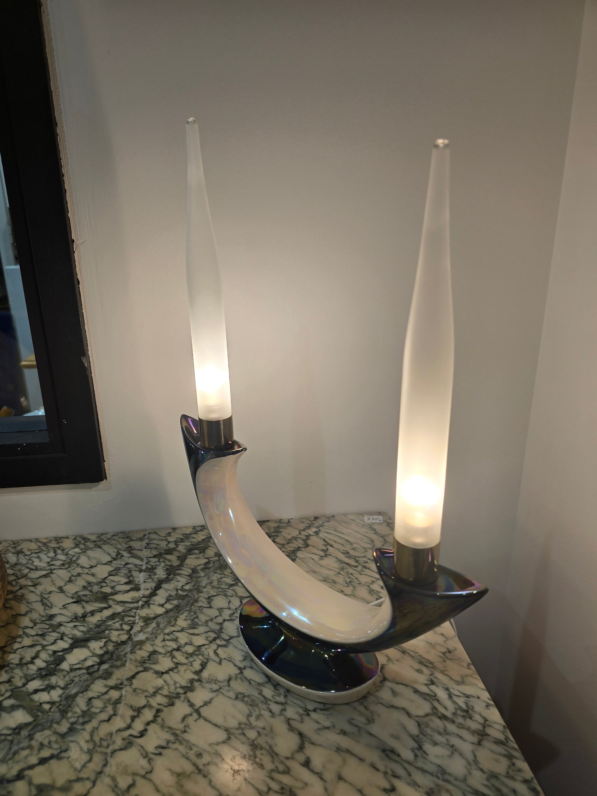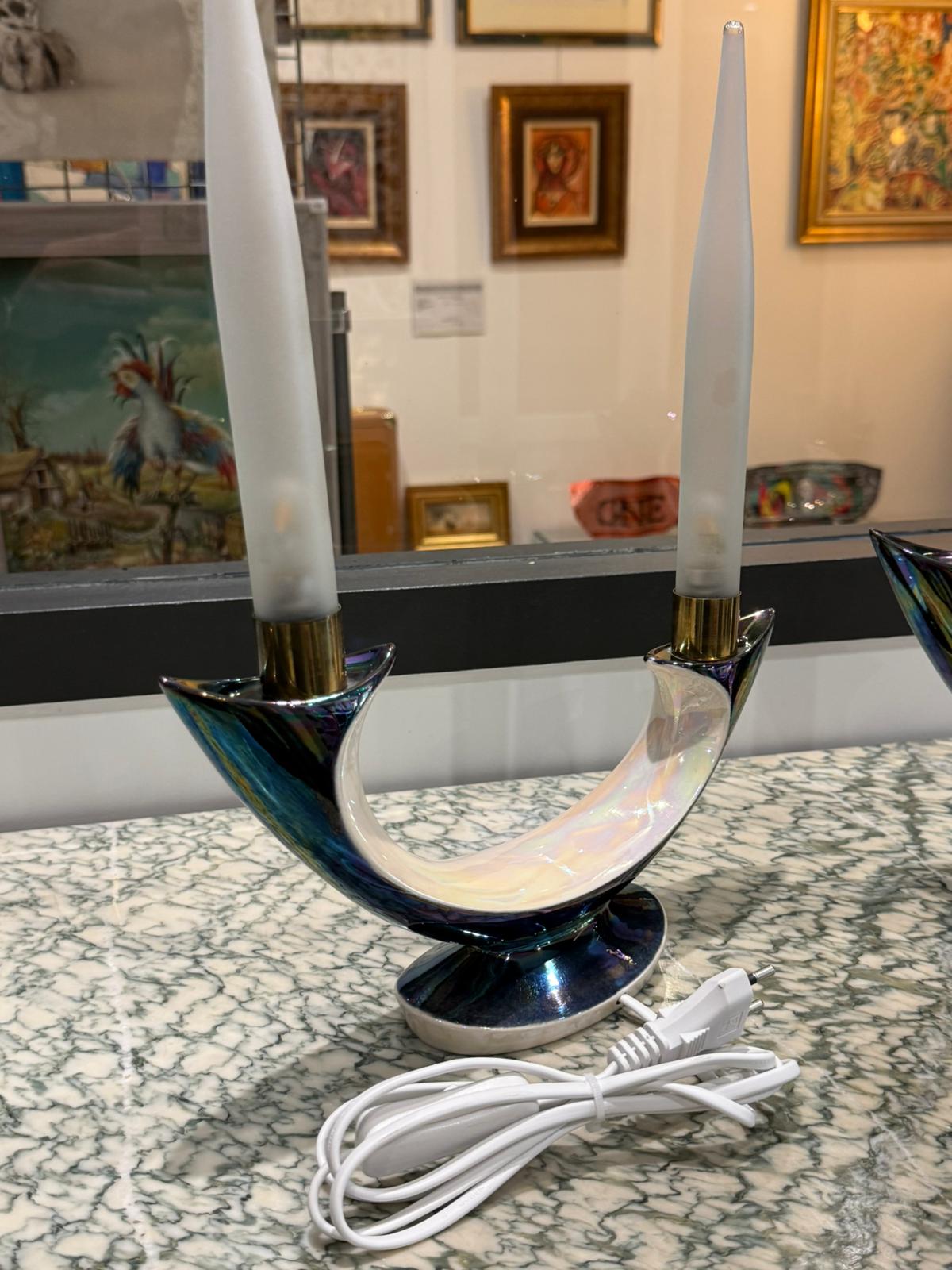 Paire de bougeoirs électriques Verceram – Design Space Age- céramique irisé
