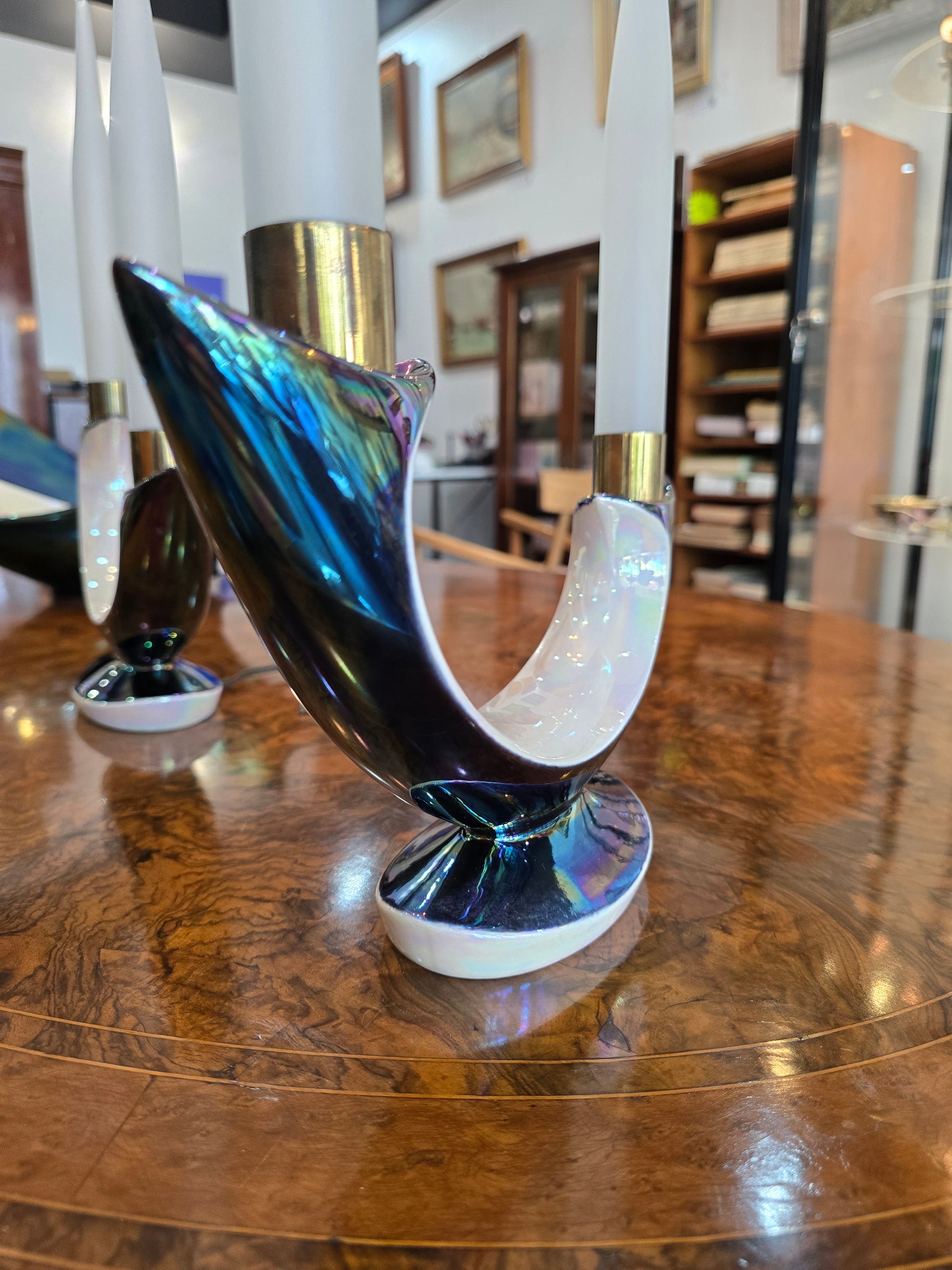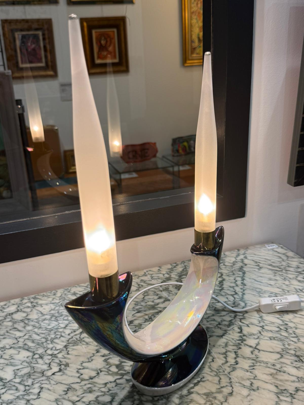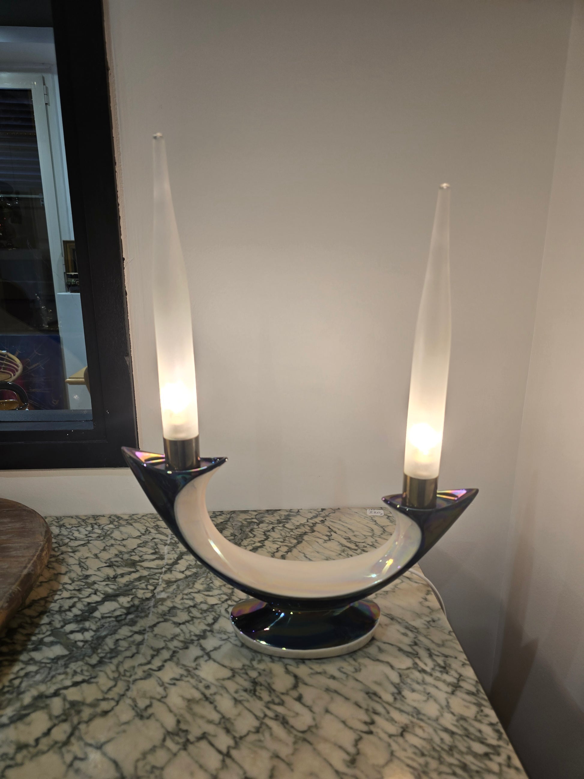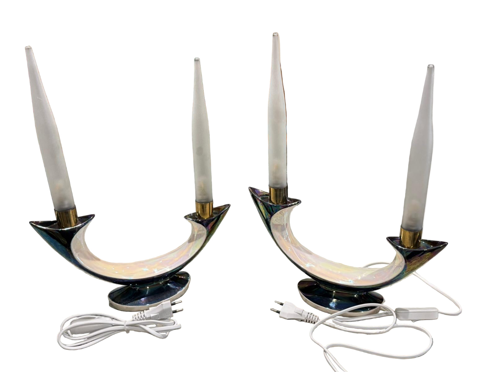 Paire de bougeoirs électriques Verceram – Design Space Age- céramique irisé