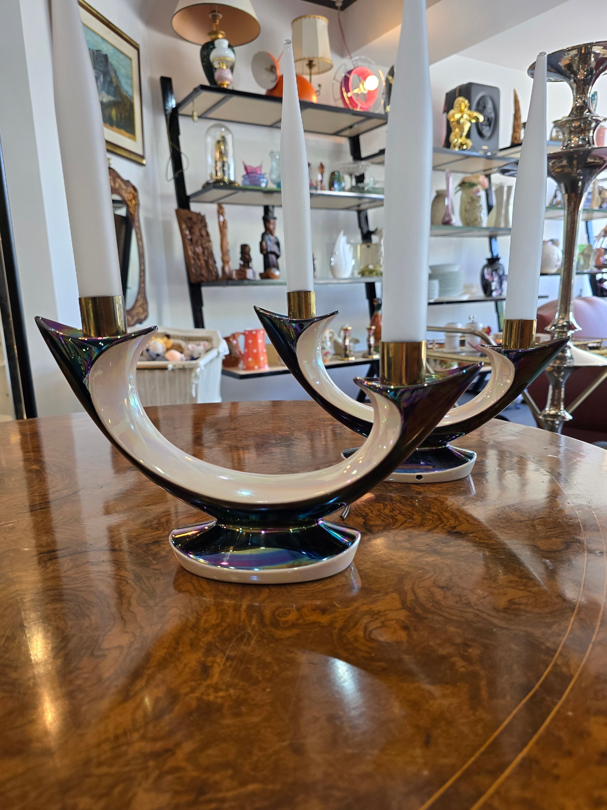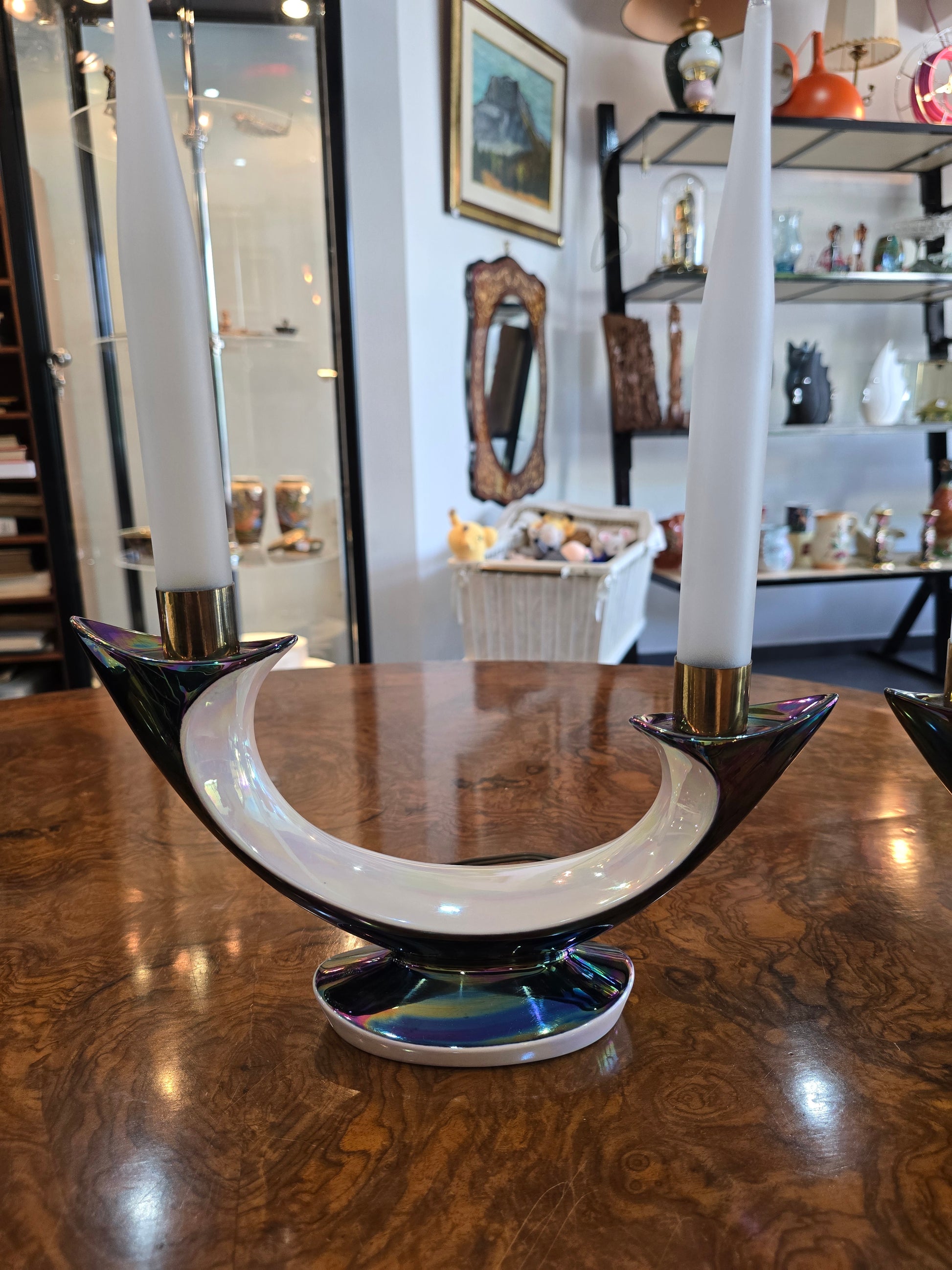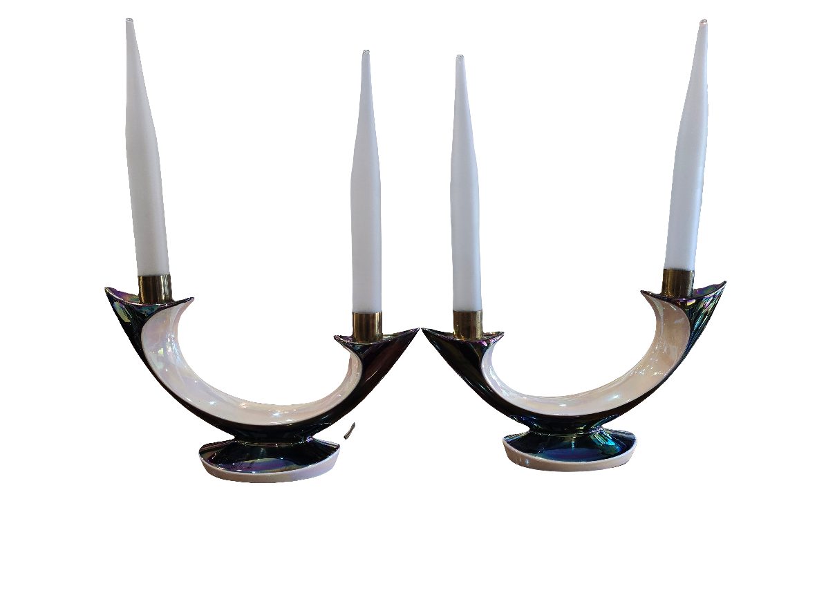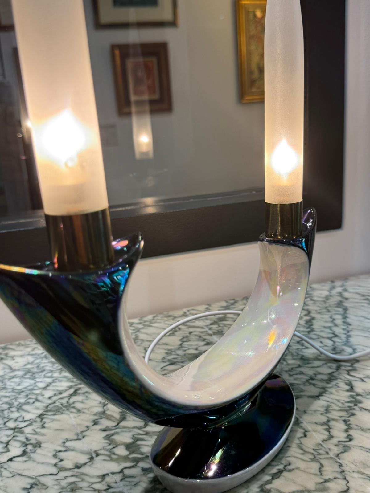 Paire de bougeoirs électriques Verceram – Design Space Age- céramique irisé