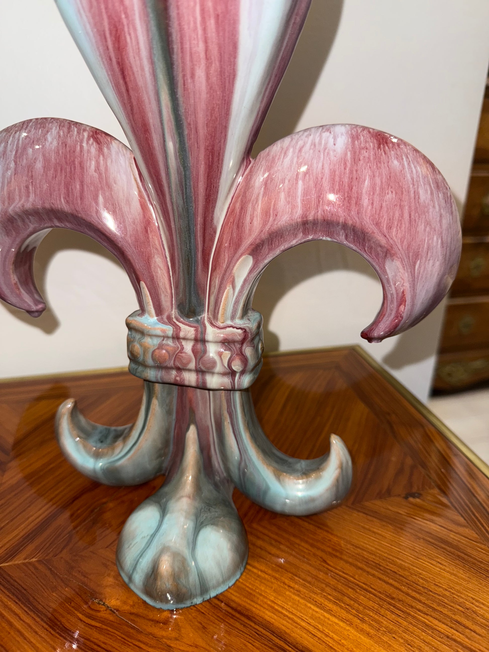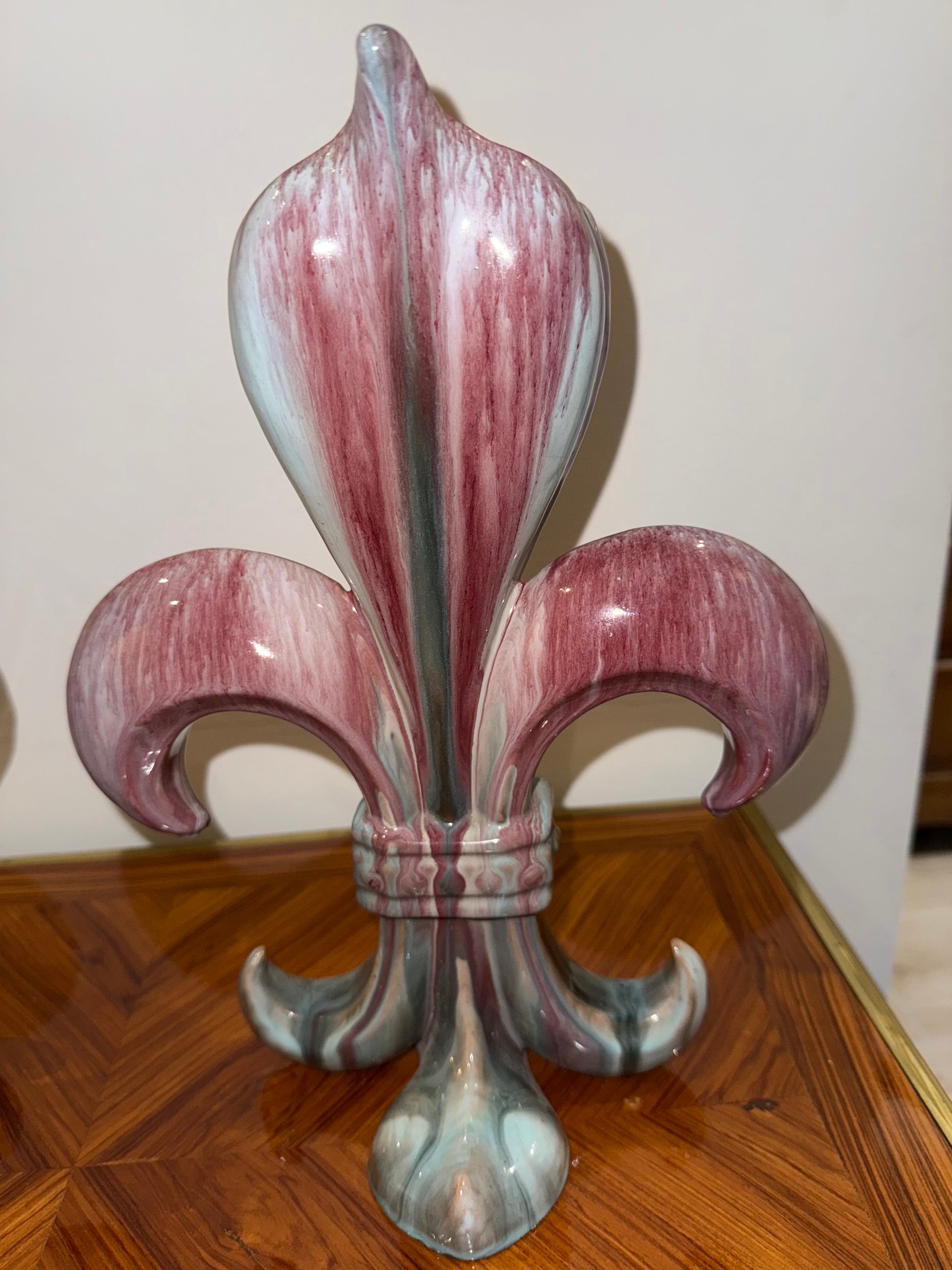 Vallauris, céramique fleur de lys, sculpture céramique vintage, décoration années 60, Maison Vallauris, céramique émaillée flammée, décoration royale, art de la table en céramique, objet décoratif français