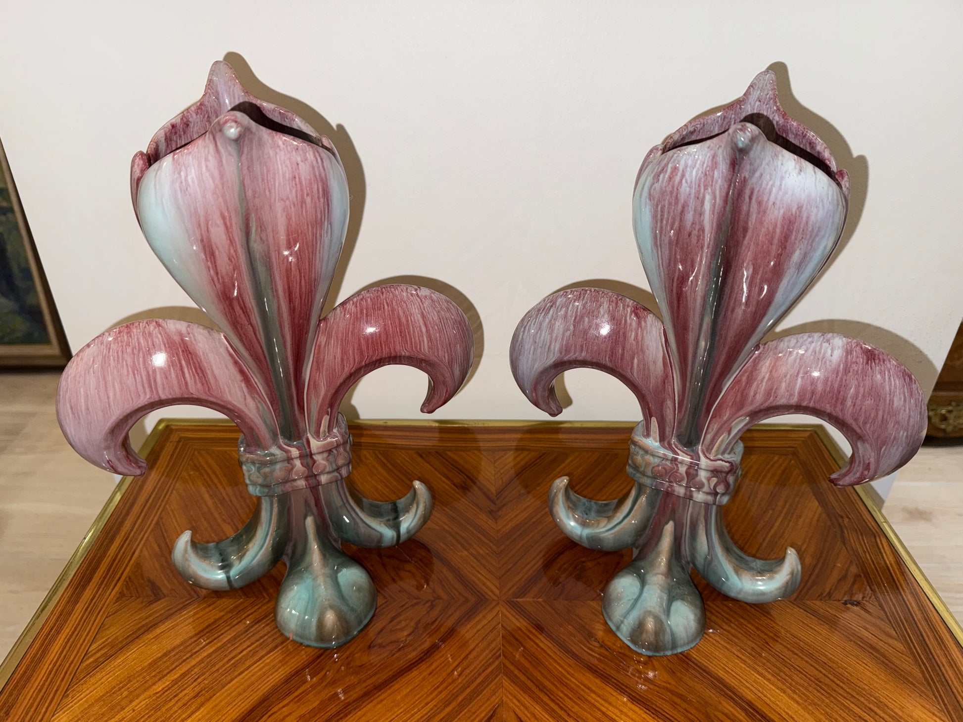 Paire de vase en céramique émaillée – Fleurs de Lys