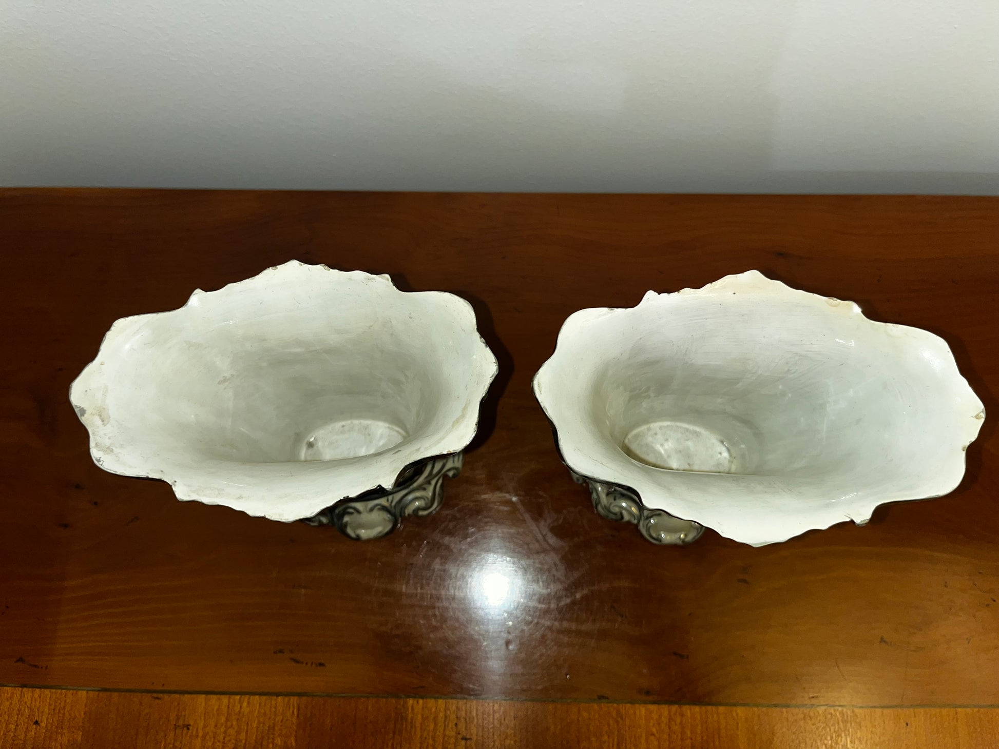 Les vases sont en excellent état, sans éclats ni fissures, avec seulement quelques traces d’usure liées à l’âge sur les accents en platine.