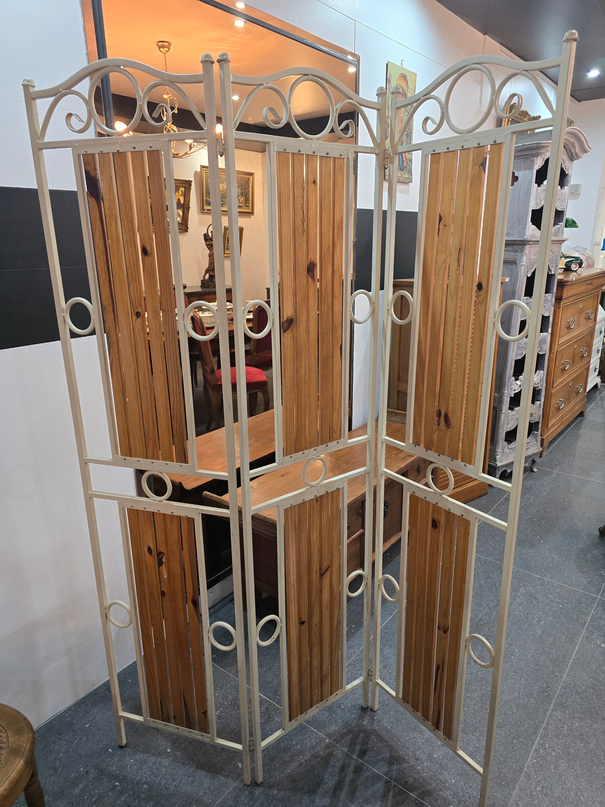 Ce paravent dépliant en fer et bois offre une solution élégante et pratique pour diviser l'espace en toute discrétion. il est à la fois robuste et esthétique.