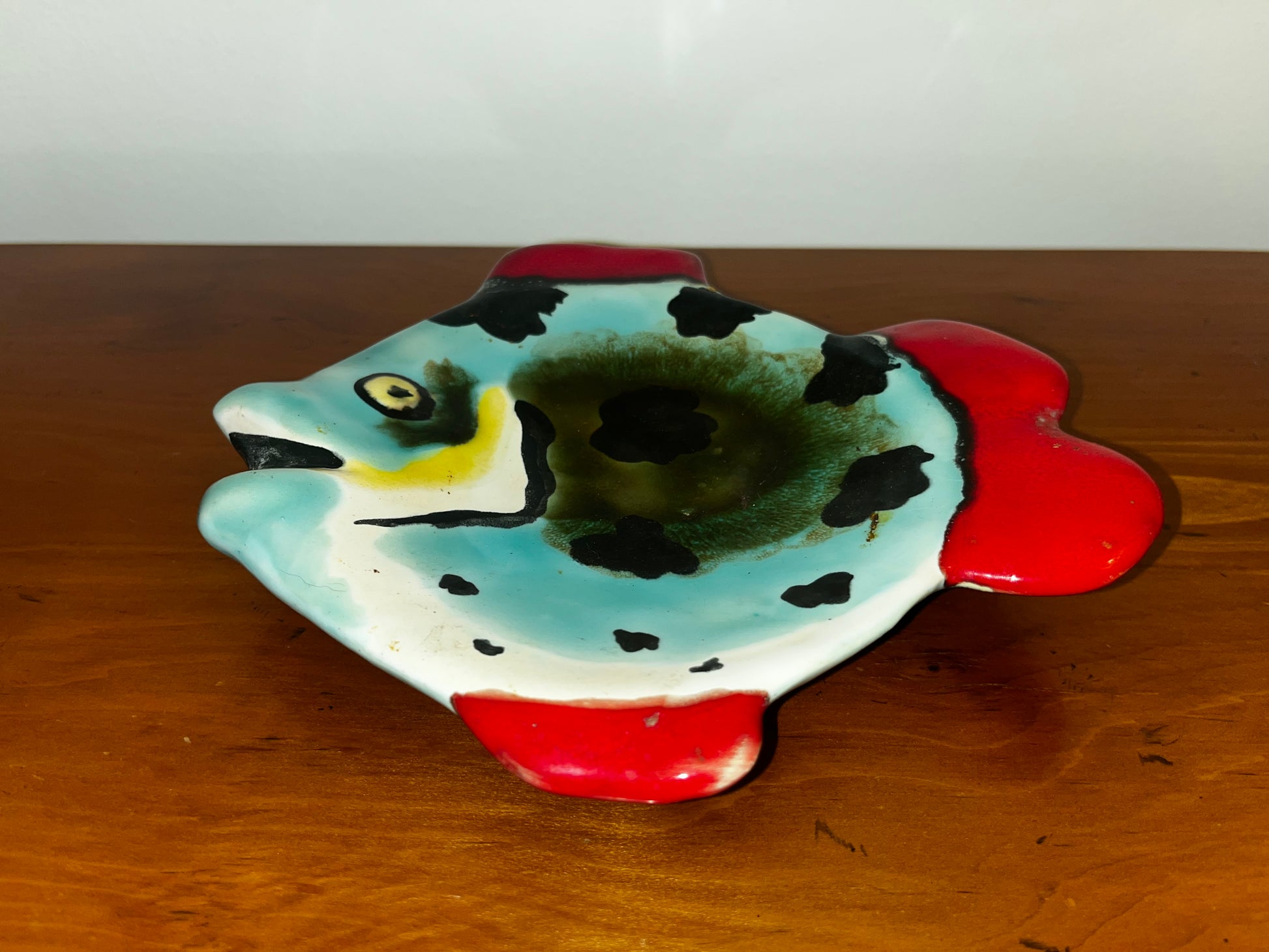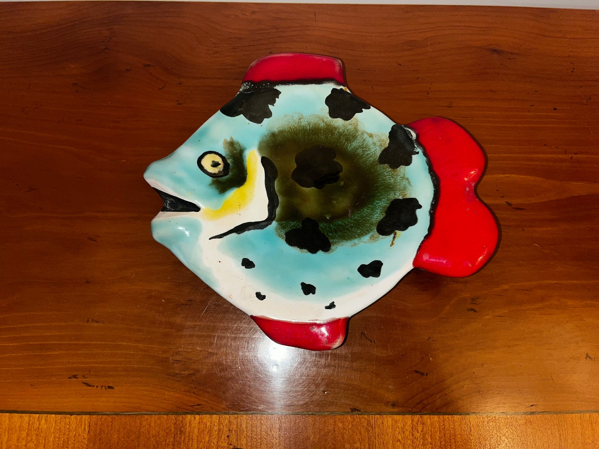 Ce petit plat en céramique, signé Sagam - Albertville, séduit par son design en forme de poisson et son charme artisanal.