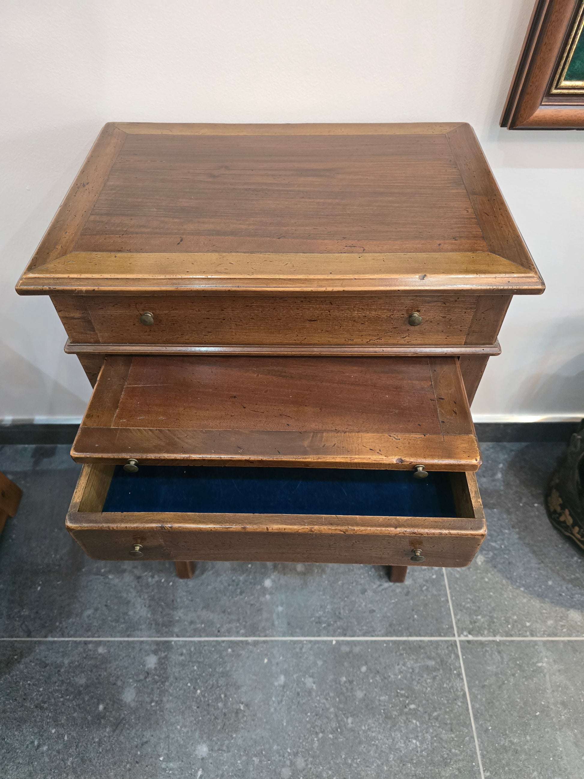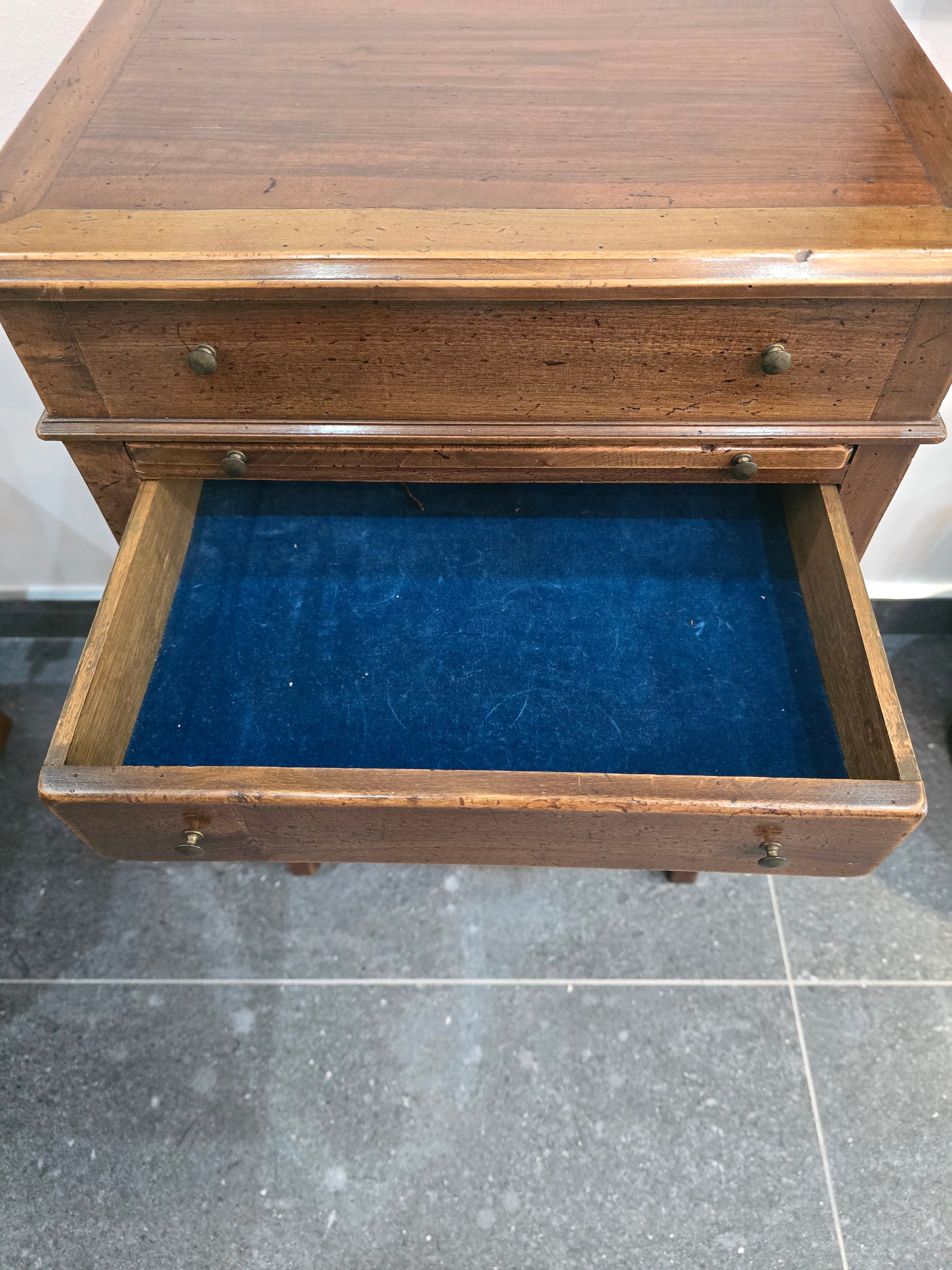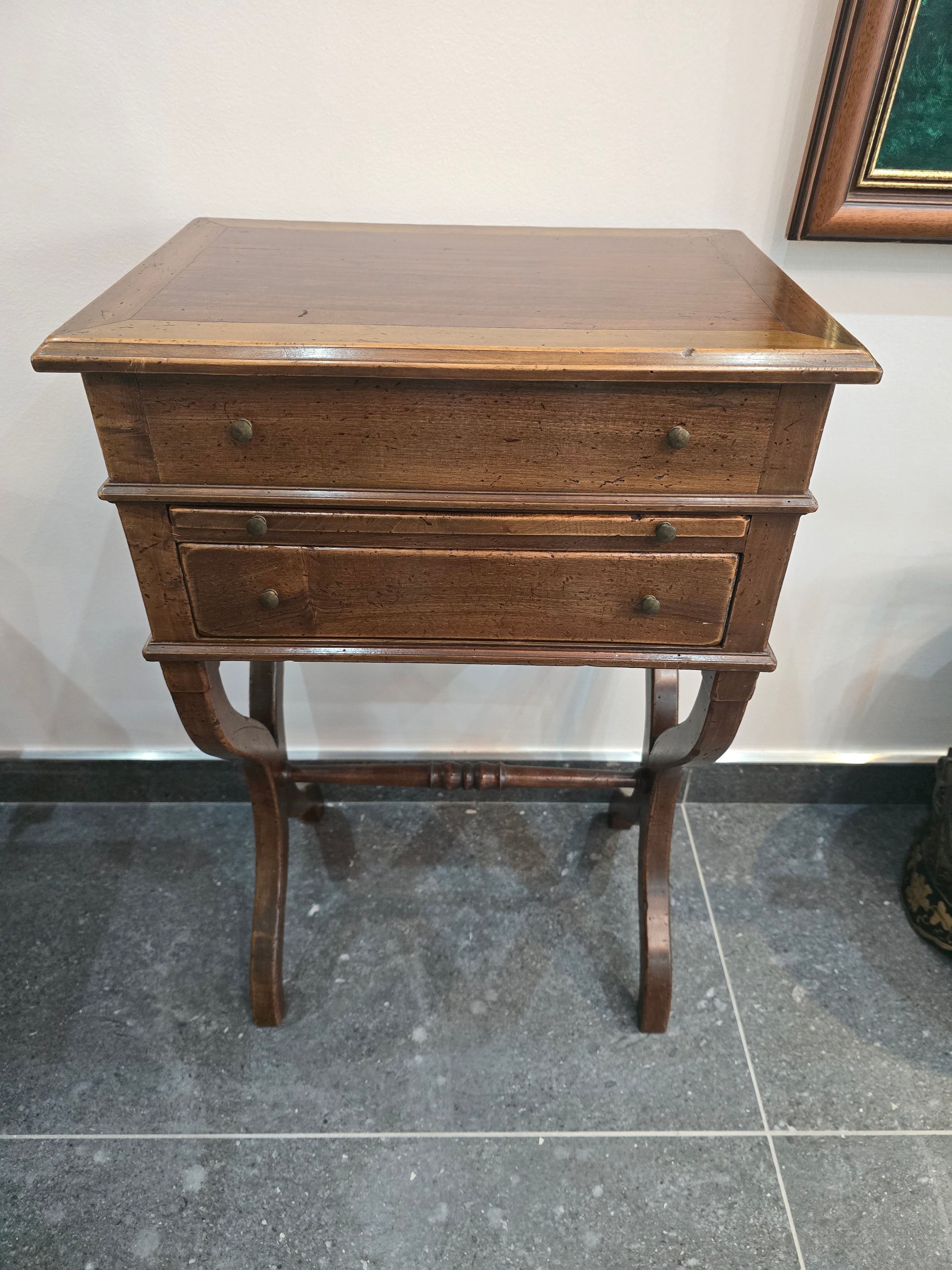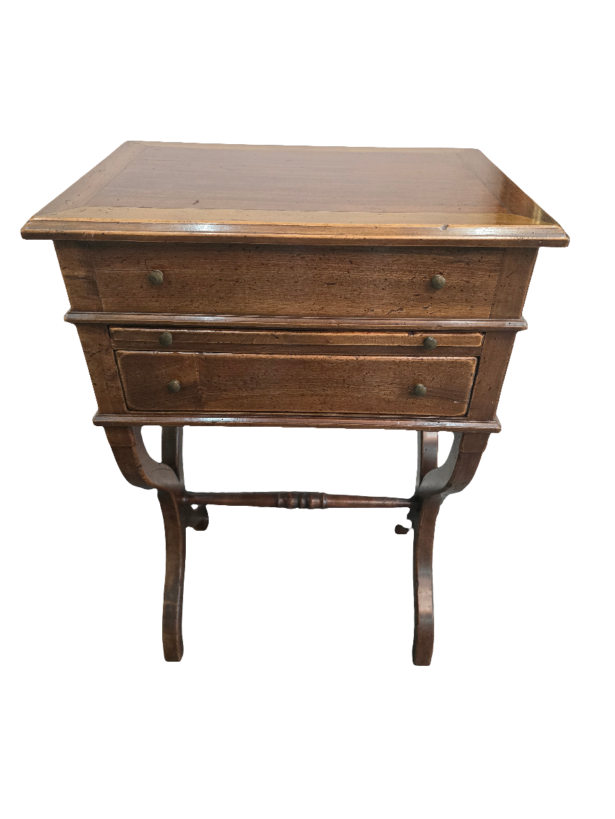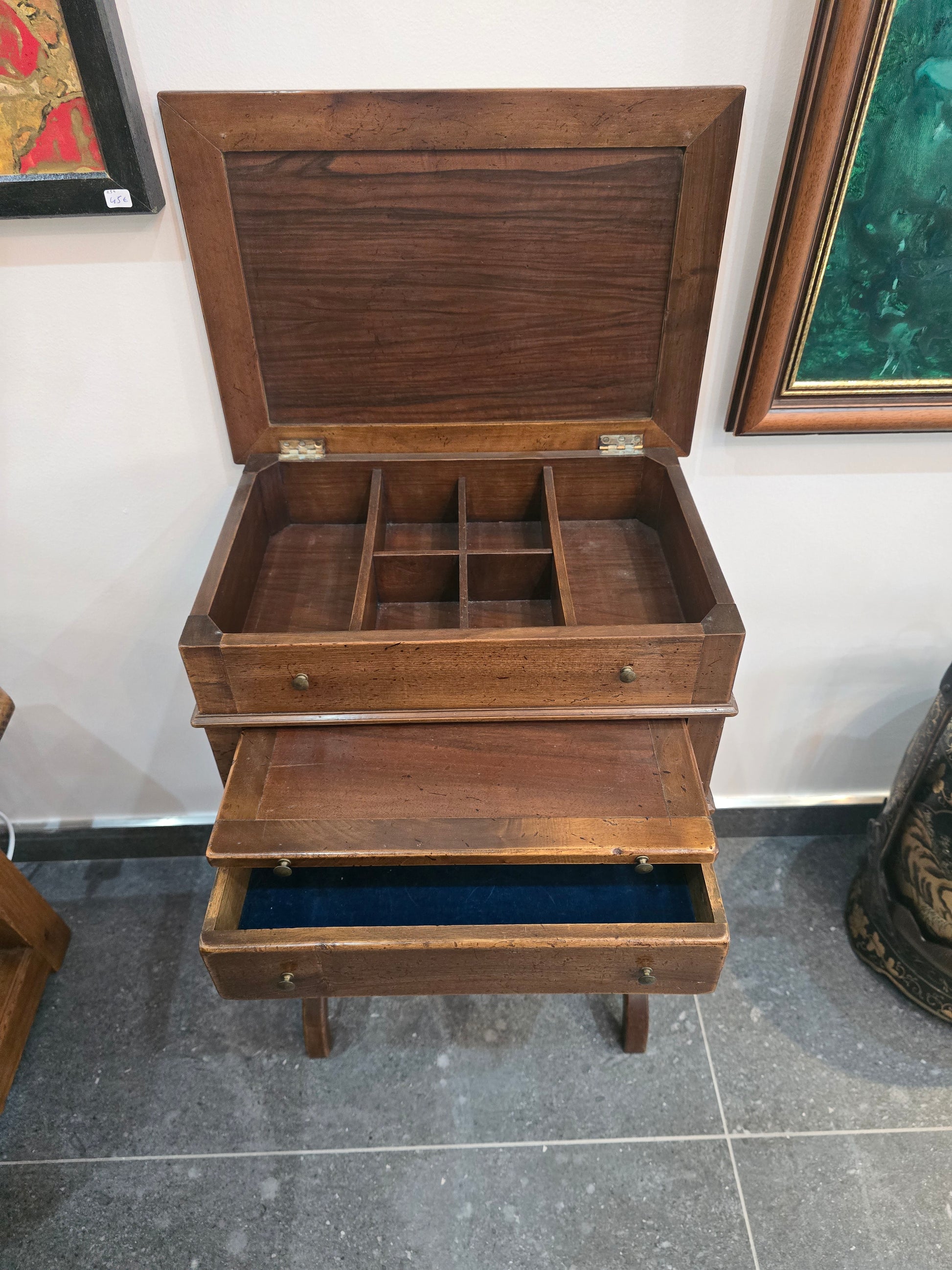 Cette petite travailleuse vintage offre 1 tiroir et un plateau qui se soulève pour un rangement optimal. Parfait pour organiser vos objets précieux, bijoux et autres petits accessoires. Un design pratique et élégant qui ajoutera une touche de charme à votre espace de travail.