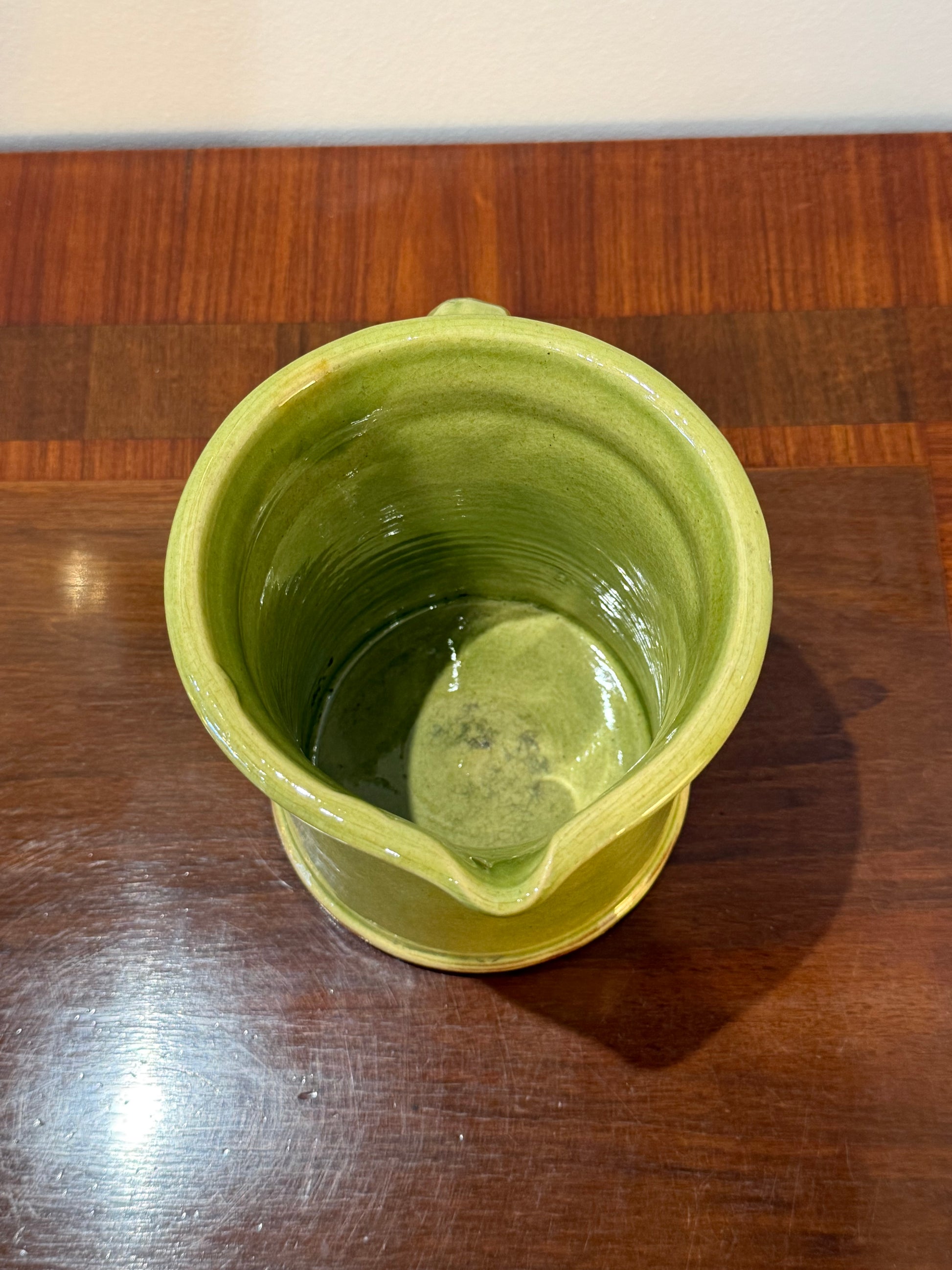 Apportez une touche de charme rustique à votre intérieur avec ce magnifique pichet en terre cuite. Son revêtement en émaillage vert brillant lui confère une élégance naturelle tout en assurant une parfaite imperméabilité. Sa base non émaillée, d’une teinte rouge-brun caractéristique de la terre cuite, met en valeur l’authenticité du matériau et le savoir-faire artisanal.