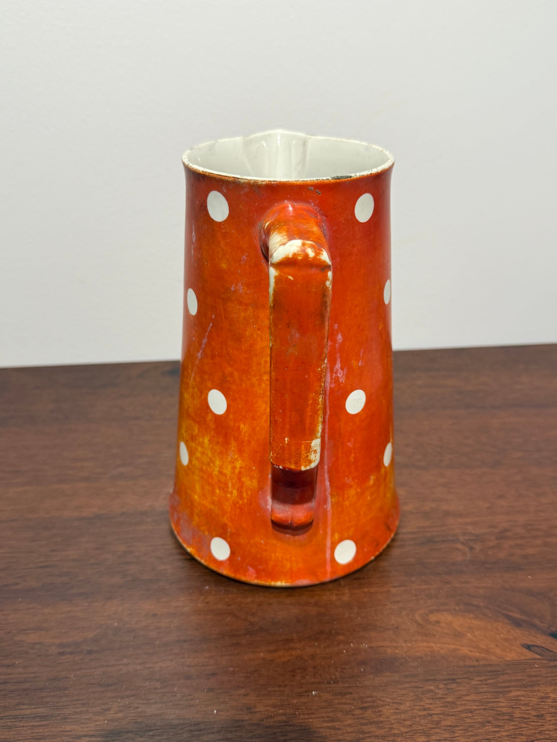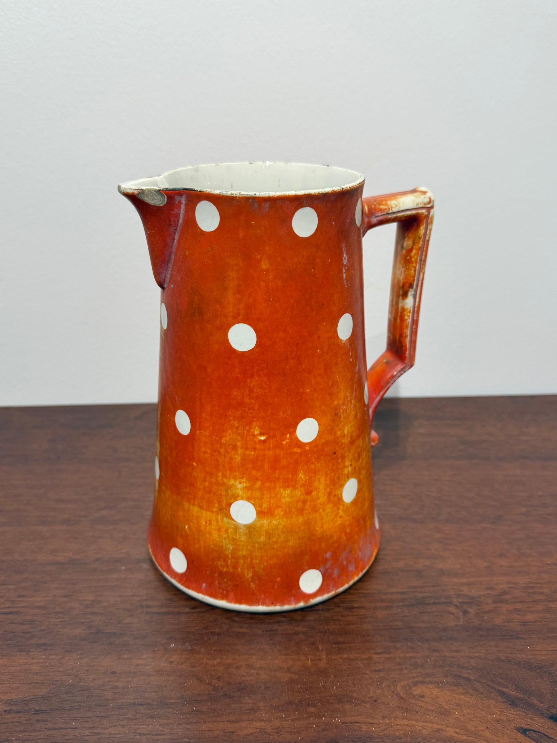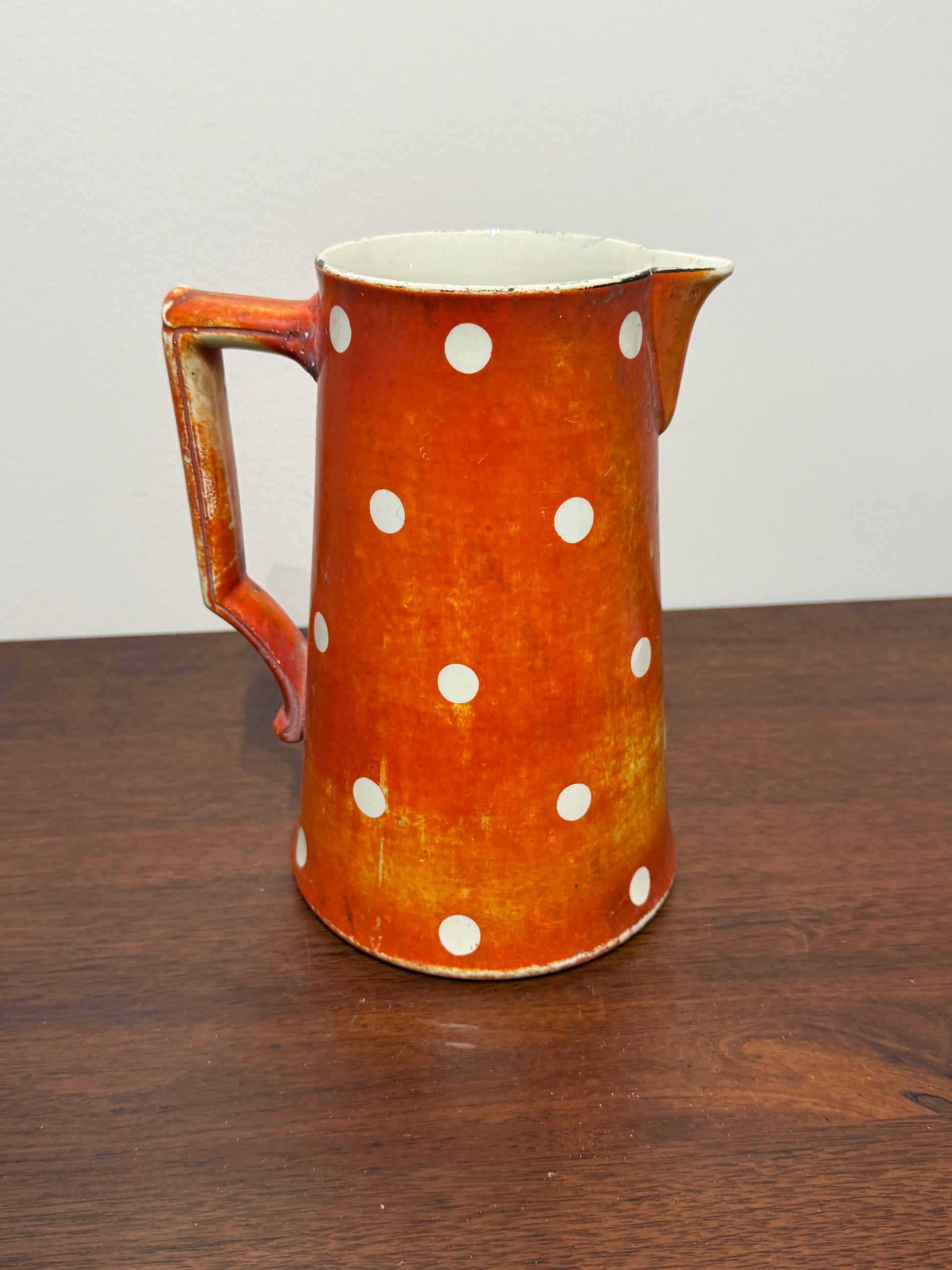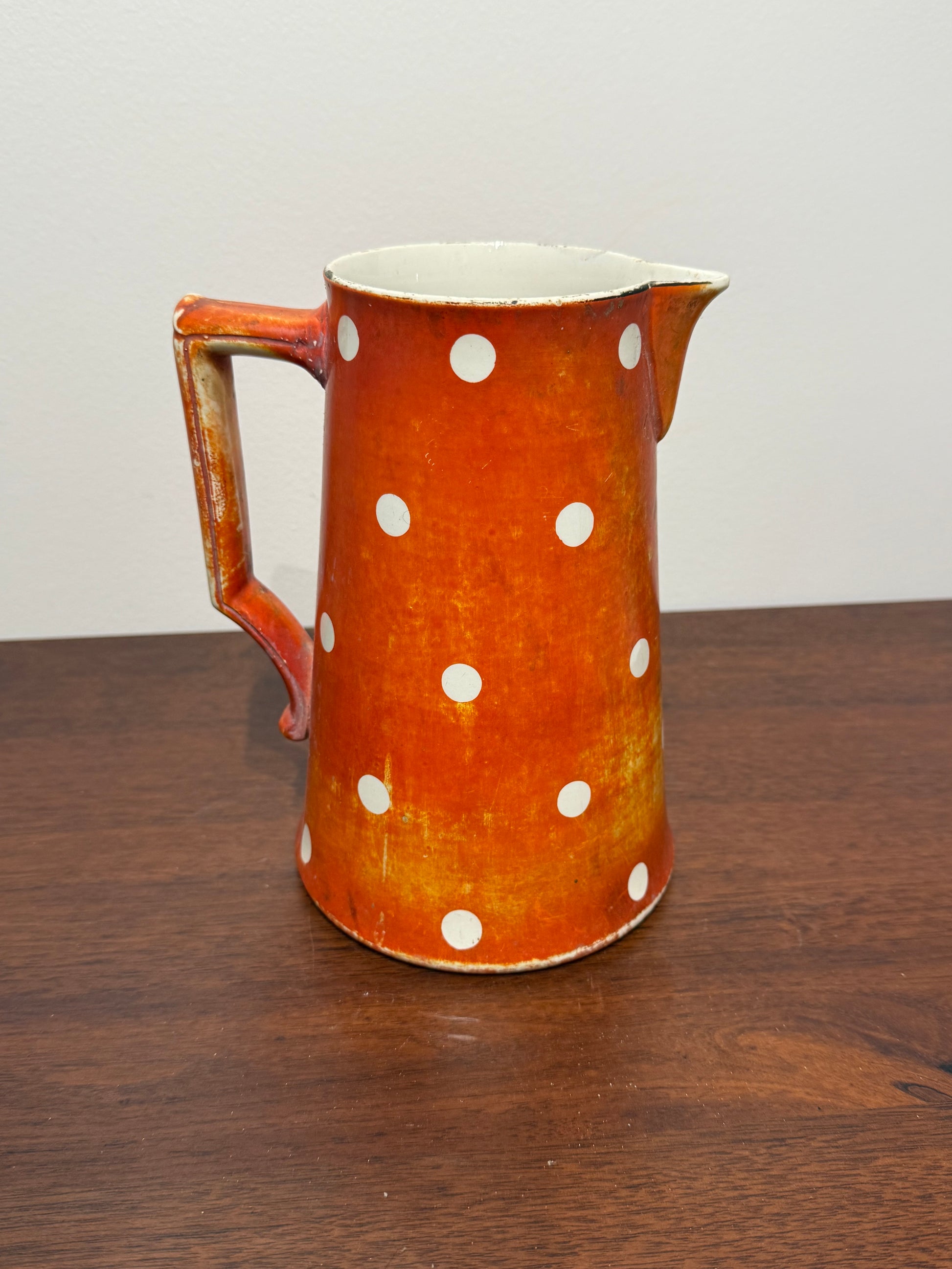 Ce pichet est un véritable témoignage de l’artisanat français du début du XXe siècle. Son motif à pois emblématique et sa couleur vive en font un objet de collection prisé, apportant une touche vintage à toute cuisine ou salle à manger.