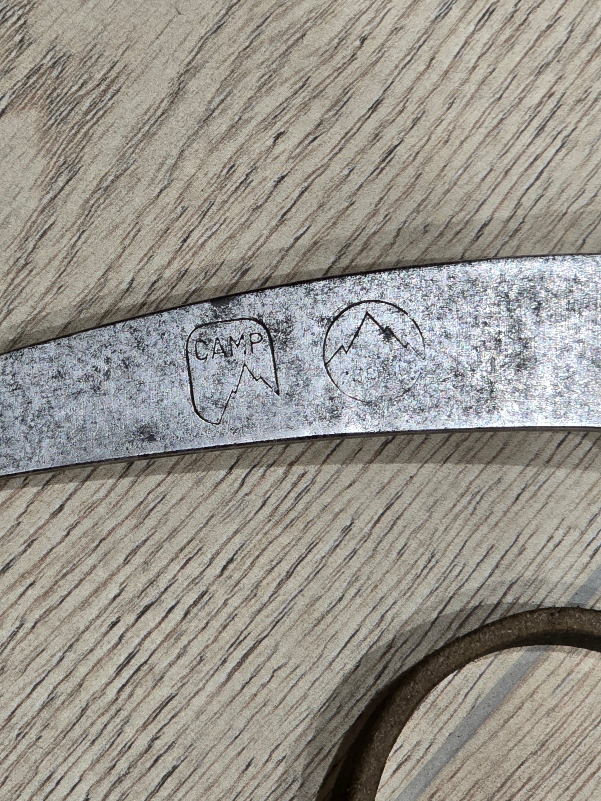 Superbe piolet ancien de montagne signé CAMP Premana, fabriqué en Italie dans les années 1950–1970.