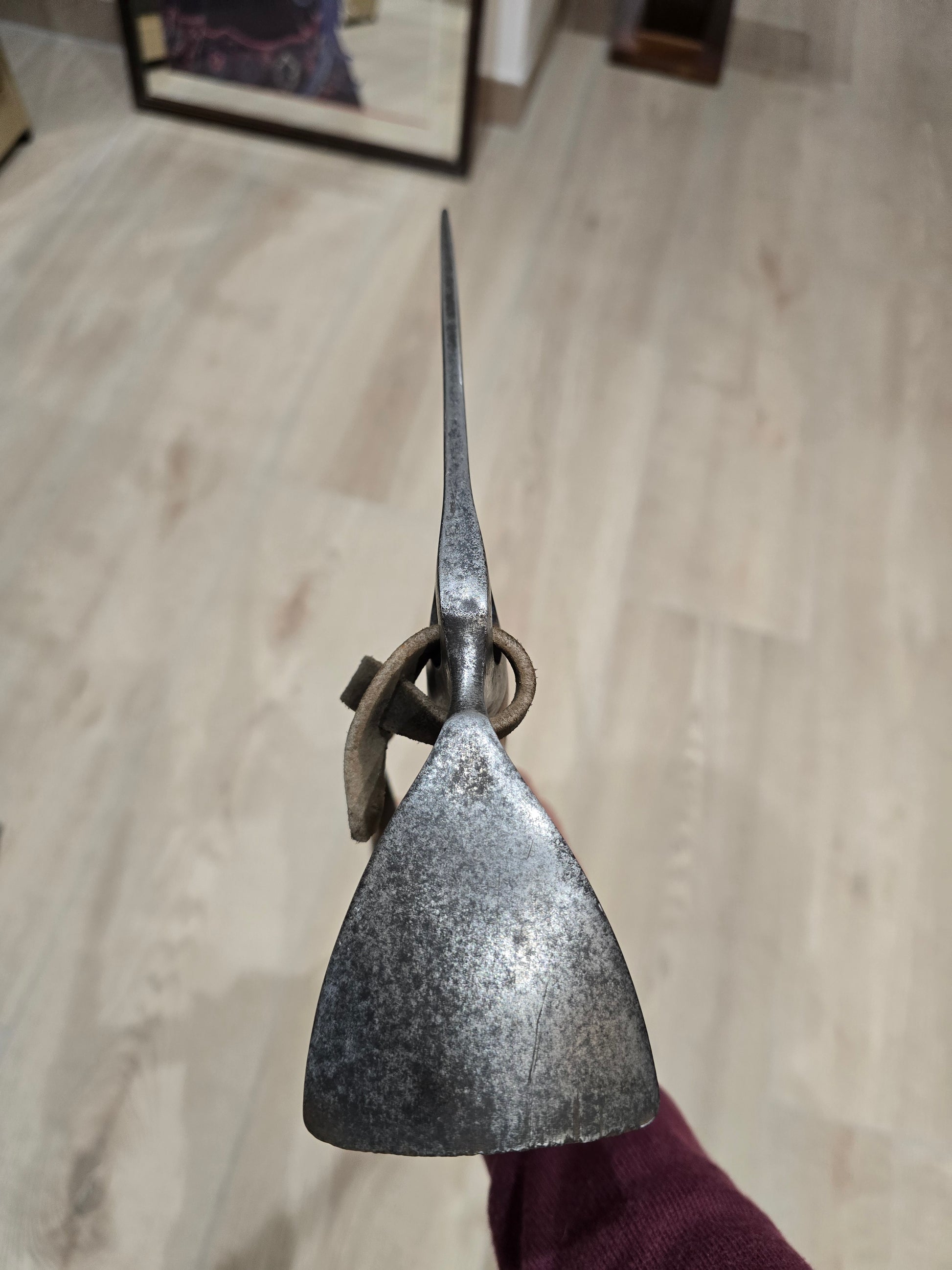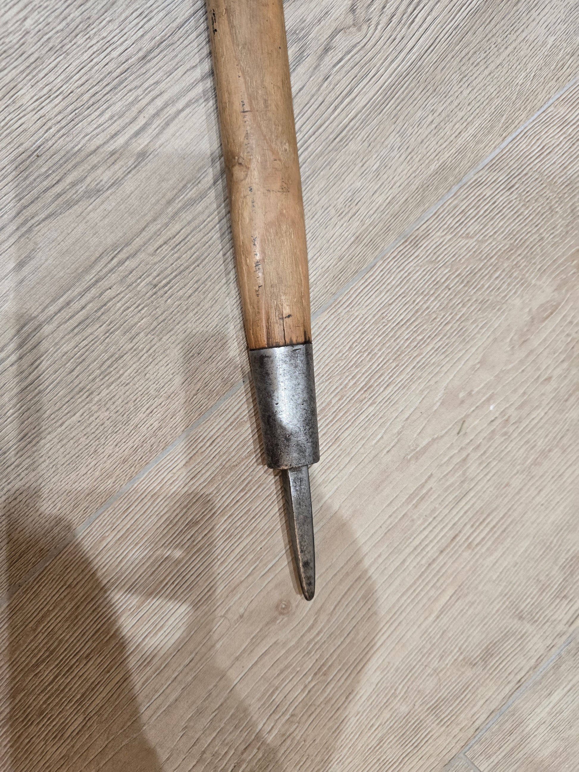 Particularités : Pièce authentique, tête mixte (pioche + panne dentée), extrémité ferrée, dragonne d’origine.
