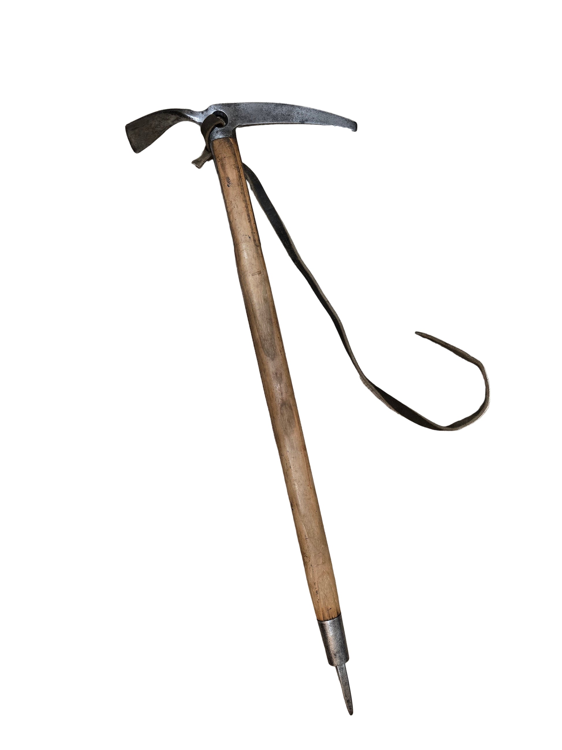 Réalisé en acier forgé et bois massif, il illustre le savoir-faire traditionnel des artisans de Premana, réputés pour la qualité de leurs outils d’alpinisme.