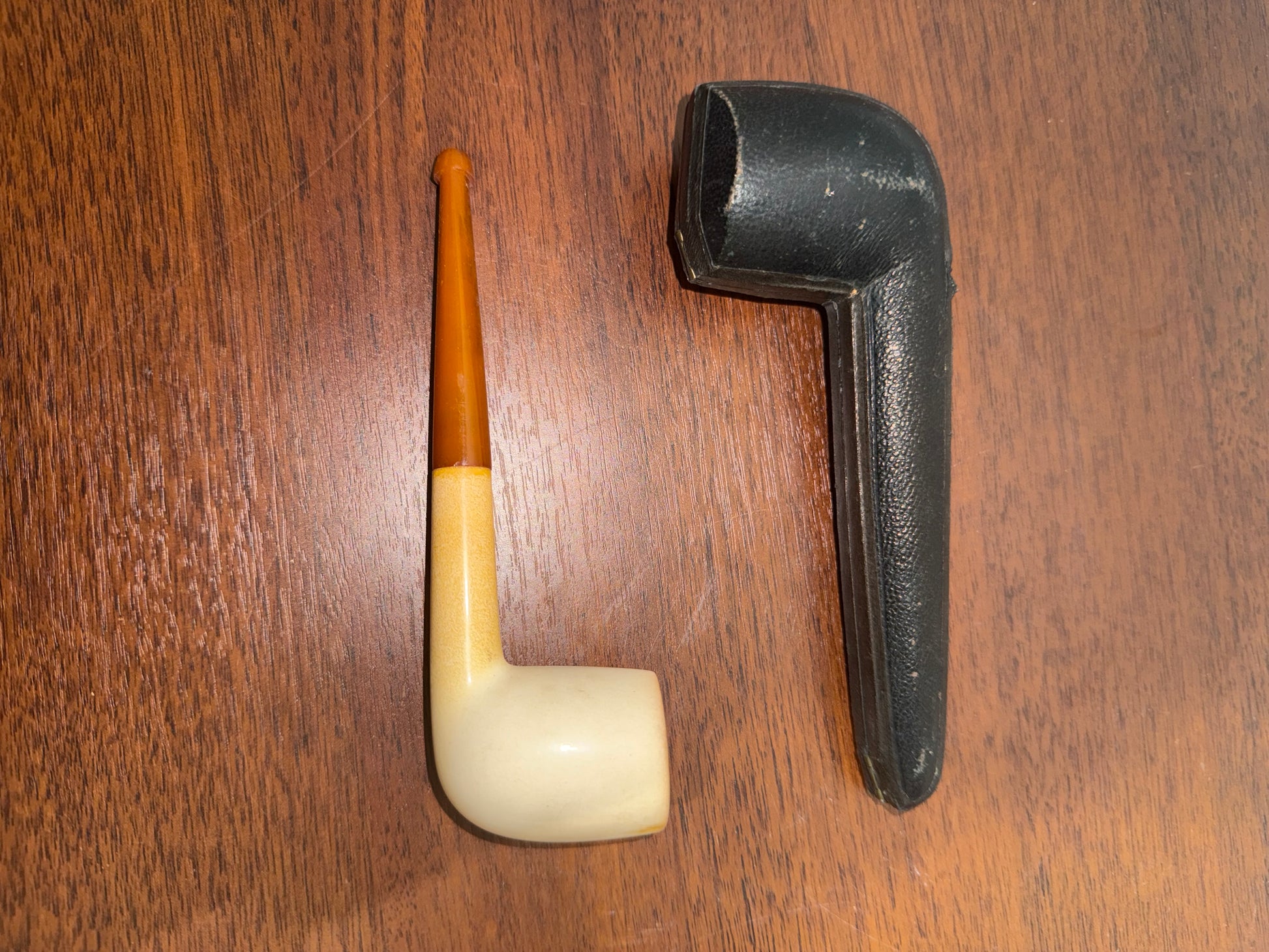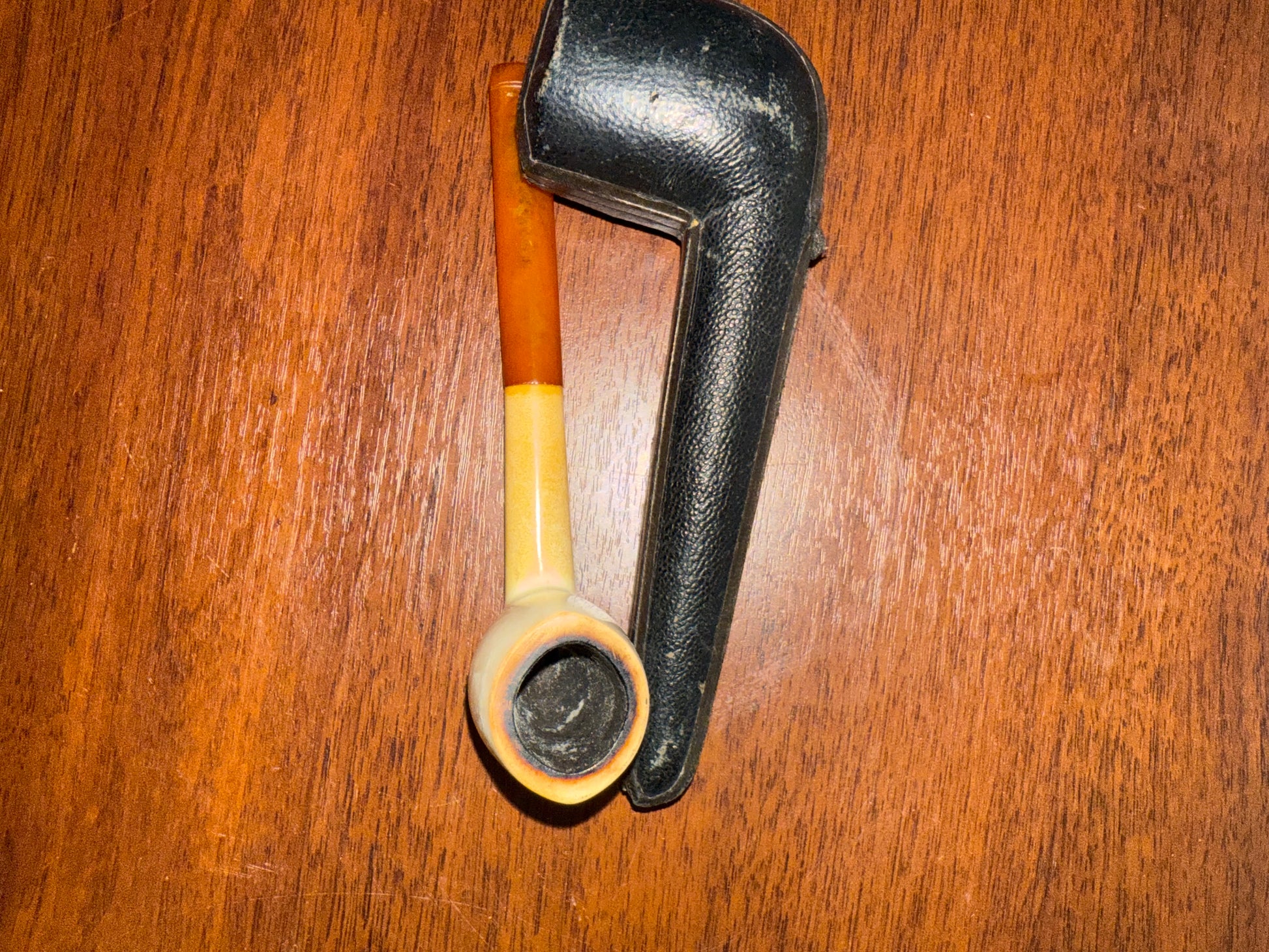 • Pipe ancienne en écume de mer avec son étui d’origine.